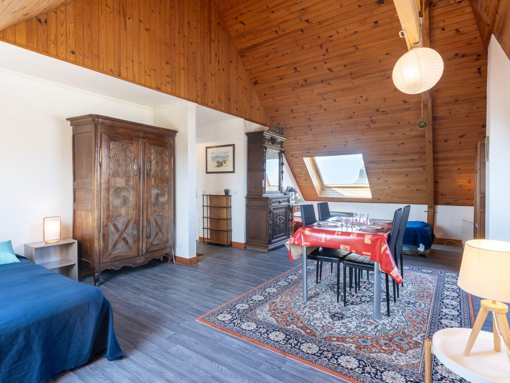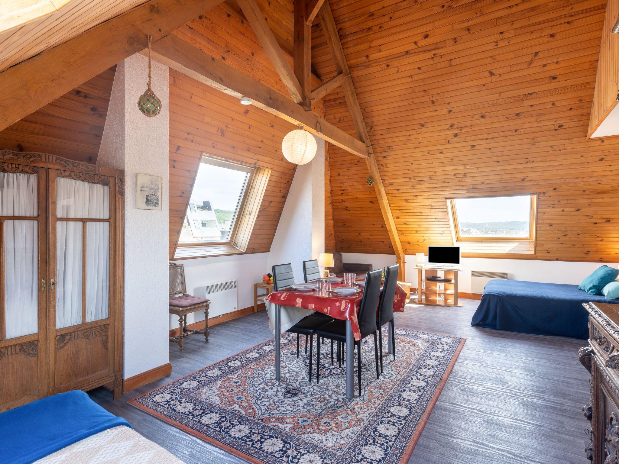 1-room studio 36 m2 on 3rd floor. With sloping ceilings: living/dining room with 1 french bed (140 cm, length 190 cm), TV (flat screen), hi-fi system and DVD. Kitchen (mini-oven, 4 ceramic glass hob hotplates, toaster, kettle, microwave, electric coffee machine). Shower/WC. Electric heating. View of the sea and the port. Facilities: washing machine, hair dryer. Internet (WiFi, extra). Parking space n 56. Please note: non-smokers only. Smoke alarm.