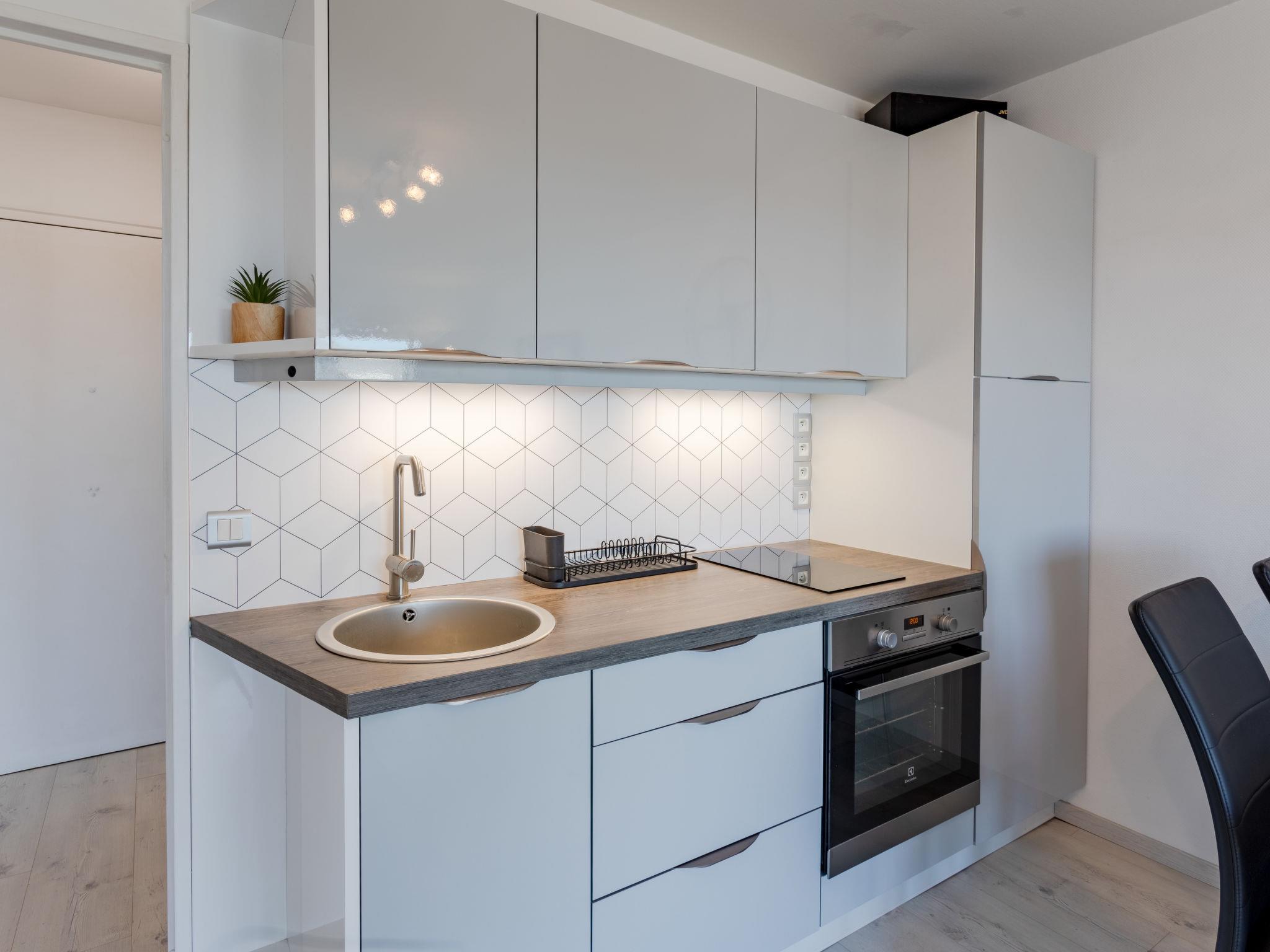 2-room apartment 31 m2 on 3rd floor, south facing position. Living/dining room with TV (flat screen), electric shutters. Exit to the balcony, south facing position. 1 room with 1 french bed (140 cm, length 190 cm), TV (flat screen), electric shutters. Kitchenette (oven, 2 induction hot plates, toaster, kettle, microwave, electric coffee machine, Capsules for coffee machine (Senseo) extra). Bath/WC. Electric heating. Parquet floors. Balcony 5 m2, south facing position. Balcony furniture. Facilities: iron, baby cot for up to 3 year olds. Internet (WiFi, extra). Parking space n 326. Please note: non-smokers only. Smoke alarm. Offer by a private individual according to Art. 155, IV of CGI.