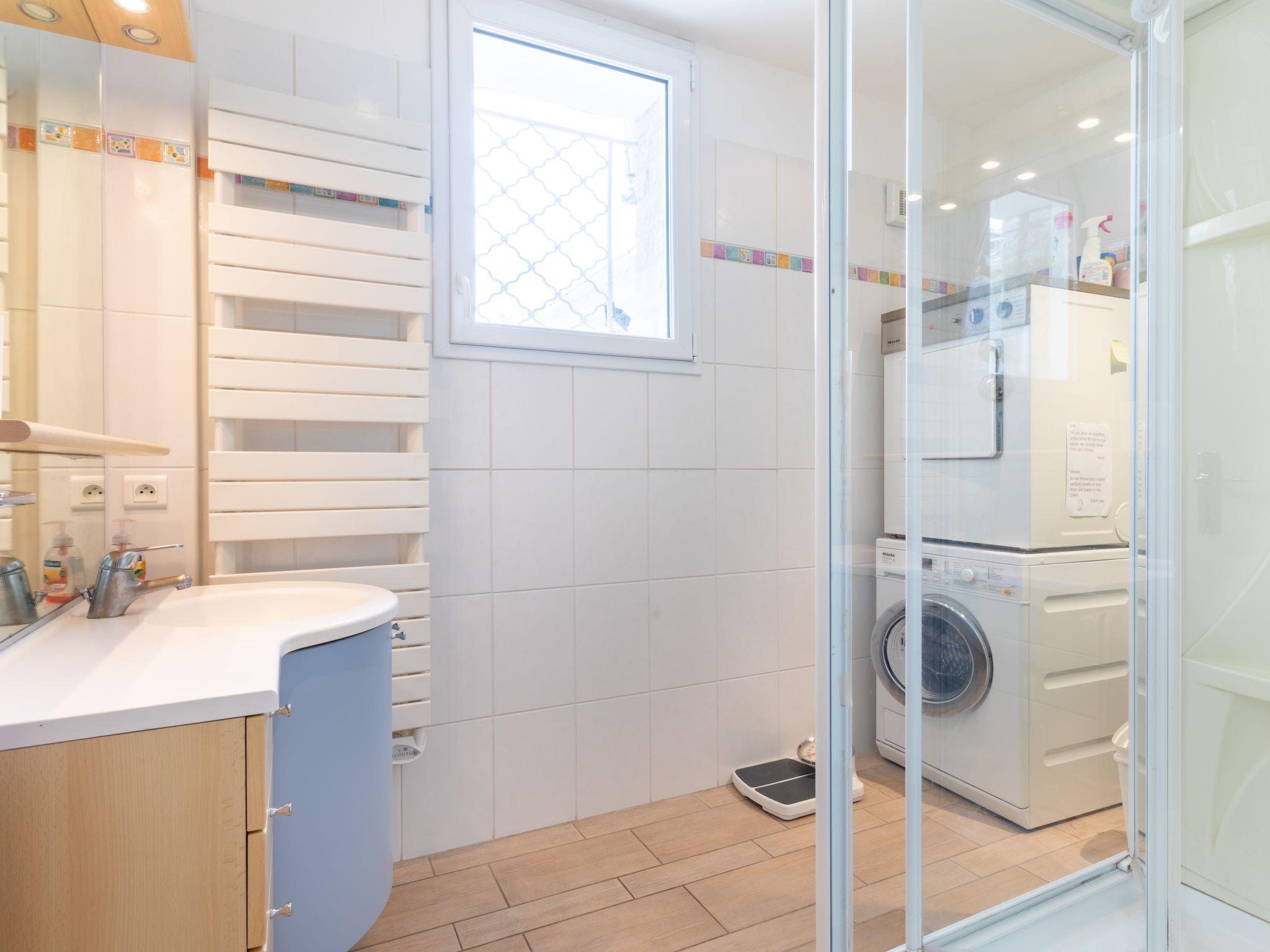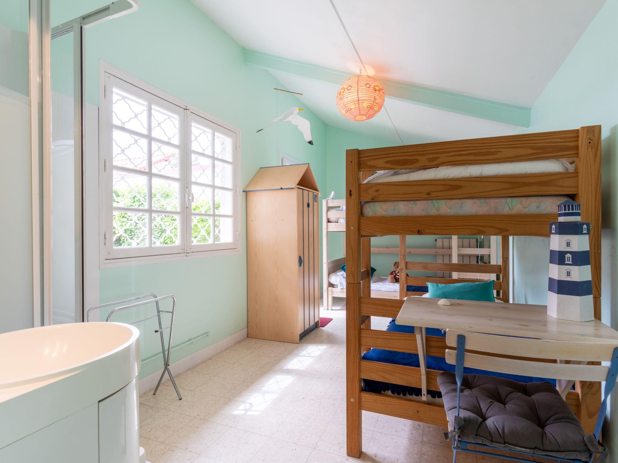 4-room house 108 m2. Rustic furnishings: living/dining room with TV (flat screen), electric shutters. Exit to the garden, to the terrace. 1 room with 1 french bed (140 cm, length 190 cm), electric shutters. 1 room with 1 french bed (160 cm, length 200 cm). Exit to the garden. 1 room with 1 x 2 bunk beds (90 cm, length 190 cm), shower. Open kitchen (2 hot plates, oven, dishwasher, 2 ceramic glass hob hotplates, toaster, kettle, microwave, freezer, electric coffee machine) with dining nook. Shower/WC. Electric heating. Terrace 8 m2, roofed, south facing position and west facing position, garden 300 m2. Terrace furniture. Facilities: washing machine, dryer. Internet (WiFi, extra). Parking (fenced). Please note: smoke alarm. FR 54188
