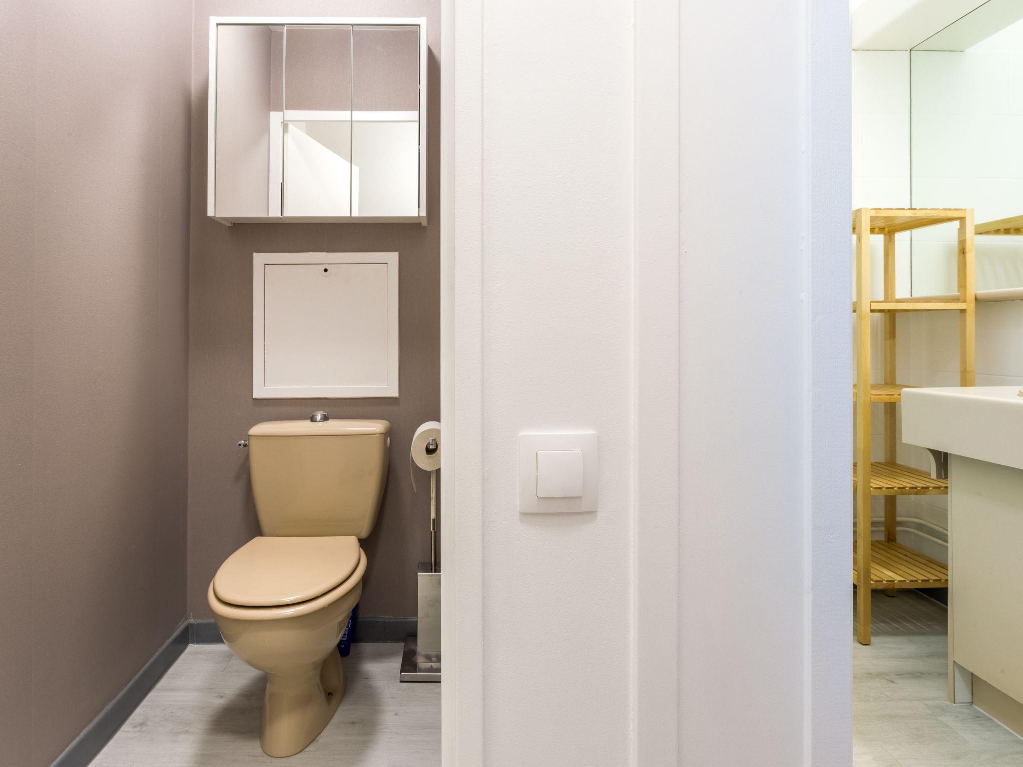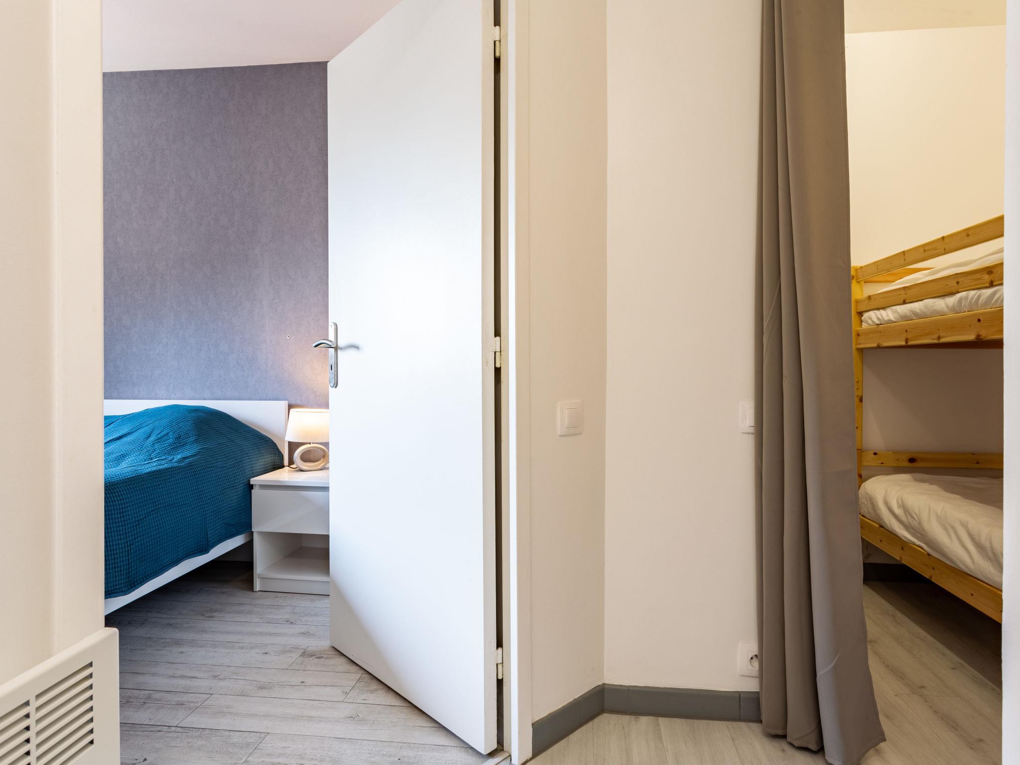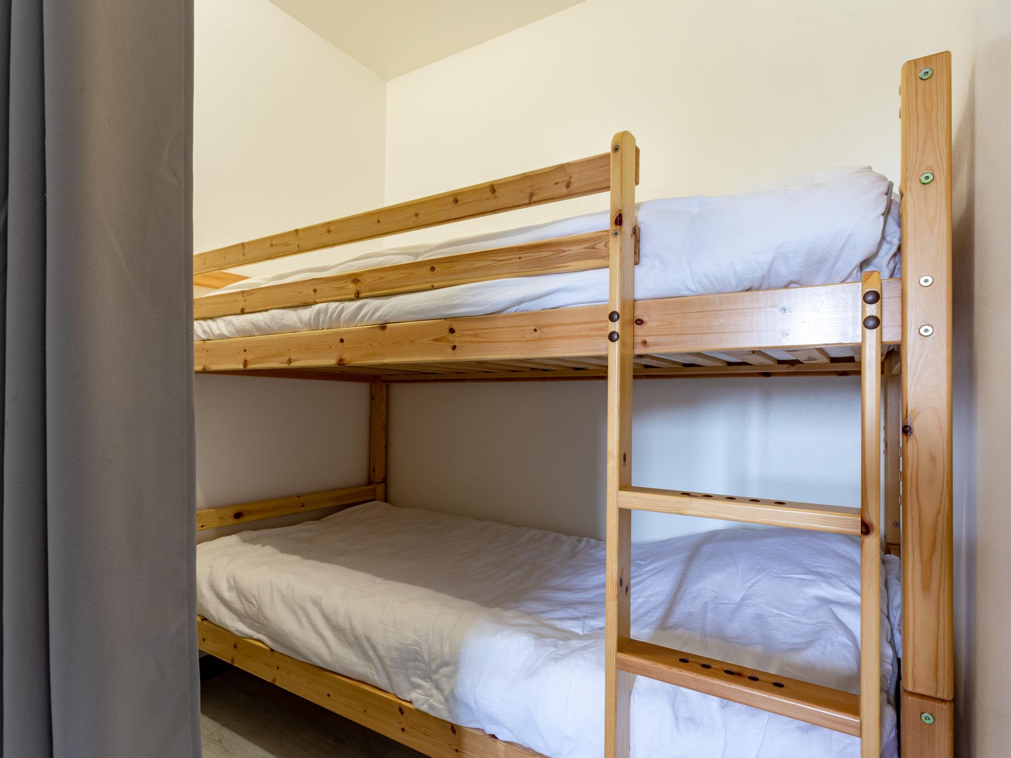 2-room apartment 39 m2 on 2nd floor, west facing position. Living/dining room with TV (flat screen), electric shutters. Exit to the balcony. 1 room with 1 french bed (160 cm, length 200 cm), TV and flat screen. Sleeping alcove with 1 x 2 bunk beds (90 cm, length 190 cm). Kitchenette (oven, dishwasher, 4 ceramic glass hob hotplates, toaster, kettle, microwave, freezer, electric coffee machine) with bar. Shower, sep. WC. Electric heating. Parquet floors. Balcony 5 m2. Facilities: washing machine, hair dryer. Internet (WiFi, free). Parking space n 34 (roofed). Please note: smoke alarm. Instead of an enclosed bedroom, some sleeping areas are located in an open-plan area (gallery, alcove, etc.).