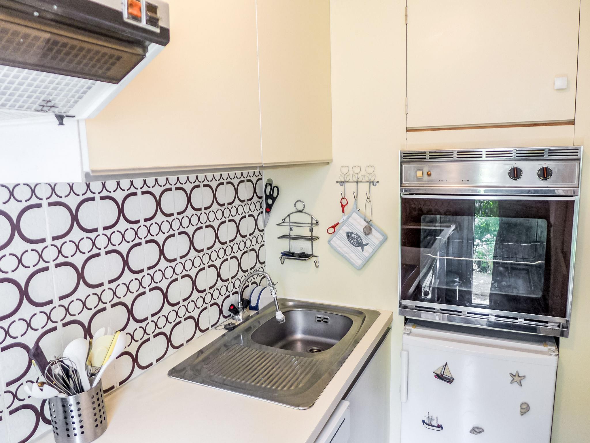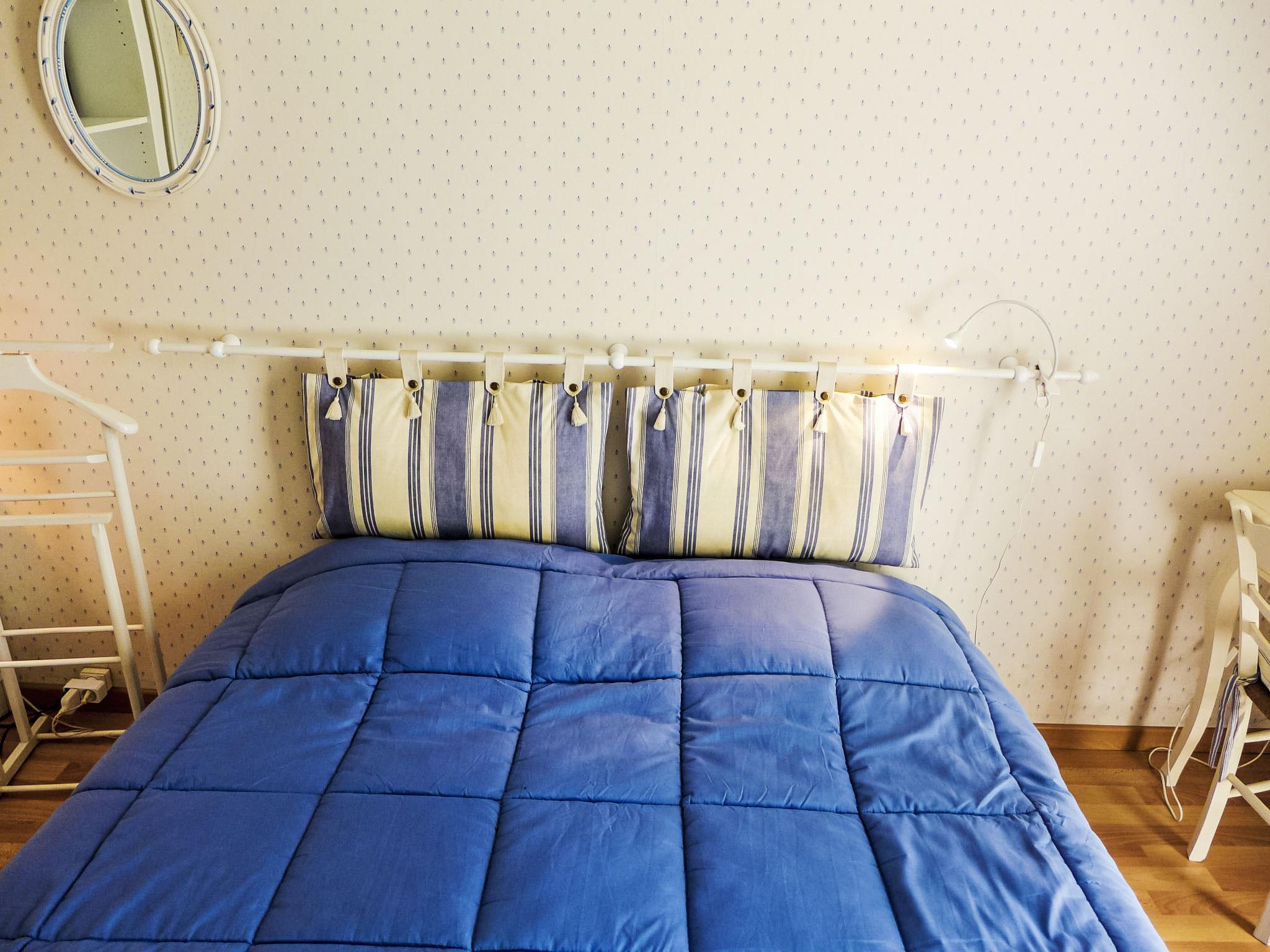 2-room apartment 35 m2, on the ground floor, south-west facing position. Living/dining room with 1 double sofabed (140 cm, length 190 cm), TV, flat screen and electric shutters. Exit to the terrace, to the patio. 1 room with 1 french bed (140 cm, length 200 cm), bathroom. Exit to the terrace, to the patio, south facing position and west facing position. Kitchen (oven, dishwasher, 3 ceramic glass hob hotplates, toaster, kettle, microwave, electric coffee machine). Sep. WC. Electric heating, boiler. Parquet floors. Terrace 15 m2, patio. Terrace furniture. Facilities: iron, hair dryer. Internet (WiFi, extra). Parking space n 69. Please note: non-smokers only. Smoke alarm. There is a fairly high step to access the terrace.