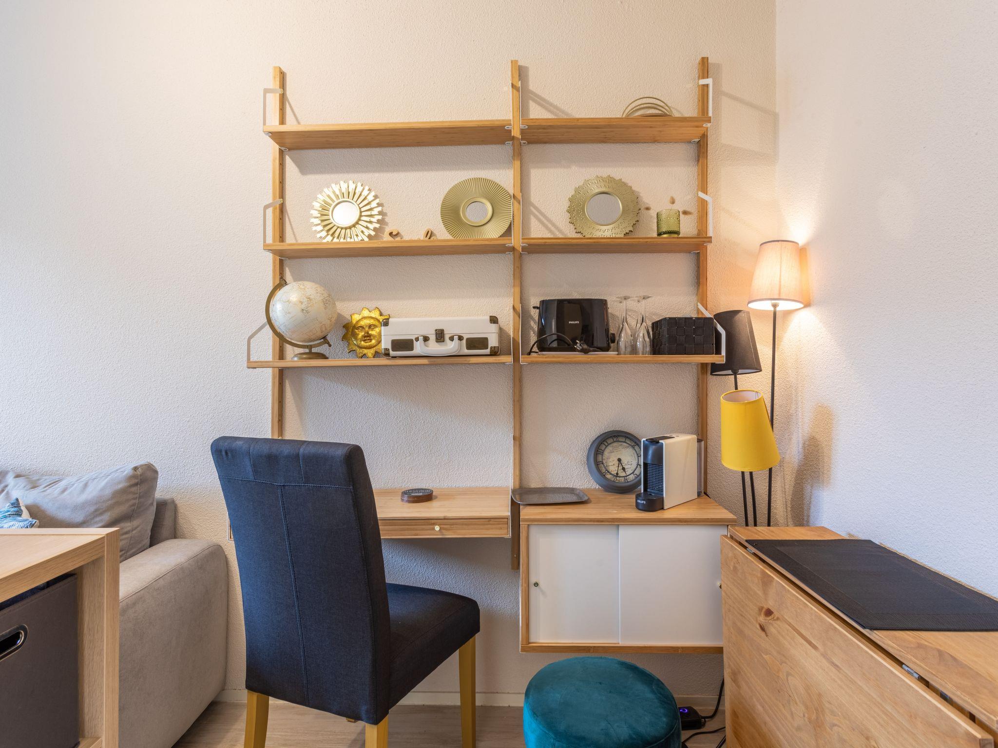 2-room apartment 21 m2 on 1st floor, east facing position. Living/dining room with TV (flat screen). Exit to the balcony. 1 room with 1 french bed (1 x 140 cm, length 190 cm). Kitchenette (2 hot plates, toaster, microwave, electric coffee machine, Capsules for coffee machine (KRUPS) extra). Shower/WC. Electric heating. Small balcony 5 m2. Balcony furniture. Side view of the sea. Facilities: iron. Internet (WiFi, extra). Please note: smoke alarm.