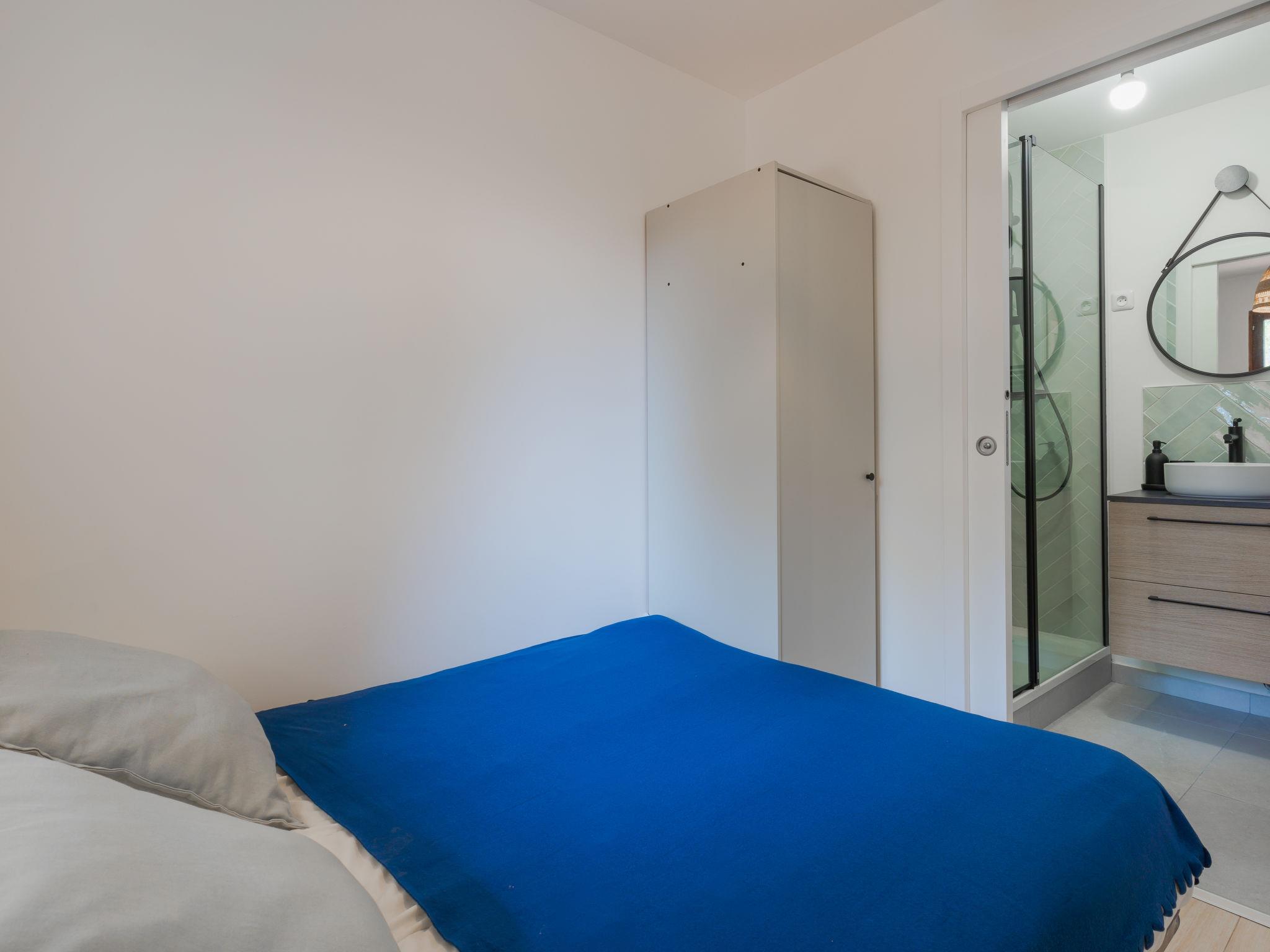 2-room apartment 22 m2, on the ground floor, south facing position. Living/dining room with TV (flat screen). Exit to the garden, to the terrace. 1 room with 1 french bed (1 x 140 cm, length 200 cm). Kitchenette (4 ceramic glass hob hotplates, toaster, kettle, microwave, electric coffee machine, Capsules for coffee machine (Phillips Or) extra). Bath/WC. Electric heating. Large garden 25 m2, south facing position. Terrace furniture, deck chairs (2). Facilities: Internet (WiFi, extra). Offer by a private individual according to Art. 155, IV of CGI.