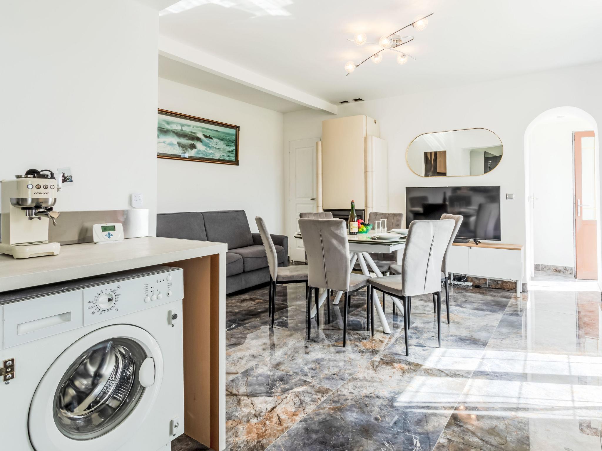 "Marine", 3-room terraced house 67 m2. Living/dining room with 1 double sofabed (140 cm, length 190 cm), separate WC and TV (flat screen). Exit to the garden, south facing position and west facing position. Open kitchen (oven, dishwasher, 4 induction hot plates, toaster, kettle, microwave, freezer, electric coffee machine). Shower, shower/WC. Electric heating. Upper floor: 1 room with 1 french bed (140 cm, length 190 cm), TV (flat screen). 1 room with 1 x 1 bunk beds (90 cm, length 190 cm), 1 sleeping facility (140 cm, length 190 cm), TV (flat screen). Garden 30 m2, south facing position and west facing position. Terrace furniture, barbecue. Facilities: washing machine, iron, hair dryer. Internet (WiFi, free). Please note: smoke alarm. Offer by a private individual according to Art. 155, IV of CGI.