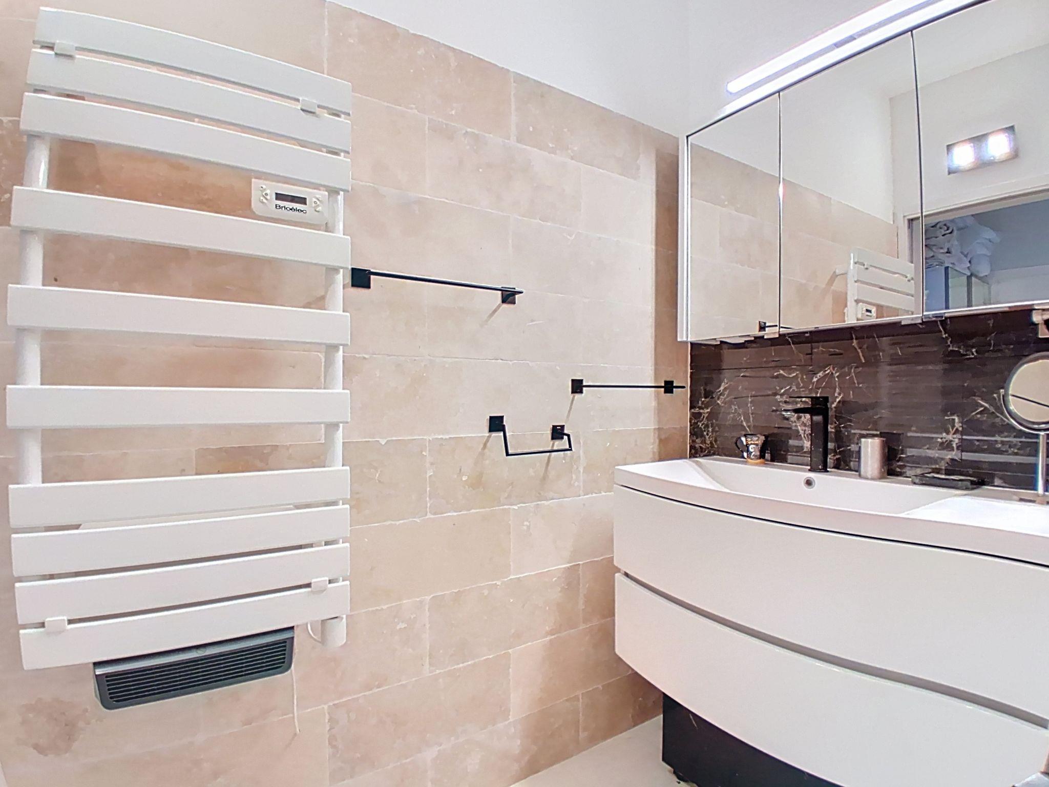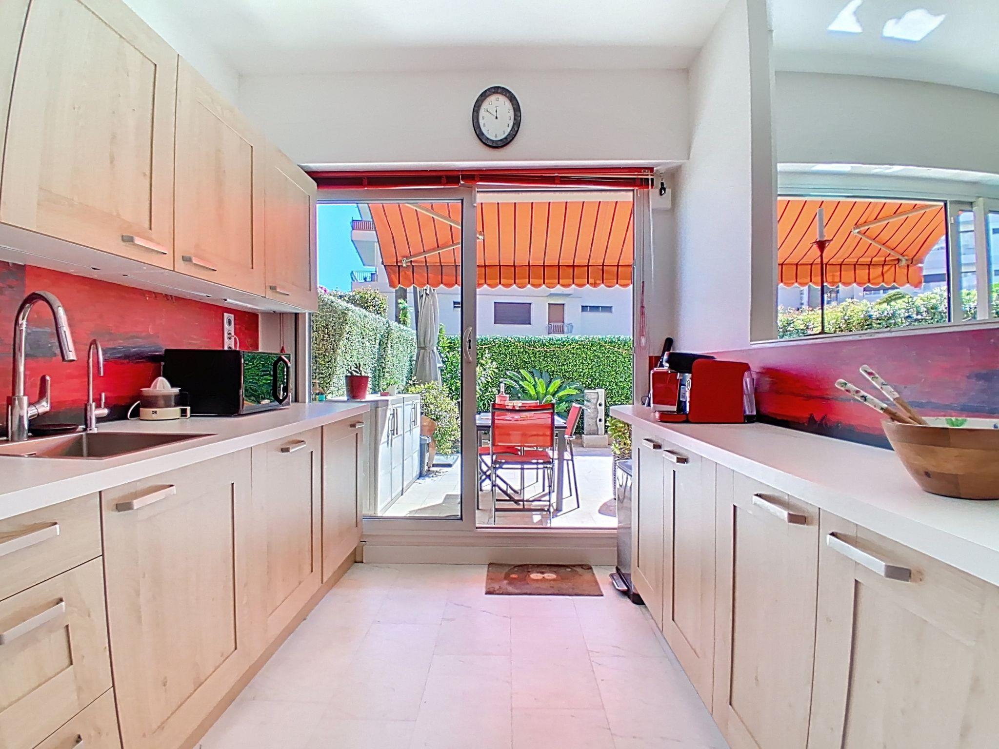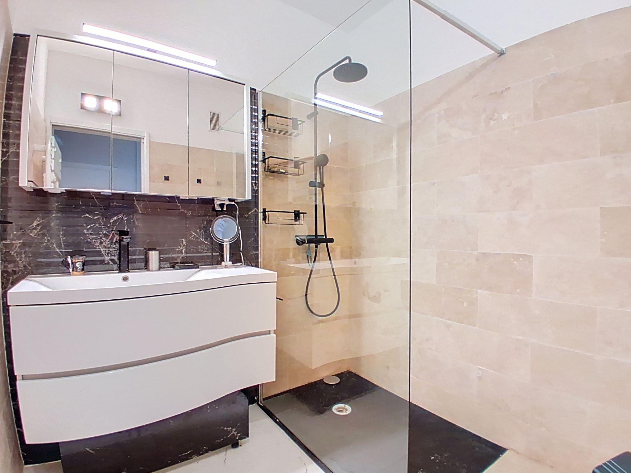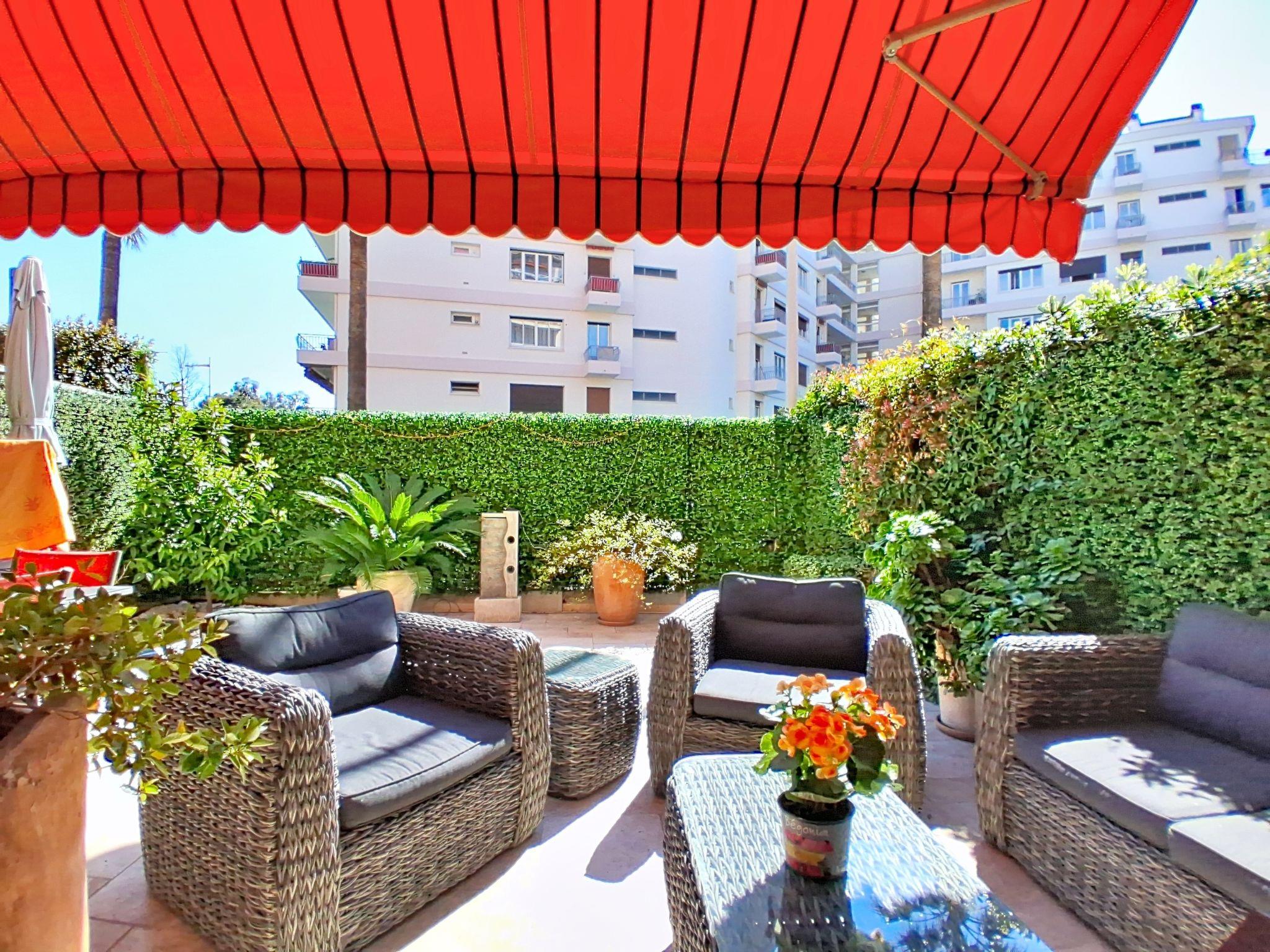"Le Chaville", 2-room apartment on the ground floor, west facing position. Spacious, comfortable and beautiful furnishings: living/dining room with 1 double wall-trunk bed (1 x 140 cm, length 200 cm), TV and flat screen. Exit to the terrace. 1 room with 1 french bed (1 x 160 cm, length 200 cm). Exit to the terrace with air conditioning. Kitchen (dishwasher, 1 induction hot plates, toaster, kettle, microwave, freezer, electric coffee machine). Bathroom, shower, sep. WC. Large terrace, west facing position. Terrace furniture. Facilities: washing machine, iron, hair dryer. Internet (WiFi, free). Parking space n 23. Offer by a private individual according to Art. 155, IV of CGI. 06027040654SB