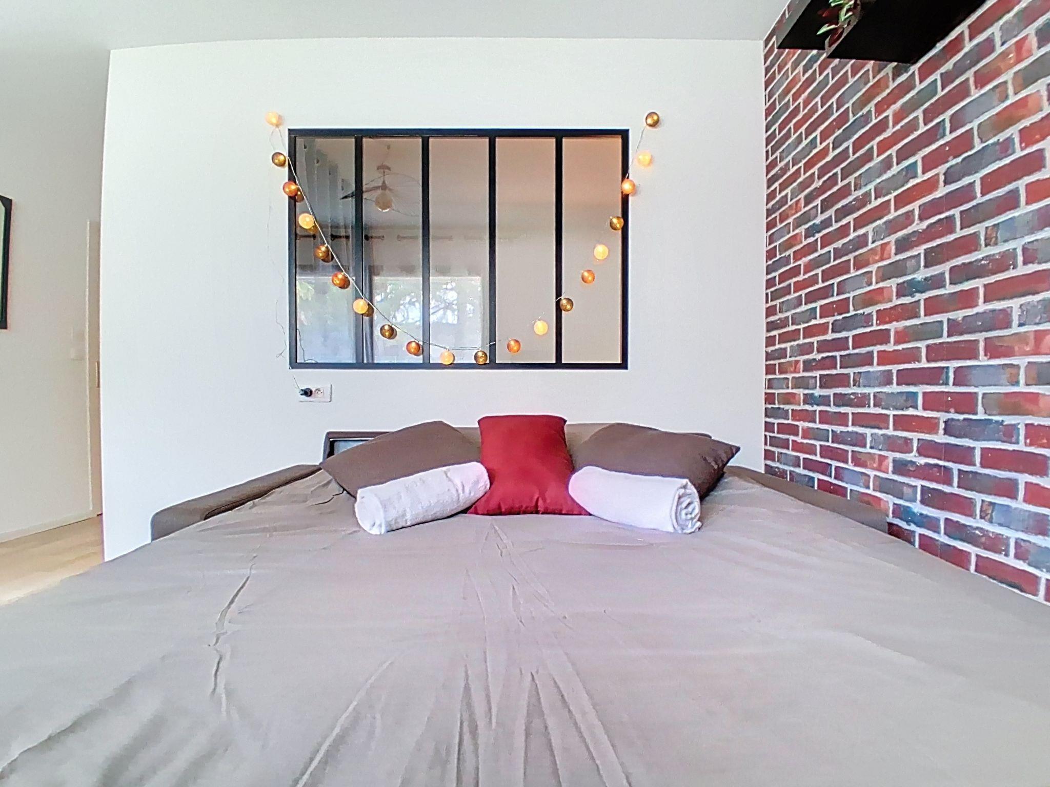 "Le Maresol", 1-room studio 26 m2 on 1st floor, north facing position. Renovated, beautiful furnishings: living/sleeping room with 1 double sofabed (1 x 140 cm, length 200 cm), TV, flat screen and air conditioning. Alcove with 1 double bed (1 x 140 cm, length 200 cm). Kitchen (dishwasher, 1 ceramic glass hob hotplate, toaster, kettle, microwave, freezer, electric coffee machine). Bathroom, bath/WC or shower/WC. Facilities: iron, hair dryer. Internet (WiFi, free). Please note: apartment carpark side. Non-smokers only. Smoke alarm. Offer by a private individual according to Art. 155, IV of CGI. 06027040816SB