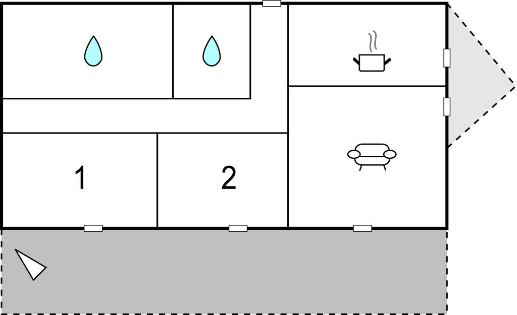 Soveværelse (nr. 1) - 1 Soveplads. (Enkeltseng(e)). 2 Sovepladser. (Dobbeltseng(e)).