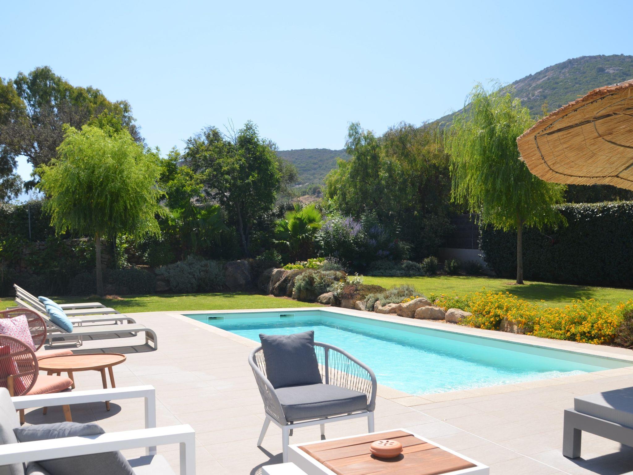 Elegant villa for 6 people in Calvi, within the Domaine Villas Mandarine, 900 m from the beach. Ideal for families or couples, it offers 3 en-suite bedrooms, air conditioning, a private pool, an enclosed garden and hotel services including housekeeping, linen, Wi-Fi and concierge service.