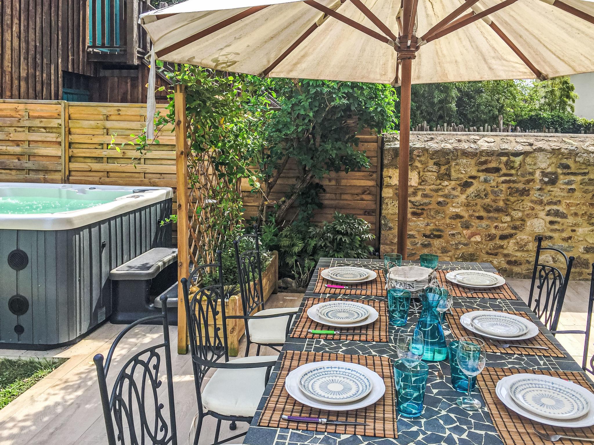 Very modern, beautiful, comfortable single-family house "Ti Malo", 2 storeys. In the centre of Cancale, residential area (villas), excellent location: right in the centre but still quiet, 1.5 km from the sea, 1.5 km from the beach. For shared use: hot tub. Private: well-kept garden 300 m2 (fenced) with lawn. Hot tub, terrace (30 m2), garden furniture, barbecue. In the house: sauna. Public parking on the road. Grocery 550 m, supermarket 1.1 km, bakery 500 m, bicycle rental 200 m, bus stop "Général de Gaulle" 600 m, railway station "Gare de la Gouesnière" 9.4 km, ferry "Gare maritime du Naye" 17 km, sandy beach "La Houle" 1.5 km, thermal baths "Thermes marin de Saint Malo" 13 km. Nearby attractions: grand aquarium de St Malo 15 km, saint Malo intramuros 16 km, Mont St Michel 47 km, Dinard 27 km, Dol de Bretagne 21 km, Dinan 36 km.
