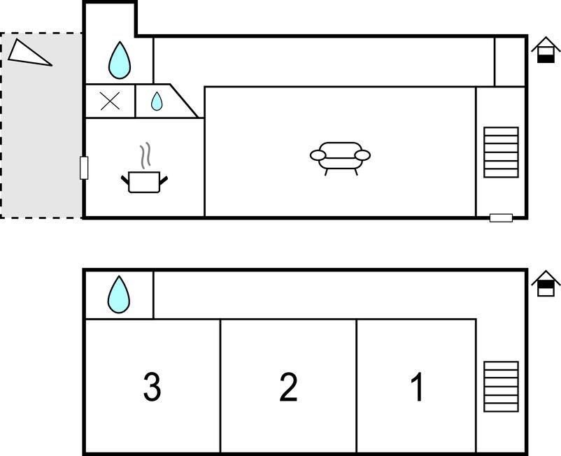 Soveværelse (nr. 3) - 1 Soveplads. (Enkeltseng(e)). 2 Sovepladser. (Dobbeltseng(e)).