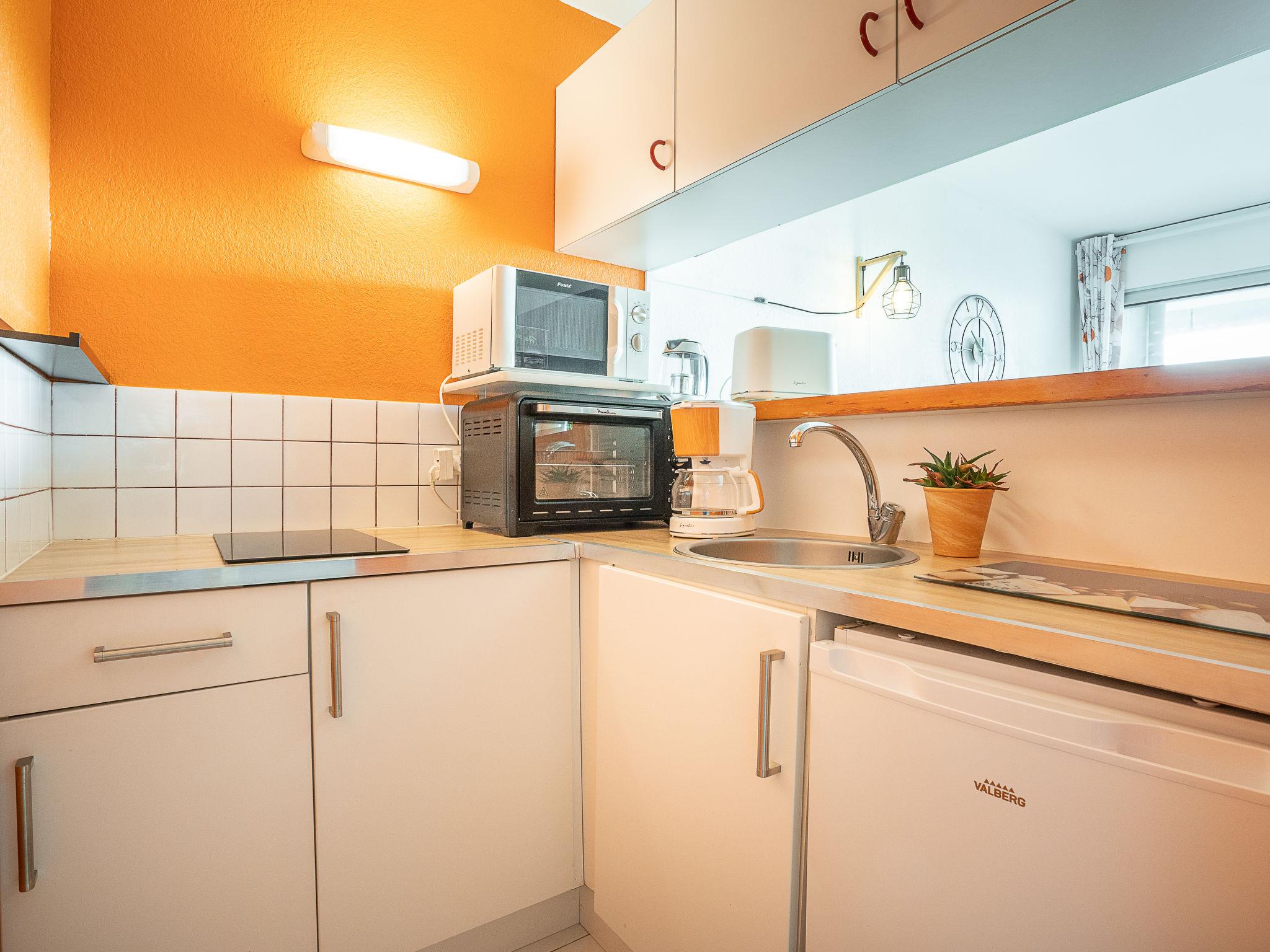 2-room apartment 32 m2 on 3rd floor. Living/dining room with 1 double sofabed (140 cm, length 190 cm), TV (flat screen), fan. Exit to the terrace. 1 room with 1 bed (130 cm, length 190 cm). Open kitchen (2 hot plates, mini-oven, toaster, kettle, microwave, electric coffee machine). Bathroom, sep. WC. Electric heating. Small terrace 8 m2, east facing position. Terrace furniture. Panoramic view of the sea. Facilities: washing machine, iron. Internet (WiFi, free). Parking. Please note: maximum 1 pet/ dog allowed. Smoke alarm.