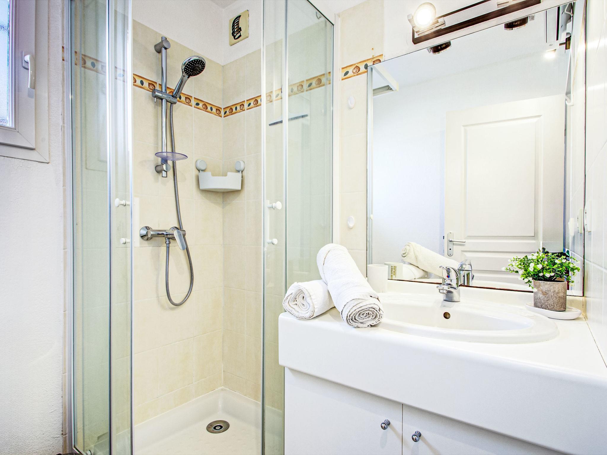 Canet Plage: Residence "Atrium", 2 storeys. In the centre of Canet plage, 500 m from the sea, 500 m from the beach. In the complex: parking space n 47. Shop 500 m, supermarket 200 m, shopping centre 8 km, restaurant, bar, bakery, café 200 m, pedestrian zone 500 m, bus stop 50 m, railway station "Perpignan" 12 km, sandy beach 500 m, diving center 18 km, outdoor swimming pool 1 km, indoor swimming pool 1 km, lake Etang de Canet 3 km. Sports harbour 500 m, golf course (18 hole) 8 km, sailing school 500 m, tennis 1 km. Nearby attractions: Perpignan 12 km, Collioure 25 km, Banyuls 37 km, Espagne 35 km, Andorre 180 km, Barcelone 200 km. Well-known lakes can easily be reached: Lac de Villeneuve de la Raho 19 km, Lac de St Jean Pla de Corts 39 km, Gorges du Gouleyrous 42 km. Hiking paths: Abbaye St Martin du Canigou 70 km, Pic du Canigou 77 km, Lac des Bouillouses 105 km. Please note: no lift.