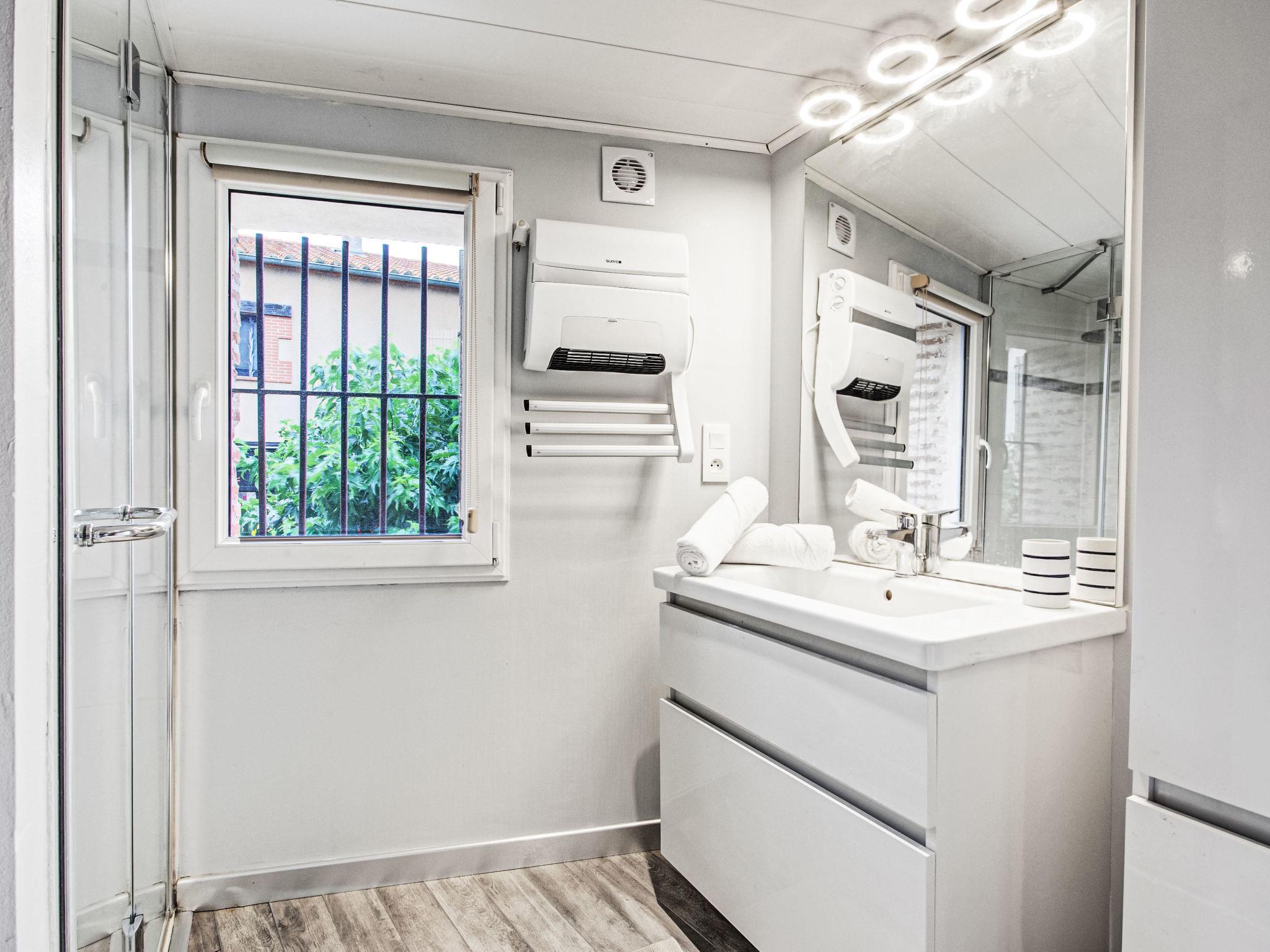5-room house 70 m2 on 2 levels. Partly renovated, comfortable and beautiful furnishings: living/dining room with TV (flat screen), air conditioning. Exit to the terrace. Kitchenette (oven, dishwasher, 4 induction hot plates, toaster, kettle, microwave, electric coffee machine, Capsules for coffee machine (Nespresso) extra). Upper floor: 1 room with 1 french bed (1 x 140 cm, length 190 cm), air conditioning. 1 room with 1 french bed (1 x 160 cm, length 200 cm), air conditioning. 1 room, without window with shower and air conditioning. Exit to the terrace. Shower, sep. WC. 2nd upper floor: gallery with 1 french bed (1 x 140 cm, length 190 cm), air conditioning. Large terrace 60 m2, terrace 20 m2. Terrace furniture, electric barbecue, deck chairs (2). View of the resort. Facilities: washing machine, iron, hair dryer. Internet (WiFi, free). Parking (fenced). Please note: non-smoking house. Maximum 1 pet/ dog allowed. Smoke alarm. One of the bedrooms is accessible via the bathroom, with stairs leading up to the air-conditioned bedroom. Offer by a private individual according to Art. 155, IV of CGI.