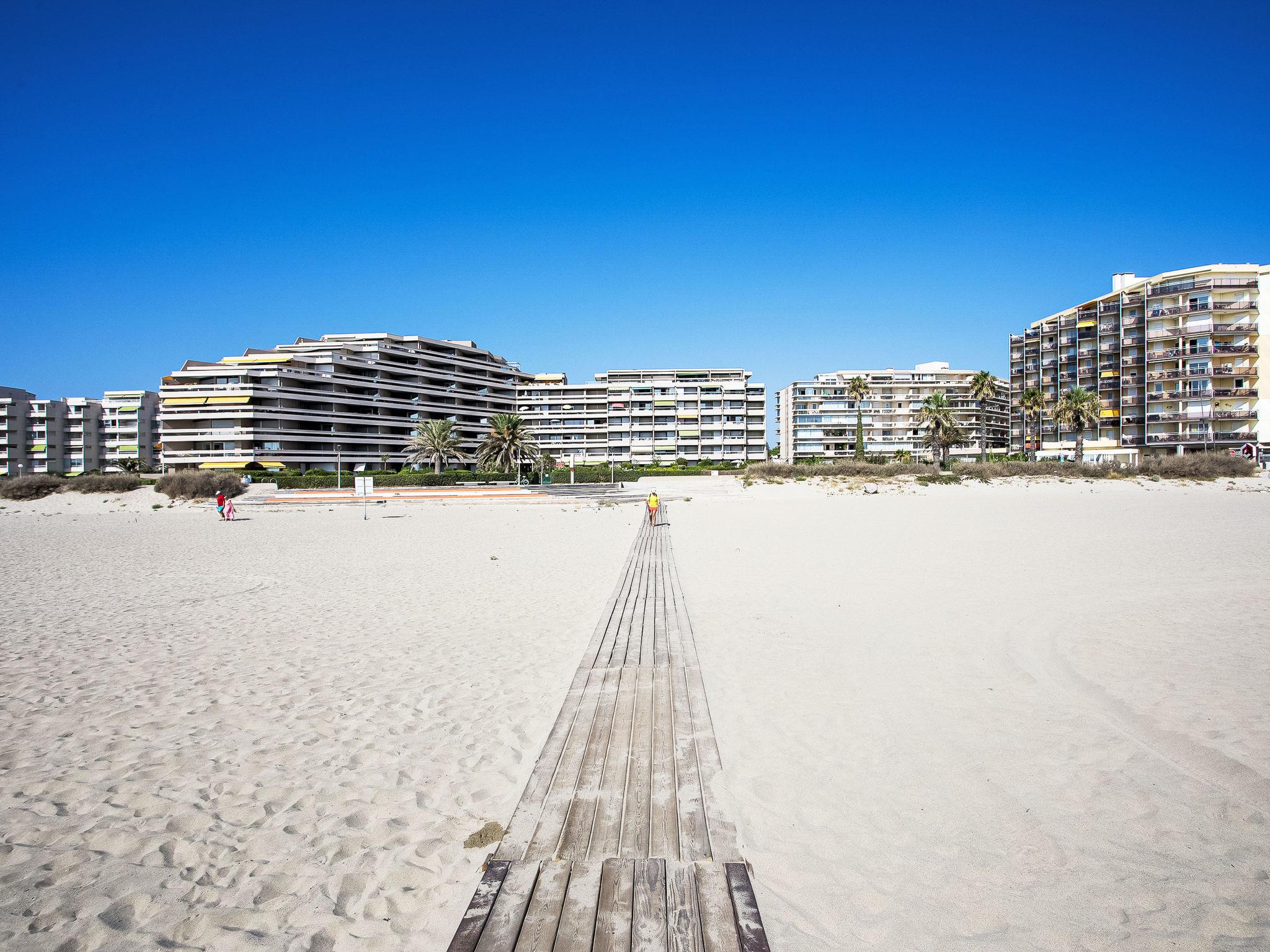 Canet Plage: Residence "Le Beach", 8 storeys. In the district of Canet Sud, 50 m from the sea, 50 m from the beach. In the complex: lift. Public parking on the road. Shop 50 m, shopping centre 8 km, restaurant, bakery, bus stop 50 m, railway station "Perpignan" 12 km, park "Aqualand St Cyprien" 12 km, diving center 18 km, outdoor swimming pool 3 km, indoor swimming pool 3 km, lake Etang de Canet 1 km. Sports harbour 5 km, golf course (18 hole) 8 km, minigolf 1 km. Nearby attractions: Perpignan 12 km, Collioure 25 km, Banyuls 37 km, Espagne 35 km, Andorre 180 km, Barcelone 200 km. Well-known lakes can easily be reached: Lac de Villeneuve de la Raho 19 km, Lac de St Jean Pla de Corts 39 km, Gorges du Gouleyrous 42 km. Hiking paths: Abbaye de St Martin du Canigou 70 km, Pic du Canigou 77 km, Lac des Bouillouses 105 km. Please note: entertainment in the season. Additional accommodations can be booked.