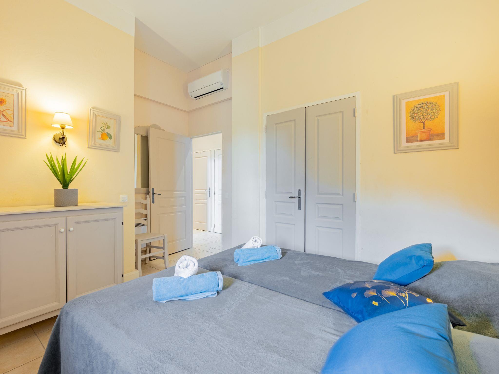 3-room apartment 75 m2, on the upper ground floor. Comfortable and beautiful furnishings: living/dining room with 1 double sofabed (160 cm, length 200 cm), TV (flat screen), air conditioning. Exit to the terrace. 1 room with 1 french bed (160 cm, length 200 cm), air conditioning. 1 room with 2 beds (80 cm, length 200 cm), air conditioning. Open kitchen (dishwasher, 3 induction hot plates, toaster, kettle, freezer, electric coffee machine, Capsules for coffee machine (Nespresso) extra, combination microwave). Bathroom, shower/WC. Air-conditioning, forced-air heating. Large terrace 300 m2, south facing position. Terrace furniture. Very beautiful view of the sea. Facilities: Internet (WiFi, free). Parking at the house. Please note: non-smokers only. Smoke alarm. Please note: the 300 m² terrace is shared by the 4 apartments on the ground floor. 06029016041WF