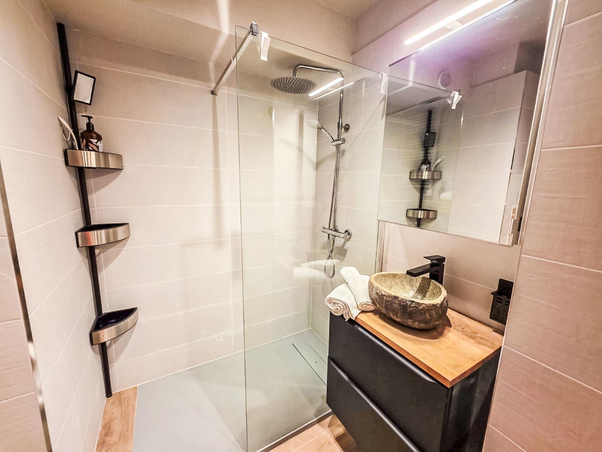 "Joyce", 1-room apartment 20 m2 on 5th floor, east facing position. Comfortable and beautiful furnishings: living/dining room with 1 double sofabed (160 cm, length 200 cm), TV (flat screen). Exit to the veranda. Open kitchen (2 ceramic glass hob hotplates, microwave, electric coffee machine). Shower/WC. Air-conditioning, forced-air heating. Balcony furniture, covered balcony. Facilities: iron, hair dryer. Internet (WiFi, free). Please note: smoke alarm. Offer by a private individual according to Art. 155, IV of CGI. 06029020836AK