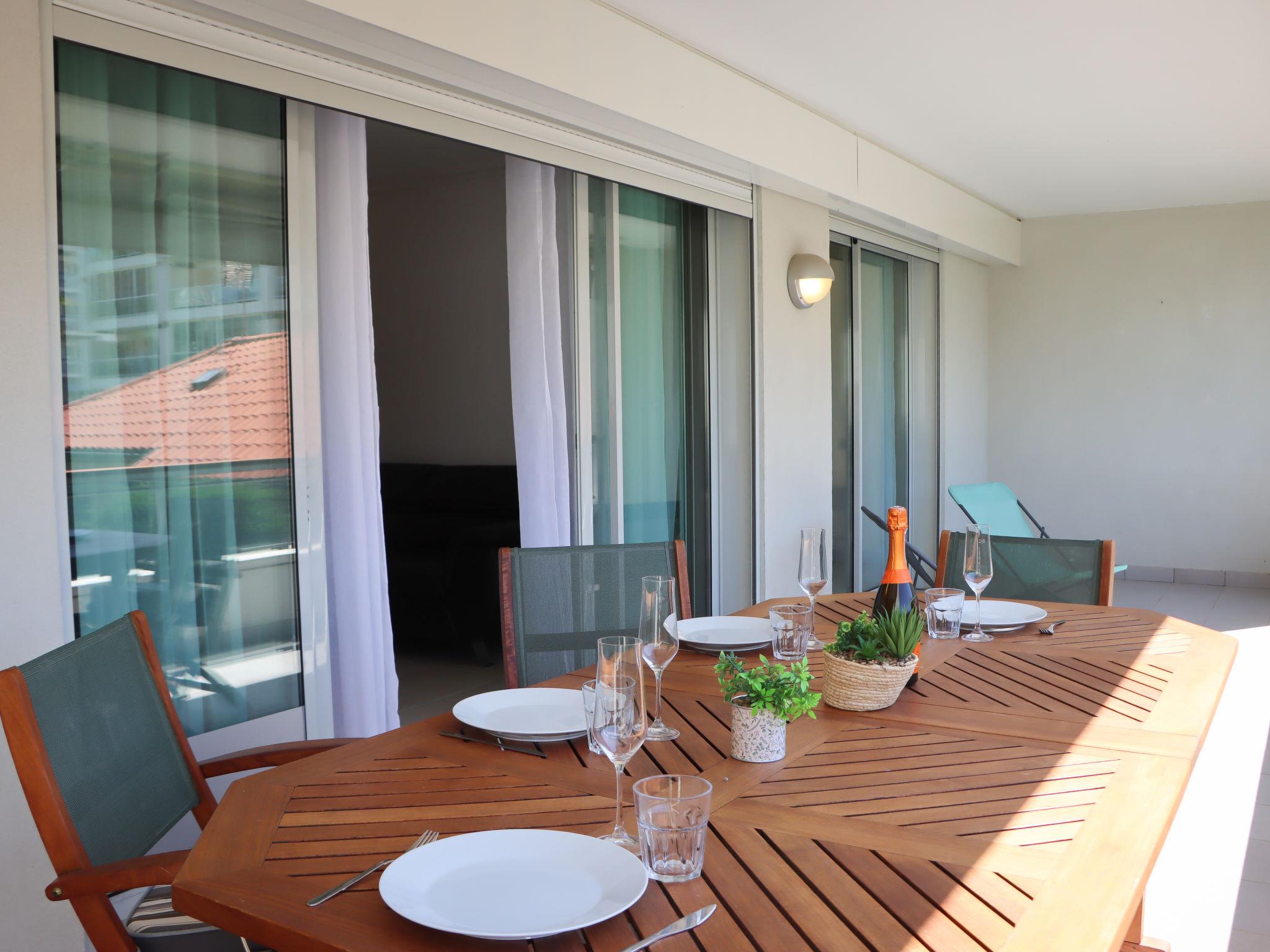 4-room apartment 114 m2 on 2nd floor. Comfortable furnishings: living/dining room with TV (flat screen), air conditioning. Exit to the terrace. 1 room with 1 french bed (160 cm, length 200 cm), air conditioning. Exit to the terrace. 1 room with 2 beds (80 cm, length 190 cm), air conditioning. Exit to the terrace. 1 room with 1 french bed (160 cm, length 200 cm), bathroom and air conditioning. Exit to the terrace. Kitchen (oven, dishwasher, 4 ceramic glass hob hotplates, toaster, kettle, microwave, freezer, electric coffee machine, Capsules for coffee machine (Senseo) extra). Shower/WC, sep. WC. Air-conditioning, forced-air heating. Terrace 30 m2, west facing position terrace 15 m2, east facing position. Terrace furniture. View of the garden. Facilities: washing machine, hair dryer. Internet (WiFi, free). Garage space n 15. Please note: non-smokers only. Smoke alarm. Offer by a private individual according to Art. 155, IV of CGI. 06029031071WF