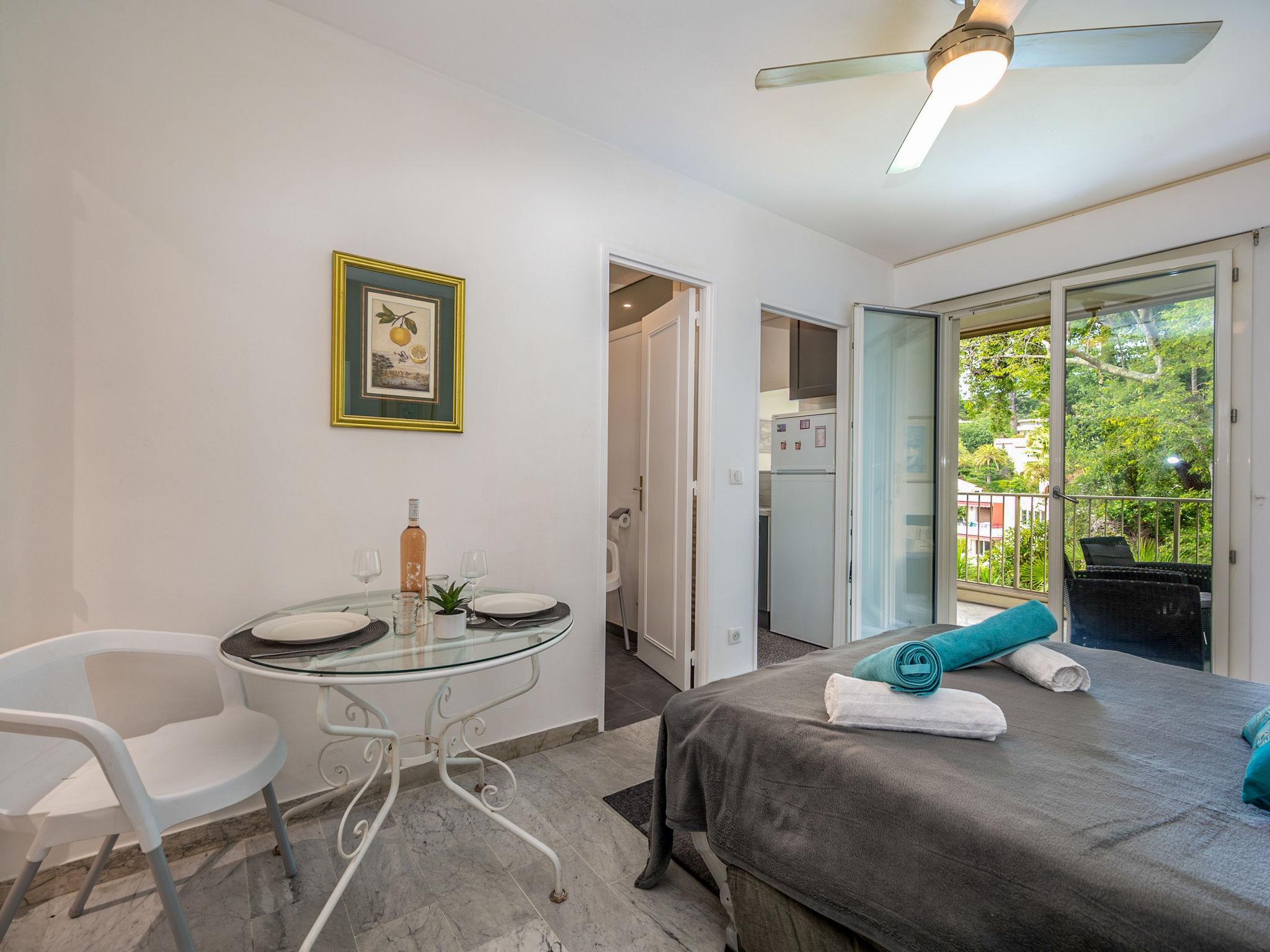 1-room apartment 20 m2 on 3rd floor. Comfortable and beautiful furnishings: living/dining room with 1 double sofabed (140 cm, length 190 cm), TV (flat screen). Exit to the terrace. Kitchen (2 hot plates, oven, toaster, kettle, microwave, freezer, electric coffee machine). Shower/WC. Heating, air-conditioning. Terrace 10 m2, roofed, north facing position. Terrace furniture. Facilities: washing machine, safe. Internet (WiFi, extra). Please note: non-smokers only. Smoke alarm. Offer by a private individual according to Art. 155, IV of CGI. 06029026727WF