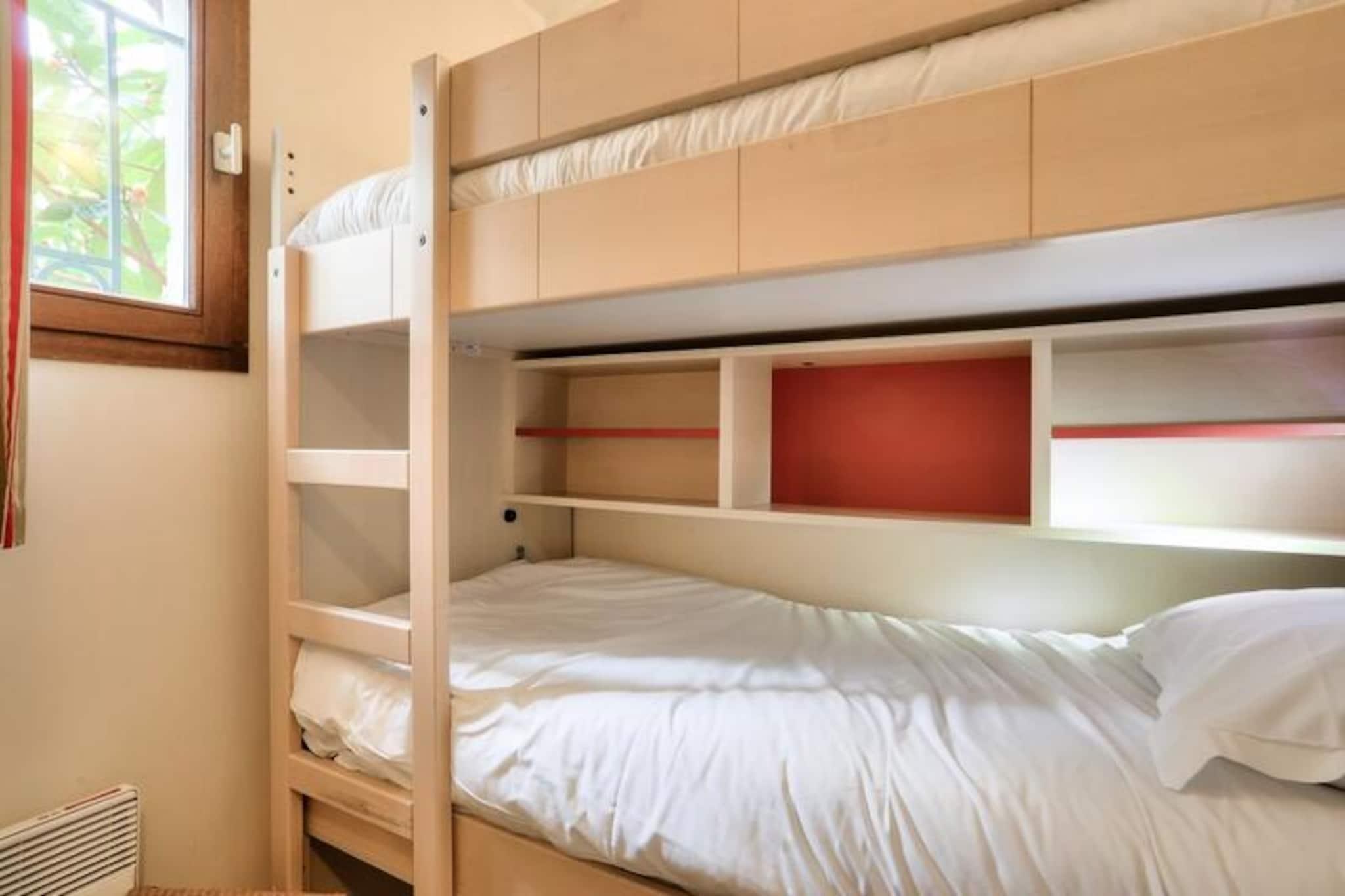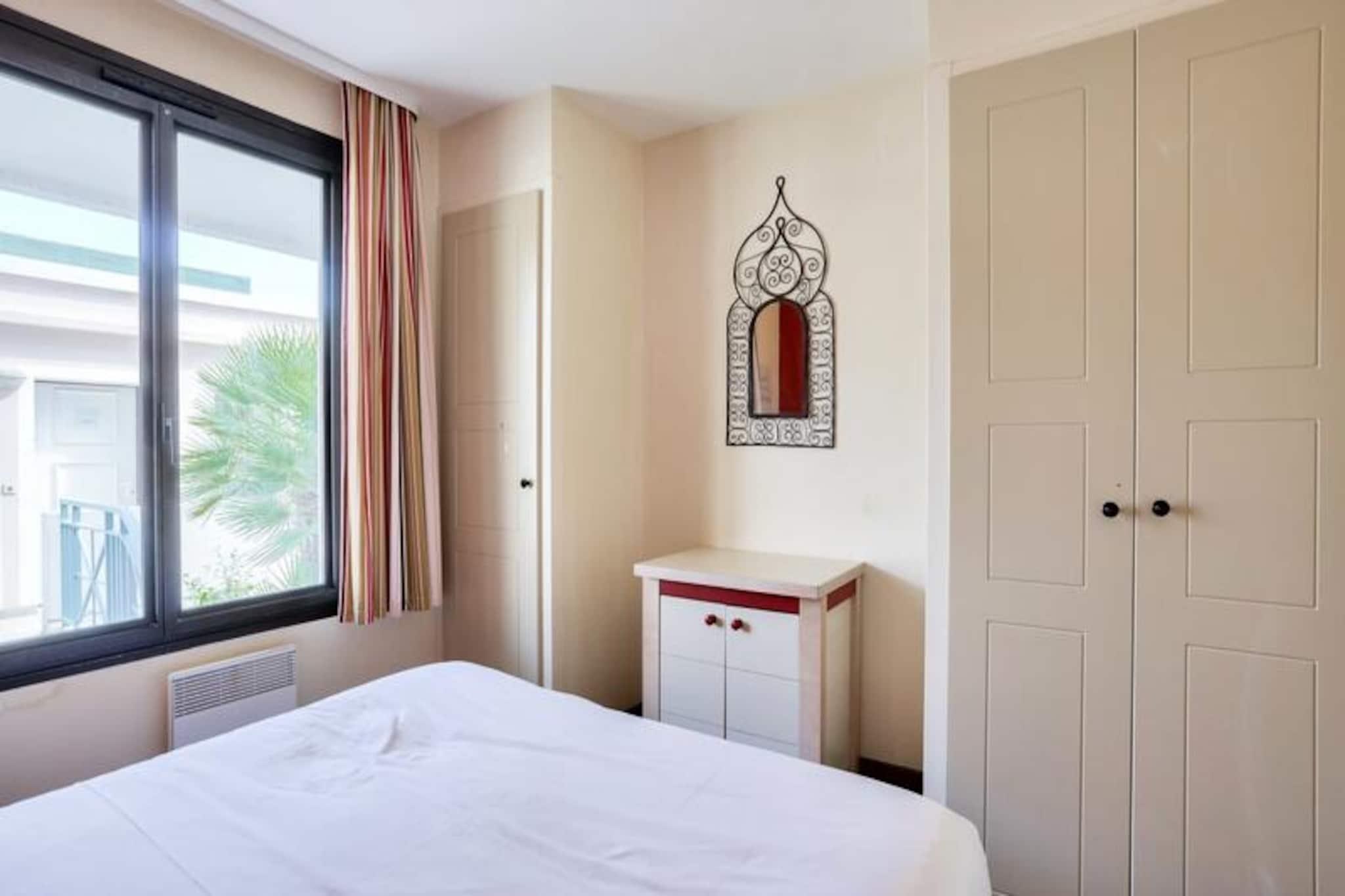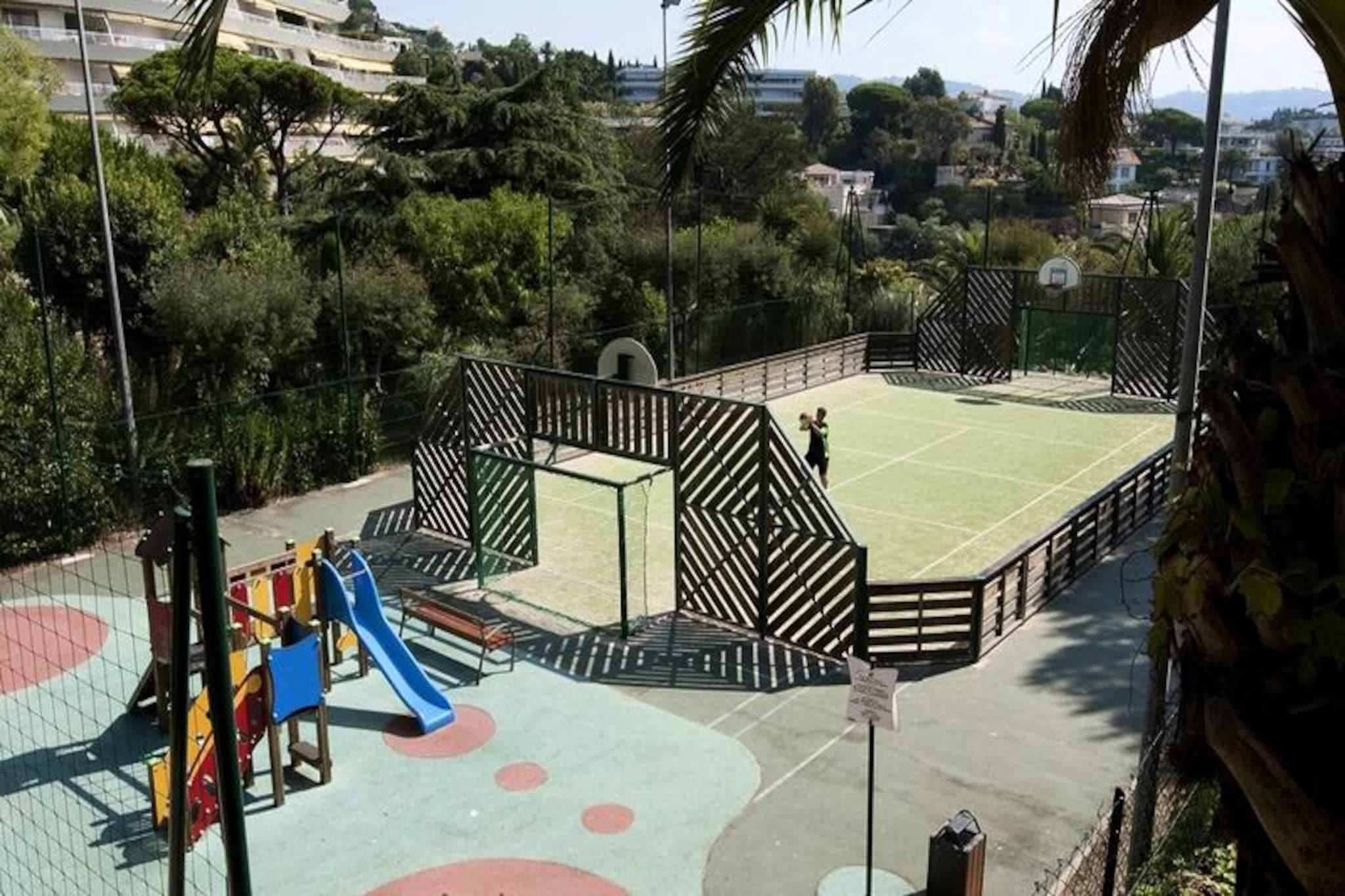 Denne charmerende 3-værelses lejlighed er beliggende i "La Croix des Gardes"-kvarteret i Cannes, kun 2 km fra byens centrum og den ikoniske Croisette. Beliggende i en frodig 5 hektar stor park tilbyder boligen et fredeligt, familievenligt miljø med panoramaudsigt over havet fra swimmingpoolens terrasse. Lejligheden indeholder en stue med en sovesofa, et fuldt udstyret køkken, to soveværelser (et med dobbeltseng, det andet med køjesenge) og to badeværelser, det ene med bruser og det andet med badekar. Det har også en dejlig terrasse, perfekt til at nyde udendørs. Gæsterne kan nyde boligens infinity-pool (åben fra april til november), kun 800 meter fra stranden, samt adgang til en række aktiviteter, herunder et bordtennisbord, tennisbane og et legeområde. For yderligere fritid er der en 18-hullers golfbane og vandski i nærheden (begge mod ekstra gebyr). Til lejligheden hører også en privat parkeringsplads for nemheds skyld. Ideel til en familieferie, er boligen kun en kort køretur eller bustur fra Cannes' livlige attraktioner, herunder Croisetten, Palais des Festivals og den charmerende gamle bydel i Le Suquet. Med nærliggende caféer, butikker og et busstoppested har du alt, hvad du behøver for et mindeværdigt ophold.