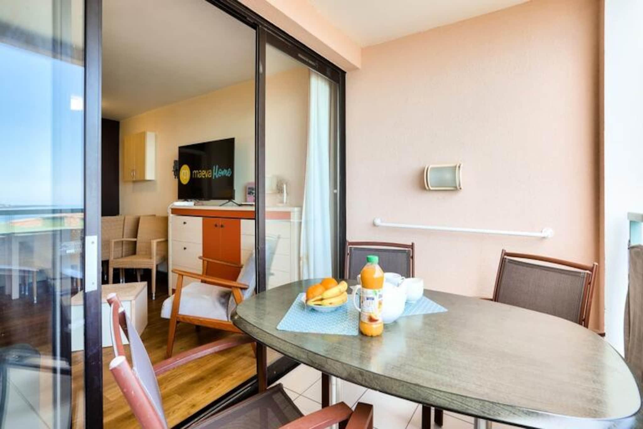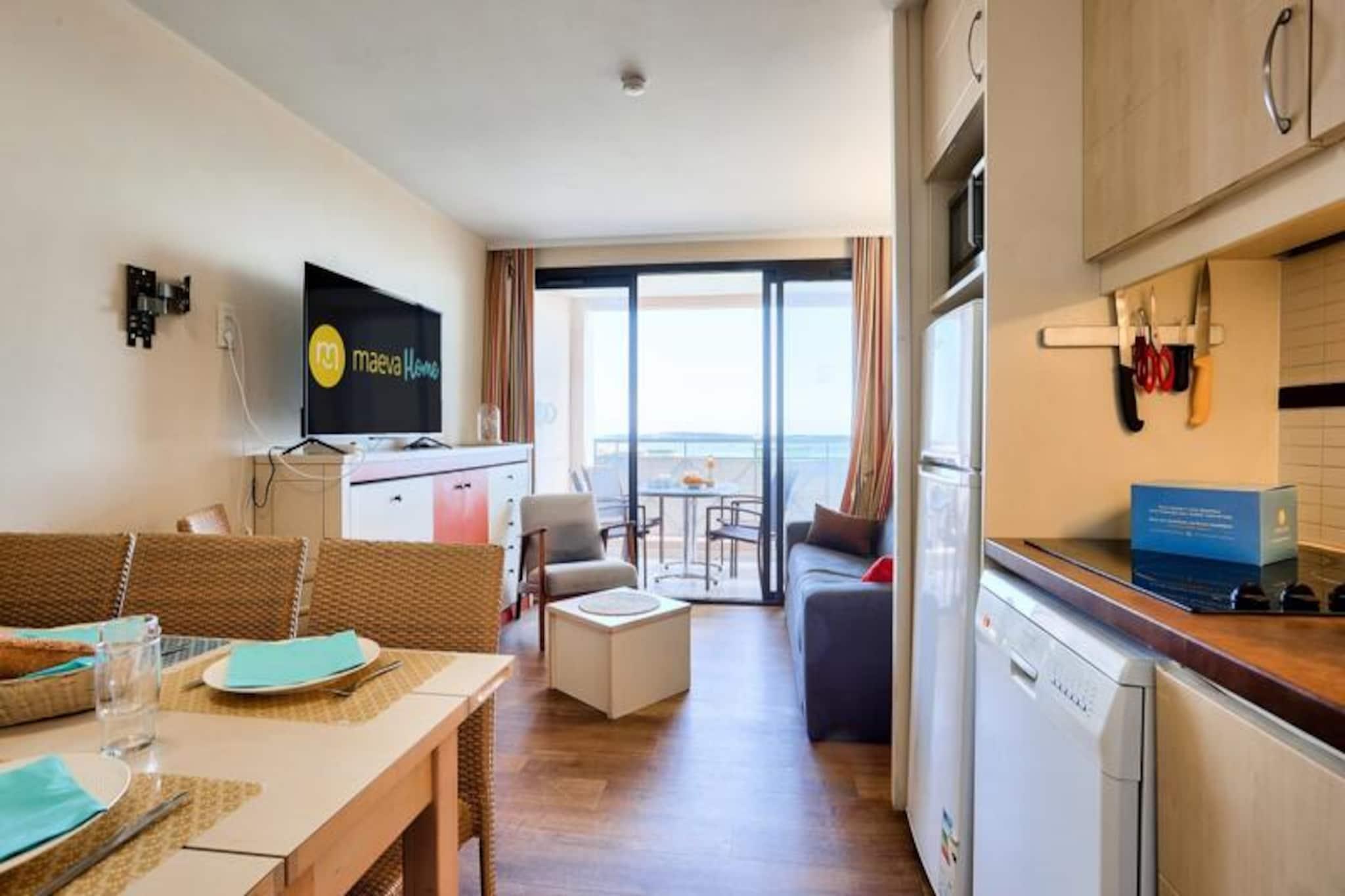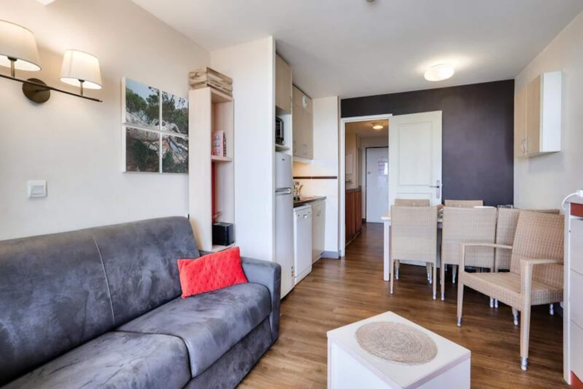 Denne charmerende 3-værelses lejlighed er beliggende i "La Croix des Gardes"-kvarteret i Cannes, kun 2 km fra byens centrum og den ikoniske Croisette. Beliggende i en frodig 5 hektar stor park tilbyder boligen et fredeligt, familievenligt miljø med panoramaudsigt over havet fra swimmingpoolens terrasse. Lejligheden indeholder en stue med en sovesofa, et fuldt udstyret køkken, to soveværelser (et med dobbeltseng, det andet med køjesenge) og to badeværelser, det ene med bruser og det andet med badekar. Det har også en dejlig terrasse, perfekt til at nyde udendørs. Gæsterne kan nyde boligens infinity-pool (åben fra april til november), kun 800 meter fra stranden, samt adgang til en række aktiviteter, herunder et bordtennisbord, tennisbane og et legeområde. For yderligere fritid er der en 18-hullers golfbane og vandski i nærheden (begge mod ekstra gebyr). Til lejligheden hører også en privat parkeringsplads for nemheds skyld. Ideel til en familieferie, er boligen kun en kort køretur eller bustur fra Cannes' livlige attraktioner, herunder Croisetten, Palais des Festivals og den charmerende gamle bydel i Le Suquet. Med nærliggende caféer, butikker og et busstoppested har du alt, hvad du behøver for et mindeværdigt ophold.