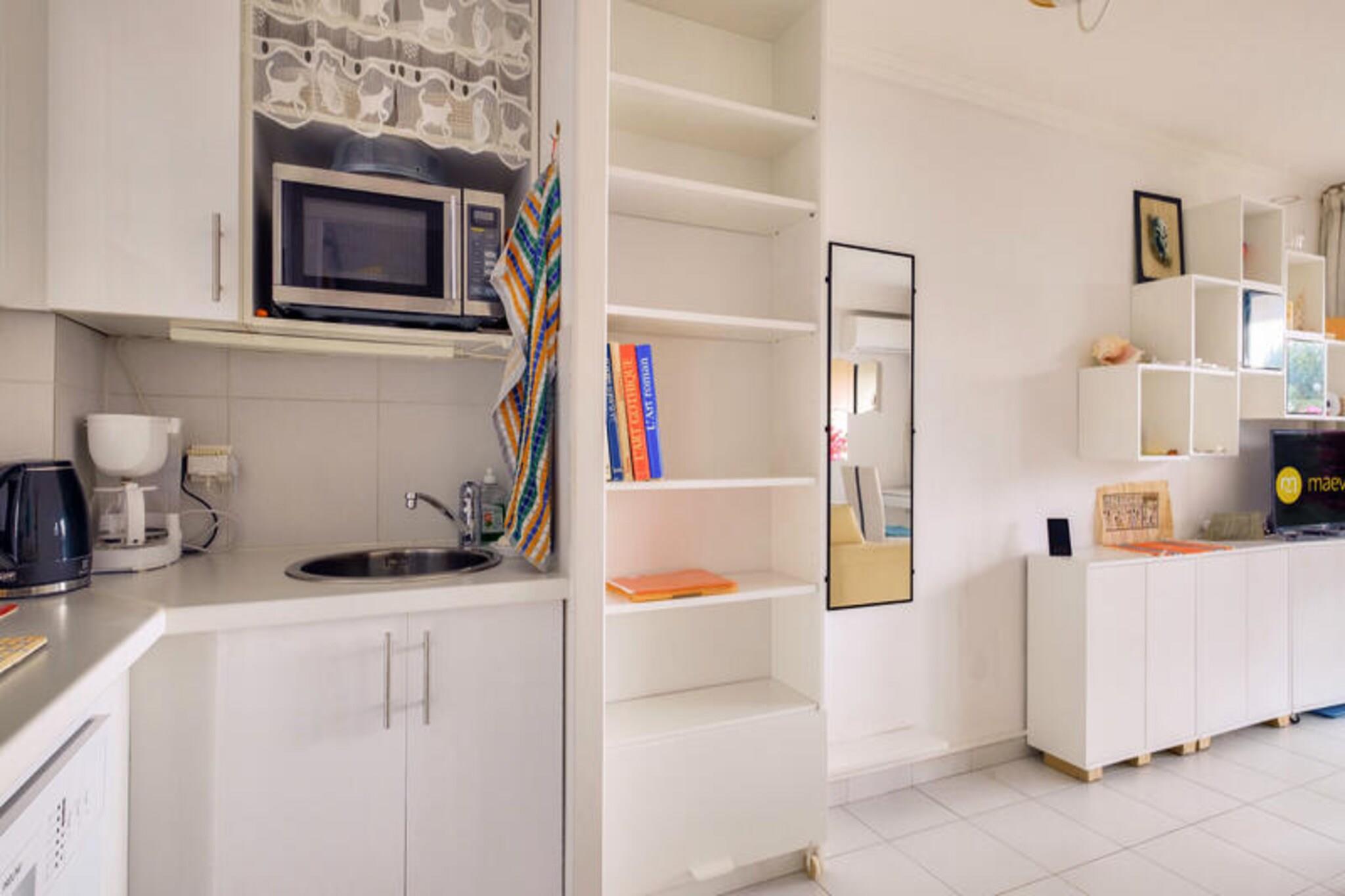 Cannes Villa Francia Residence er beliggende i det fredelige "La Croix des Gardes"-kvarter i Cannes, kun 2 km fra byens centrum og den berømte Croisette. Beliggende i en frodig 5 hektar stor park fyldt med palmer og gamle træer, tilbyder denne familievenlige bolig en fredfyldt flugt. Gæsterne kan nyde panoramaudsigten over havet fra terrassen ved infinity-poolen, og den nærliggende strand ligger kun 800 meter væk, perfekt til en afslappende dag ved Middelhavet. Beliggende nær attraktioner som Palais des Festivals og den ikoniske Croisette, er boligen også en kort køretur fra Cannes gamle bydel og de smukke Esterel-bjerge. Selvom boligen ikke er egnet til personer med nedsat mobilitet, anbefales det at have et køretøj for at udforske området og få adgang til nærliggende attraktioner. Denne 39 m² store toværelsesudlejning kan rumme op til 4 personer med en stue, et kabineområde med køjesenge og et soveværelse med dobbeltseng. Lejligheden har også et fuldt udstyret køkken, badeværelse, separat toilet og en overdækket terrasse med havudsigt. Boligen omfatter en række fritidsmuligheder, herunder en tennisbane, bordtennis, et legeområde for børn og en 18-hullers golfbane kun 20 minutter væk. Vandski er tilgængelig 800 meter fra ejendommen for dem, der søger mere eventyrlige aktiviteter.
