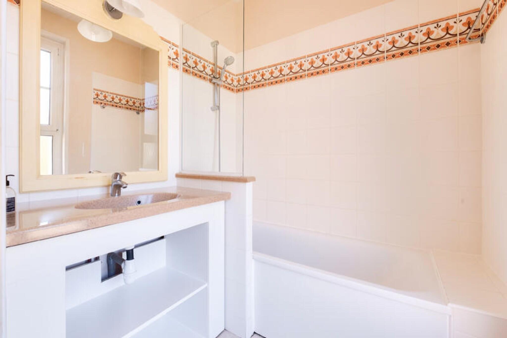 Beliggende i "La Croix des Gardes"-kvarteret i Cannes La Bocca, kun 2 km fra centrum og Croisette, tilbyder denne bolig en charmerende og hyggelig ramme for familier. Beliggende i en 5 hektar stor eksotisk park med palmer og århundredgamle træer, tilbyder boligen en grøn oase med panoramaudsigt over havet fra terrassen ved swimmingpoolen. Nærliggende attraktioner omfatter den glamourøse Croisette, berømt for sine luksusbutikker, restauranter og Palais des Festivals, hjemsted for filmfestivalen i Cannes. Den gamle bydel i Le Suquet byder på maleriske gader og en fantastisk udsigt, mens Marché Forville byder på friske råvarer og lokale delikatesser. Vandski er tilgængelig 800 meter væk (mod ekstra gebyr). Indkvarteringen inkluderer en stue, to soveværelser, et køkkenområde, to badeværelser og et toilet og kan rumme op til syv personer. Nyd roen og den fantastiske udsigt over havet og den frodige vegetation fra denne rummelige og lyse lejlighed. For nemheds skyld tilbyder boligen også parkering, Wi-Fi-adgang (ekstra gebyr) og forskellige valgfrie tjenester såsom babysæt og sengetøj (ekstra gebyr). De pulserende omgivelser og smukke omgivelser gør dette til en ideel destination for en mindeværdig ferie i Cannes.