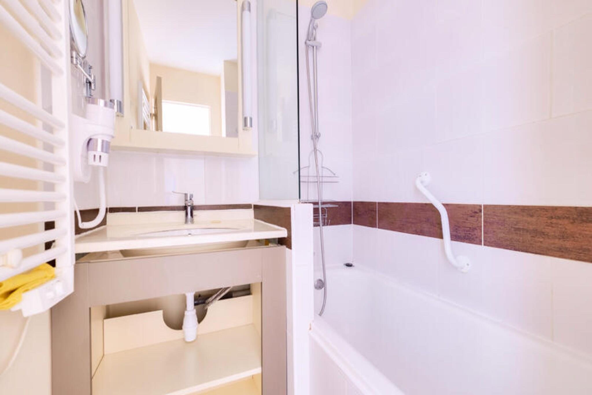 Beliggende i det maleriske "La Croix des Gardes"-distrikt i Cannes, tilbyder denne charmerende 27 m² lejlighed med havudsigt den perfekte blanding af afslapning og bekvemmelighed til dit ophold på den franske riviera. Beliggende i en frodig 5 hektar stor park fyldt med palmer og århundrede gamle træer, tilbyder boligen et roligt tilflugtssted kun 2 km fra den pulserende bymidte og den ikoniske Croisette. Lejligheden er ideel til familier og byder på en komfortabel stue, et kabineområde med køjesenge til børn, et soveværelse med dobbeltseng, et fuldt udstyret køkken og et badeværelse med badekar. Den sydøstvendte balkon giver dig mulighed for at nyde en fantastisk havudsigt, mens du nyder et måltid eller en drink. Gæsterne kan nyde boligens smukke infinity-pool, et legeområde for børn og en tennisbane. For ekstra afslapning ligger stranden kun 800 meter væk, og boligen er en kort køretur fra en række fritidsmuligheder, herunder vandski, golfbaner og en 18-hullers golfbane kun 20 minutter væk. Nærliggende attraktioner omfatter den maleriske gamle havn i Cannes, Palais des Festivals og de berømte sandstrande ved Croisette. For nemheds skyld ligger et supermarked inden for en kort køretur, selvom et køretøj anbefales for at udforske det omkringliggende område. Denne bolig tilbyder den perfekte base for en blanding af arbejde og afslapning, med aircondition, Wi-Fi og en dedikeret parkeringsplads inkluderet.