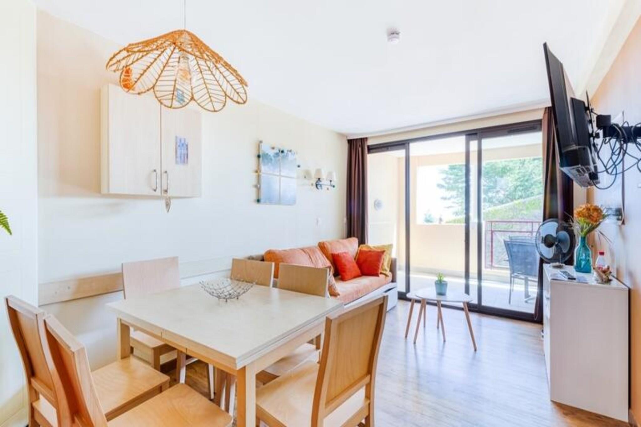 Ejendommen tilbyder familievenlige, fredfyldte omgivelser i en frodig 5 hektar stor park fyldt med palmer og århundredgamle træer. Lejligheden på 45 m² ligger på første sal og har en stue med en sovesofa (2 sovepladser) og en spiseplads med et bord og 6 stole. Det fuldt udstyrede køkken er halvåbent til stuen, og der er lyst soveværelse med dobbeltseng og kabineområde med køjesenge. Beliggende i det fredelige "La Croix des Gardes"-kvarter i Cannes, er denne bolig kun 2 km fra byens centrum og den berømte Croisette. Gæsterne har adgang til stranden, der ligger 800 meter væk, og boligen har en infinity-pool med panoramaudsigt over havet, åben fra 15. april til 4. november. Underholdningsmulighederne omfatter gratis adgang til et bordtennisbord, en tennisbane og en legeplads. areal. Mod et tillægsgebyr kan gæsterne stå på vandski, og en 18-hullers golfbane ligger 20 minutter fra boligen. For at udforske området fuldt ud, anbefales det at have et køretøj, da boligen ikke er egnet til personer med nedsat mobilitet og tilbyder begrænsede transportmuligheder. Lejlighedens moderne, fuldt udstyrede køkken indeholder væsentlige apparater såsom en vaskemaskine og opvaskemaskine. Sengelinned, håndklæder og yderligere tjenester såsom daglige skift af sengetøj eller slutrengøring er tilgængelige mod et tillægsgebyr.