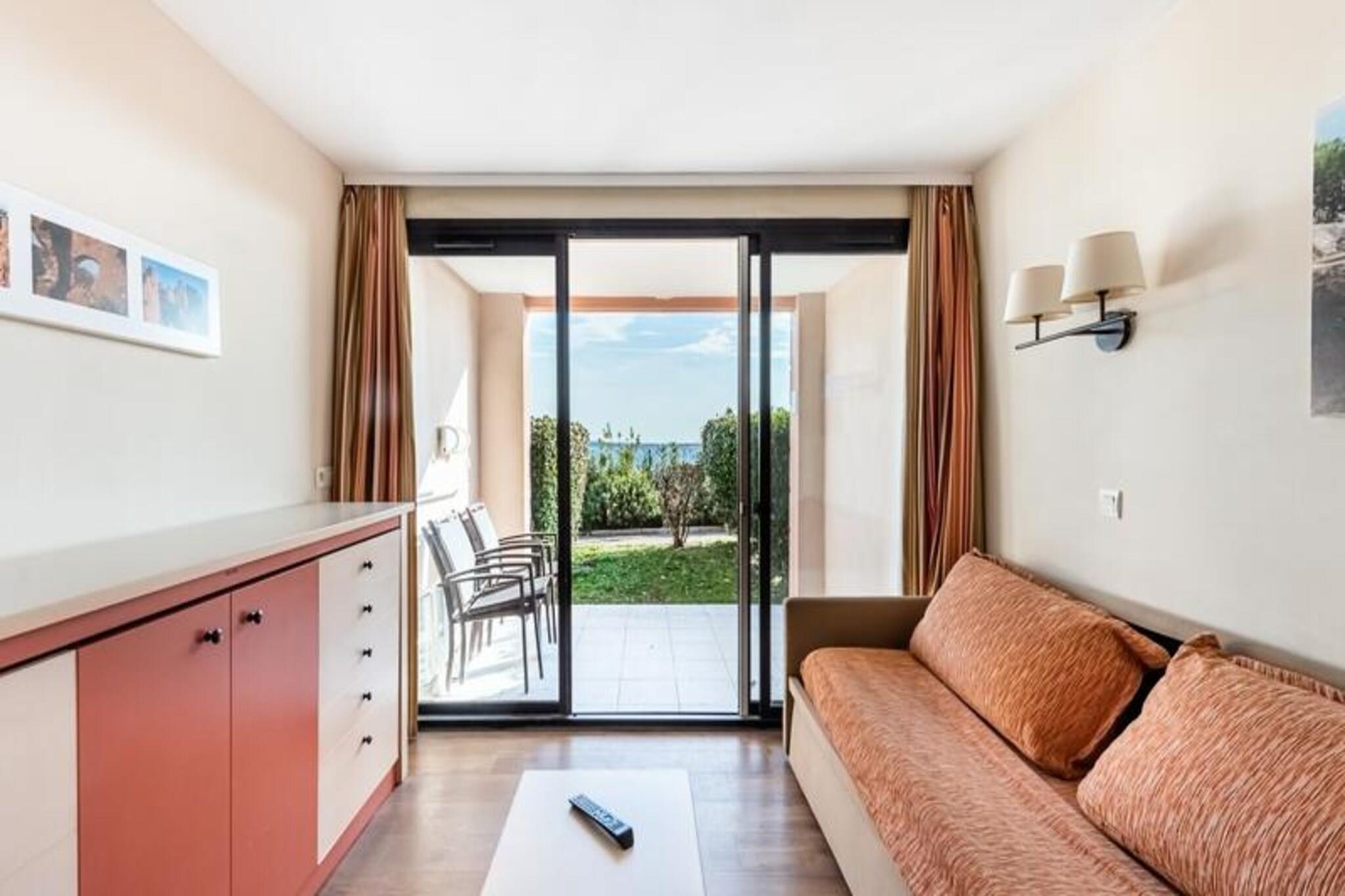 , Stue(dobbeltsovesofa, Fjernsyn, spisebord), Køkken(elkedel, brødrister, kaffemaskine, mikrobølgeovn, opvaskemaskine , køleskab, ), soveværelse(dobbeltseng), badeværelse(badekar, håndvask), Parkering, Parkering, Tennisbane, Ridning, Legeområde, Fjernsyn, terrasse, swimmingpool(deles med andre gæster), bordtennisbord, Håndklæder inkl.