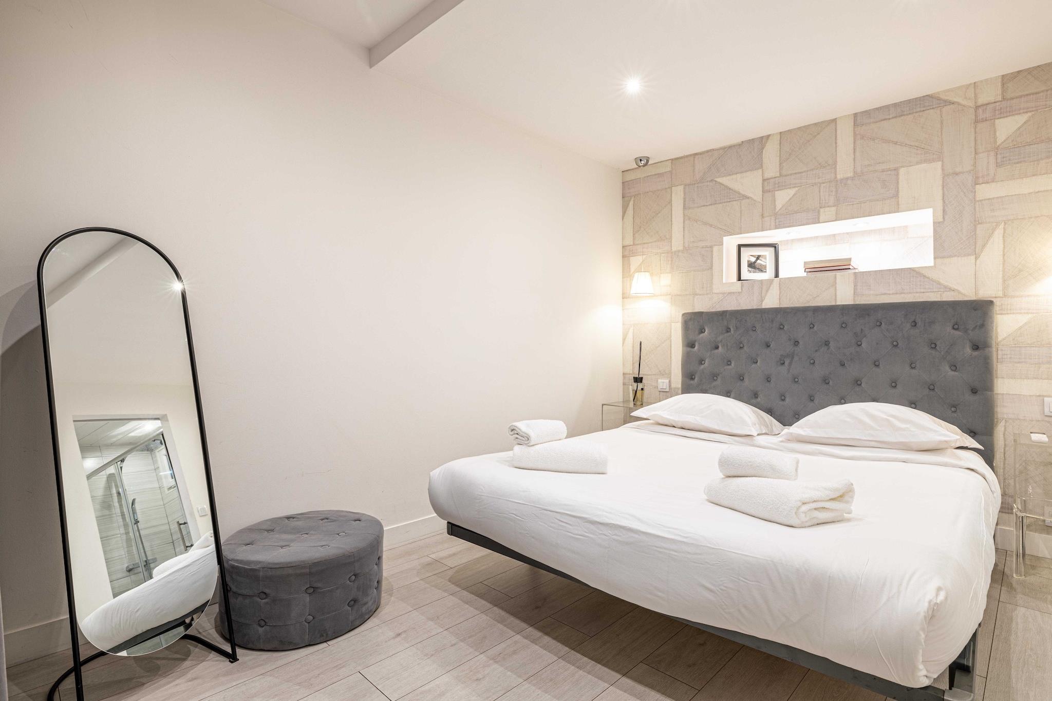 Beliggenhed i lejligheden 1 min. fra Croisette. Situationen idyllisk i nærheden af plage, du port og du Palais des festivals. Lejlighedens situation giver dig mulighed for at flytte hurtigt og nemt: MED FLY: Nice-Côte d"Azur Lufthavn (30 km) MED FLY: Cannes-Mandelieu Lufthavn MED TOG: Cannes SNCF station I BIL: motorvej A8 I BIL: National Highway 85 Under dit ophold i Cannes har du chancen for at udforske nogle vidunderlige nærliggende destinationer, der hver tilbyder en unik og mindeværdig oplevelse. Antibes og dens kappe: Blot et par kilometer fra Cannes byder den charmerende by Antibes dig velkommen. Udforsk dens rige historiske arv, herunder Picasso-museet i et fantastisk slot. Gå en tur gennem de brostensbelagte gader i det gamle Antibes, hvor det provencalske marked vil vække dine sanser med dets dufte og smag. Men glem ikke at vove dig ud til Cap d"Antibes, hvor kyststier tilbyder en betagende udsigt over Middelhavet. Les trayas og dens røde klipper: Vest for Cannes ligger naturparadiset Les Trayas, en slående kontrast til bylivet. Udforsk bjerg- og skovlandskaber, der blander sig harmonisk med Middelhavets kystlinje. Vandreentusiaster vil blive henrykte over stierne, der fører til de symbolske røde klipper, der tilbyder en betagende panoramaudsigt over havet. Grasse og dens parfume: Ikke langt fra Cannes ligger byen Grasse, verdensberømt som parfumens hovedstad. Du får mulighed for at besøge kendte parfumefabrikker som Fragonard, Galimard og Molinard, hvor du vil opdage parfumekunsten og endda få chancen for at skabe din egen duft. Gå en tur gennem Grasses middelaldergader, gennemsyret af historie og dufte.
