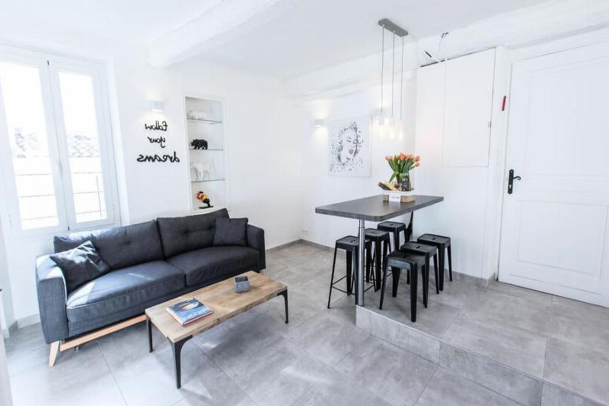 Denne rummelige, fuldt udstyrede 2-værelses lejlighed tilbyder den perfekte blanding af komfort og bekvemmelighed for både feriegæster og kongresdeltagere. Det er for nylig renoveret og ligger kun et minuts gang fra Palais des Festivals og den populære gågade Meynadier, hvor du finder en række butikker, et bageri og et supermarked, alt sammen inden for 2 minutters rækkevidde. Beliggende i en lille, rolig bygning i hjertet af Cannes centrum, er denne lejlighed et fredeligt oase med et smart og moderne design, med materialer af høj kvalitet, der skaber en indbydende atmosfære. Lejligheden er udstyret med moderne bekvemmeligheder, herunder aircondition og højhastigheds-Wi-Fi. Den store stue er udstyret med et nyt Samsung 4K LCD-tv med et bredt udvalg af kanaler, mens det åbne køkken kan prale af alle de nødvendige apparater, herunder køleskab, fryser, opvaskemaskine, ovn, mikroovn, kedel og brødrister. For ekstra komfort har opholdsområdet en sovesofa af fremragende kvalitet, der folder sig ud til en seng i fuld størrelse. Soveværelset, med en sydvendt altan, byder på en stor dobbeltseng og rigelig opbevaringsplads til dine ejendele. Badeværelset er udstyret med bruseniche, toilet og vaskemaskine for din bekvemmelighed. Denne lejligheds centrale beliggenhed placerer dig kun få minutter fra ikoniske attraktioner som Croisette, stranden og Palais des Festivals, hvilket gør den til en ideel base for at udforske Cannes. Uanset om du deltager i en konference eller blot nyder byens pulserende atmosfære, tilbyder denne lejlighed alt hvad du behøver for et behageligt ophold.