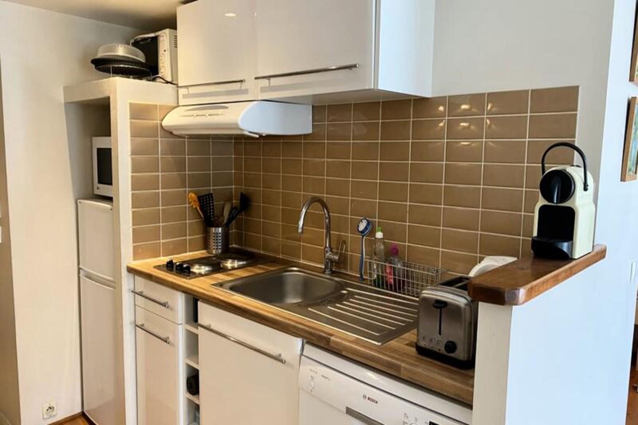 Ejendommen tilbyder sammen med en indbydende atmosfære et behageligt ophold for op til 4 gæster. Dette veludstyrede feriehus har en rummelig opholdsstue med sovesofa, som giver ekstra sovepladser. En charmerende balkon på 6 m² strækker sig fra stuen og giver gæsterne mulighed for at nyde udendørs afslapning. Lejligheden er beliggende i en sikker, bevogtet bolig, der sikrer privatliv og sikkerhed. Kæledyr er ikke tilladt. Dette feriehus er perfekt placeret i det eftertragtede Palm Beach-område, kun 200 meter fra stranden, hvilket gør det til et ideelt valg for strandelskere. Gæsterne kan nyde nem adgang til lokale attraktioner såsom strandene Bijou Plage og Moure Rouge, kun 3 minutters gang væk. Den berømte Rue d'Antibes, et shoppingcenter, ligger inden for 15 minutters gang, mens Palais des Festivals, der er kendt for at være vært for store begivenheder, ligger 25 minutter derfra til fods. Lejligheden indeholder et fuldt udstyret køkken designet til bekvemmelighed, med en Nespresso-maskine, filterkaffemaskine, mikroovn, opvaskemaskine og alle nødvendige redskaber til tilberedning af måltider. Derudover byder køkkenet på køleskab og fryser til længere ophold. For ekstra komfort sikrer aircondition et behageligt miljø, især i de varmere måneder. En vaskemaskine på badeværelset bidrager til den hjemlige oplevelse, og giver gæsterne mulighed for at klare vaskebehovet under deres ophold. Ejendommen tilbyder også ekstra rengøring efter anmodning, hvilket giver en mere personlig oplevelse.