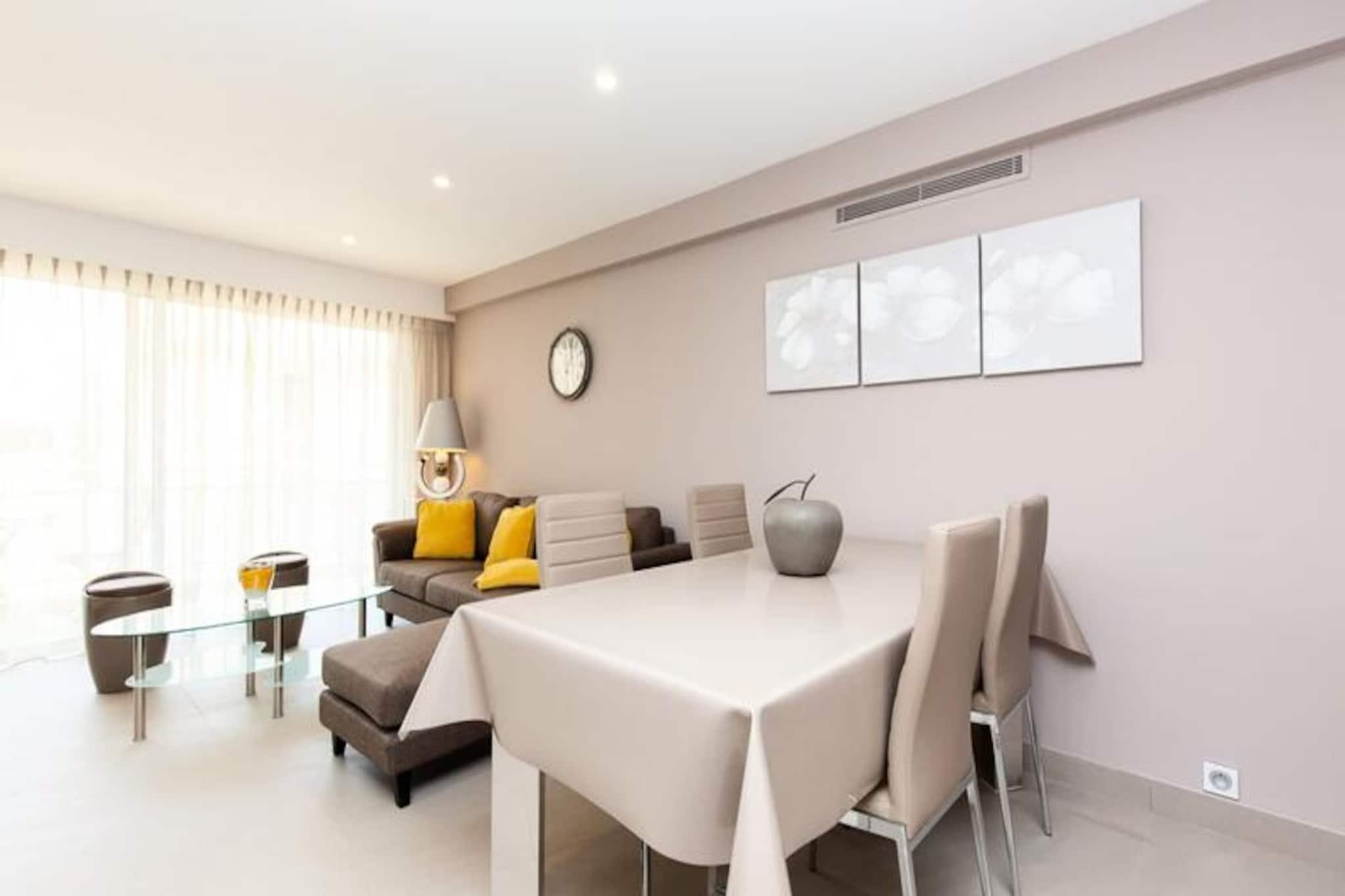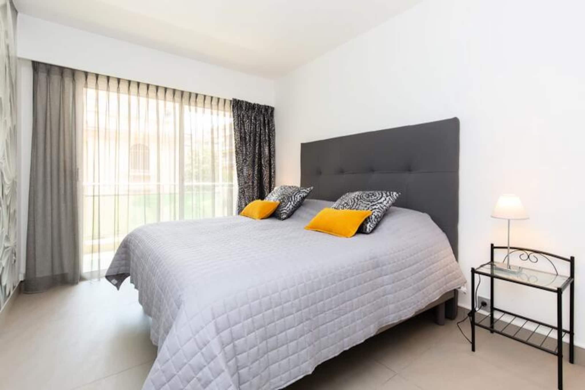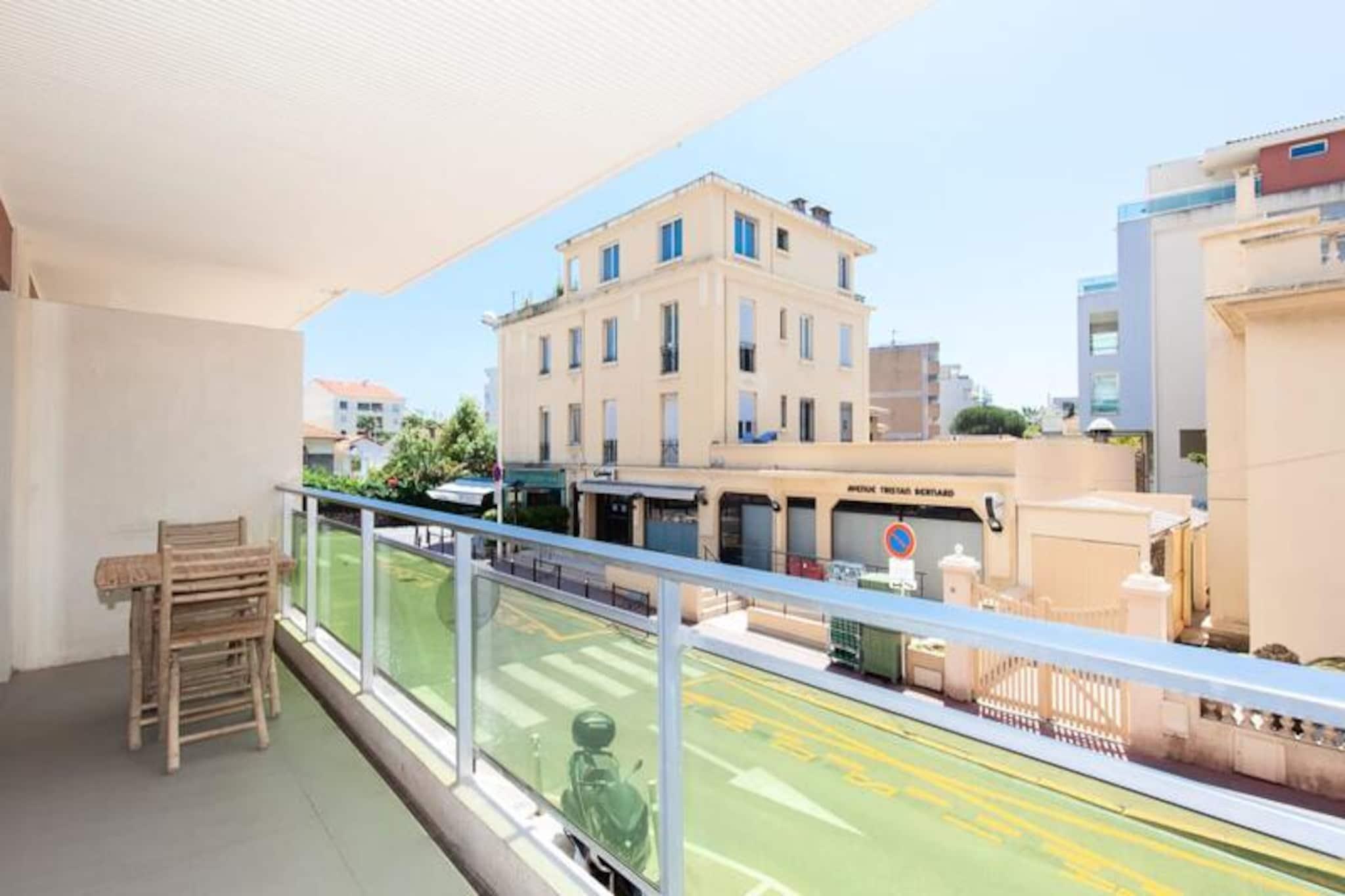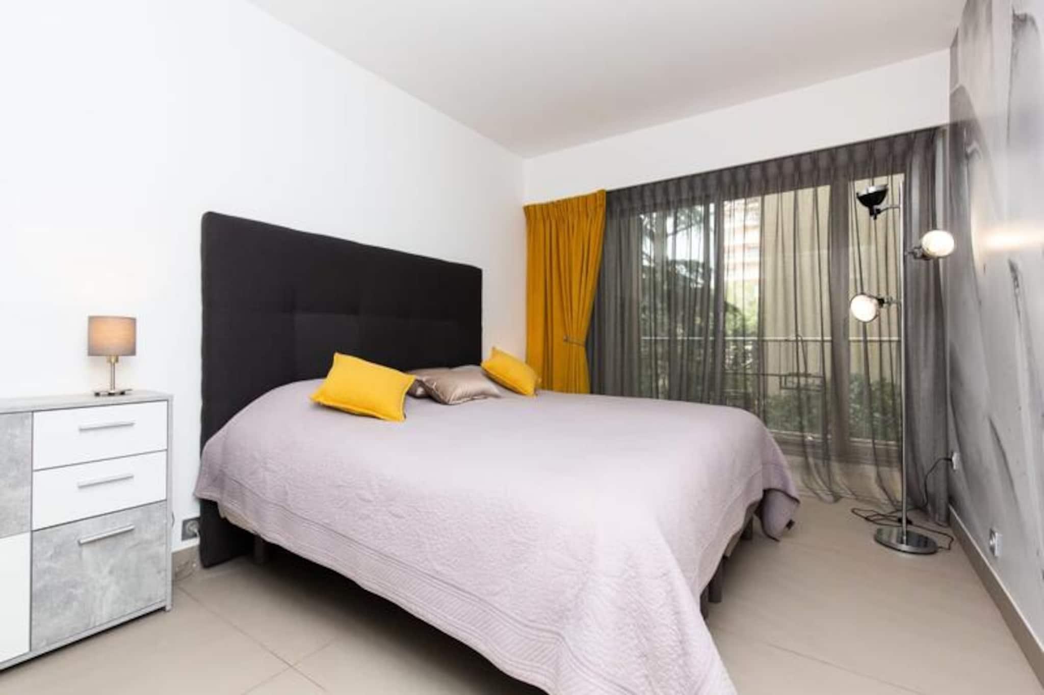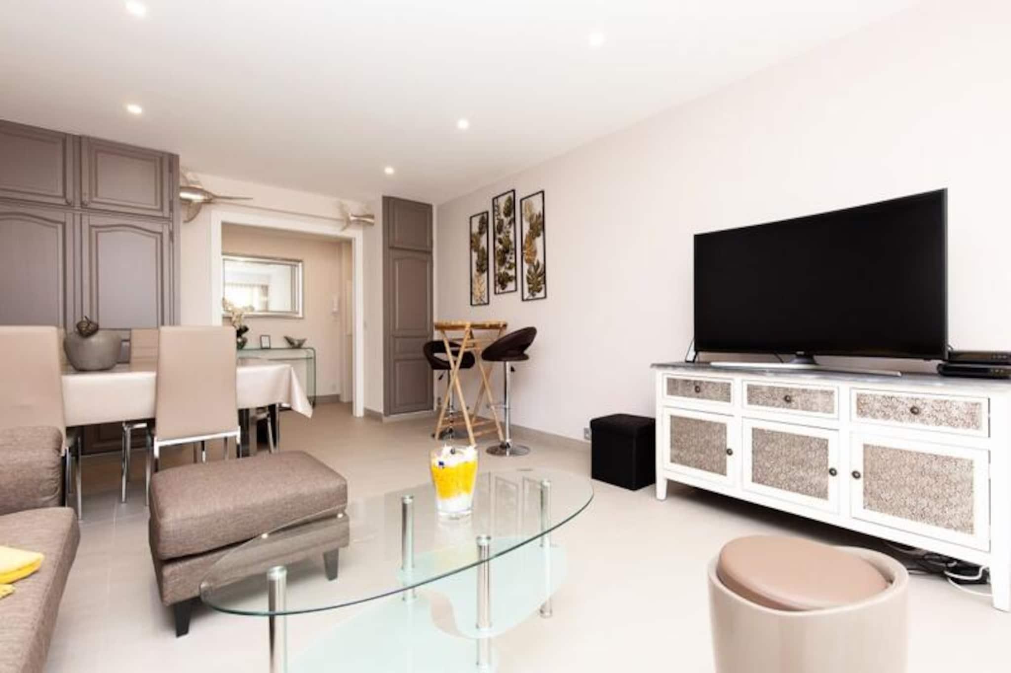 Træd ind i en verden af ??raffineret elegance og kystcharme med denne stilfulde 82 m² lejlighed i hjertet af Cannes. Perfekt beliggende nær Mouré-stranden og den ikoniske Croisette, tilbyder denne ejendom en problemfri blanding af komfort og bekvemmelighed, hvilket gør den til et ideelt tilflugtssted for rejsende, der søger både afslapning og udforskning. Forestil dig at nippe til din morgenkaffe på den private terrasse, mens middelhavsbrisen blidt hilser dig, eller slentre til nærliggende butikker og restauranter for at fordybe dig i den pulserende lokale kultur. Med sin førsteklasses beliggenhed præsenterer hver dag et nyt eventyr langs den franske riviera. \n\nLejligheden er designet med omhu og sans for detaljer og udstråler en varm og indbydende atmosfære, der føles som et sandt hjem væk fra hjemmet. Stuen, der er udsmykket med en hyggelig sofa og fladskærms-tv, åbner ud til en solbeskinnet terrasse, der er perfekt til udendørs morgenmad eller aftenaperitiffer. Det fuldt udstyrede køkken tilbyder alt, hvad du behøver for at tilberede lækre måltider, mens de to rummelige soveværelser, der begge har en kingsize-seng, sikrer afslappende nætter. Soveværelset har et ensuite brusebadeværelse og skrivebord med udsigt over en rolig have, mens det andet badeværelse tilbyder et luksuriøst badekar og bruseniche for ultimativ afslapning. \n\nUd over lejligheden venter Cannes' charme. En kort gåtur fører dig til Mouré-stranden, Croisetten og den fredfyldte Jardin des Hespérides, mens en hurtig køretur forbinder dig med Palais des Congrès og den travle Rue d'Antibes. Uanset om du udforsker Rivieraen med tog eller spiller et spil petanque på Place de l'Étang, placerer denne beliggenhed dig i hjertet af det hele. \n\nMed førsteklasses faciliteter som aircondition, termoruder og en sikker underjordisk garage er denne lejlighed mere end et sted at bo - det er en port til uforglemmelige minder i en af ??Frankrigs mest glamourøse destinationer.