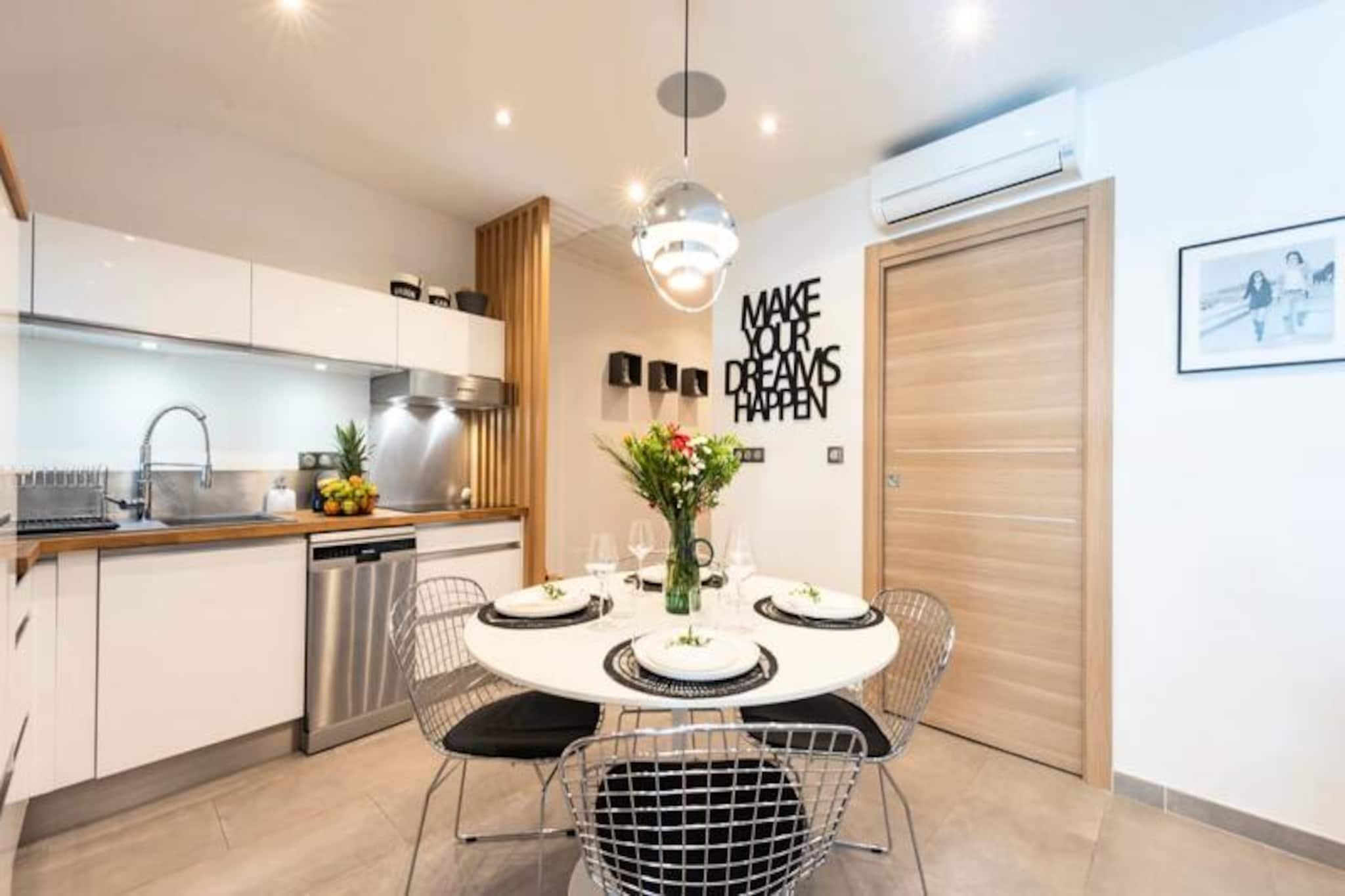 Kun få skridt fra Cannes' solkyssede strande tilbyder denne smukt renoverede lejlighed på 70 m² den perfekte blanding af moderne komfort og middelhavscharme. Beliggende ved foden af ??det historiske Le Suquet-distrikt inviterer denne ejendom dig til at fordybe dig i den pulserende kultur og tidløse elegance på den franske riviera. Uanset om du nipper til din kaffe på balkonen eller slentrer langs den ikoniske Croisetten, føles hvert øjeblik her som et postkort, der kommer til live. Indvendigt er lejligheden omhyggeligt designet til at tilbyde både stil og funktionalitet. Den rummelige stue med Smart TV og luksuriøse siddepladser er perfekt til at slappe af efter en dag med udforskning. Det åbne køkken er fuldt udstyret med moderne apparater, herunder en opvaskemaskine, hvilket gør det nemt at tilberede måltider med friske lokale ingredienser. Spiseområdet har komfortabel plads til fire personer, mens et dedikeret arbejdsområde sikrer, at du kan holde kontakten, hvis det er nødvendigt. Soveværelset har en luksuriøs queensize-seng og indbygget garderobe, mens det andet soveværelse tilbyder to hyggelige enkeltsenge, ideelt til familier eller venner, der rejser sammen. Et elegant brusebad med marmoreffekt tilføjer et strejf af elegance til dit ophold. Træd udenfor, og du vil befinder dig i hjertet af Cannes' mest eftertragtede kvarter. En gåtur på et minut bringer dig til Middelhavets gyldne sand og turkisblå vand, mens de charmerende gader i Le Suquet med tapasbarer og butikker ligger lige rundt om hjørnet. For dem, der søger afslapning, ligger Villa Belle Plage Spa lige ved siden af, og det verdensberømte Palais des Festivals ligger mindre end 12 minutters gang væk. Med sin uovertrufne beliggenhed, stilfulde interiør og nærhed til Cannes' største attraktioner er denne lejlighed din port til en uforglemmelig Riviera-flugt. Uanset om du er her for filmfestivalen, en romantisk weekend eller en familieferie, lover denne ejendom at gøre dit ophold virkelig specielt.