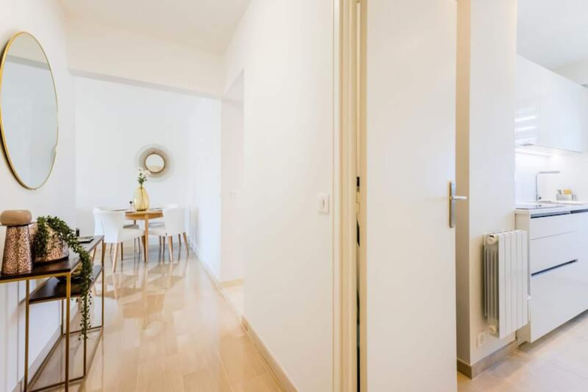 Nyd den gyldne glød fra den franske riviera i denne elegante og solrige lejlighed med et soveværelse, perfekt beliggende i hjertet af Cannes. Kun en kort gåtur fra den ikoniske Croisetten og dens uberørte strande tilbyder dette stilfulde tilflugtssted en harmonisk blanding af moderne komfort og middelhavscharm. Uanset om du er her for at udforske glamouren i Palais des Festivals eller blot slappe af ved havet, er denne lejlighed den ideelle base for din Côte d'Azur-ferie. Træd indenfor og oplev et smukt renoveret rum, omhyggeligt designet til at maksimere både stil og funktionalitet. Den lyse opholdsstue har en hyggelig lounge med et smart-tv og en sovesofa, perfekt til ekstra gæster. En spiseplads til fire åbner ud til en vestvendt terrasse, hvor du kan nippe til din morgenkaffe eller nyde en aftenaperitif midt i den blide kystbrise. Det fuldt udstyrede separate køkken, komplet med opvaskemaskine, inviterer dig til at tilberede lækre måltider med friske lokale ingredienser. Det rolige soveværelse kan prale af en blød queensize-seng og rigelig garderobeplads, mens det rummelige brusebad og separat toilet bidrager til lejlighedens bekvemmelighed. Beliggenheden er simpelthen uovertruffen. Inden for få minutter kan du fordybe dig i den pulserende energi på Rue d'Antibes, slentre langs den glamourøse Croisette eller besøge det verdensberømte Palais des Festivals. Blot to minutters gang bringer dig til en travl shoppinggade fyldt med supermarkeder, bagerier og hyggelige lokale butikker. Privat parkering og Wi-Fi sikrer et problemfrit ophold, mens concierge-servicen imødekommer alle dine behov. Uanset om du er her på forretningsrejse eller ferie, tilbyder denne lejlighed et fristed af komfort og elegance, der lover uforglemmelige øjeblikke i hjertet af Cannes.