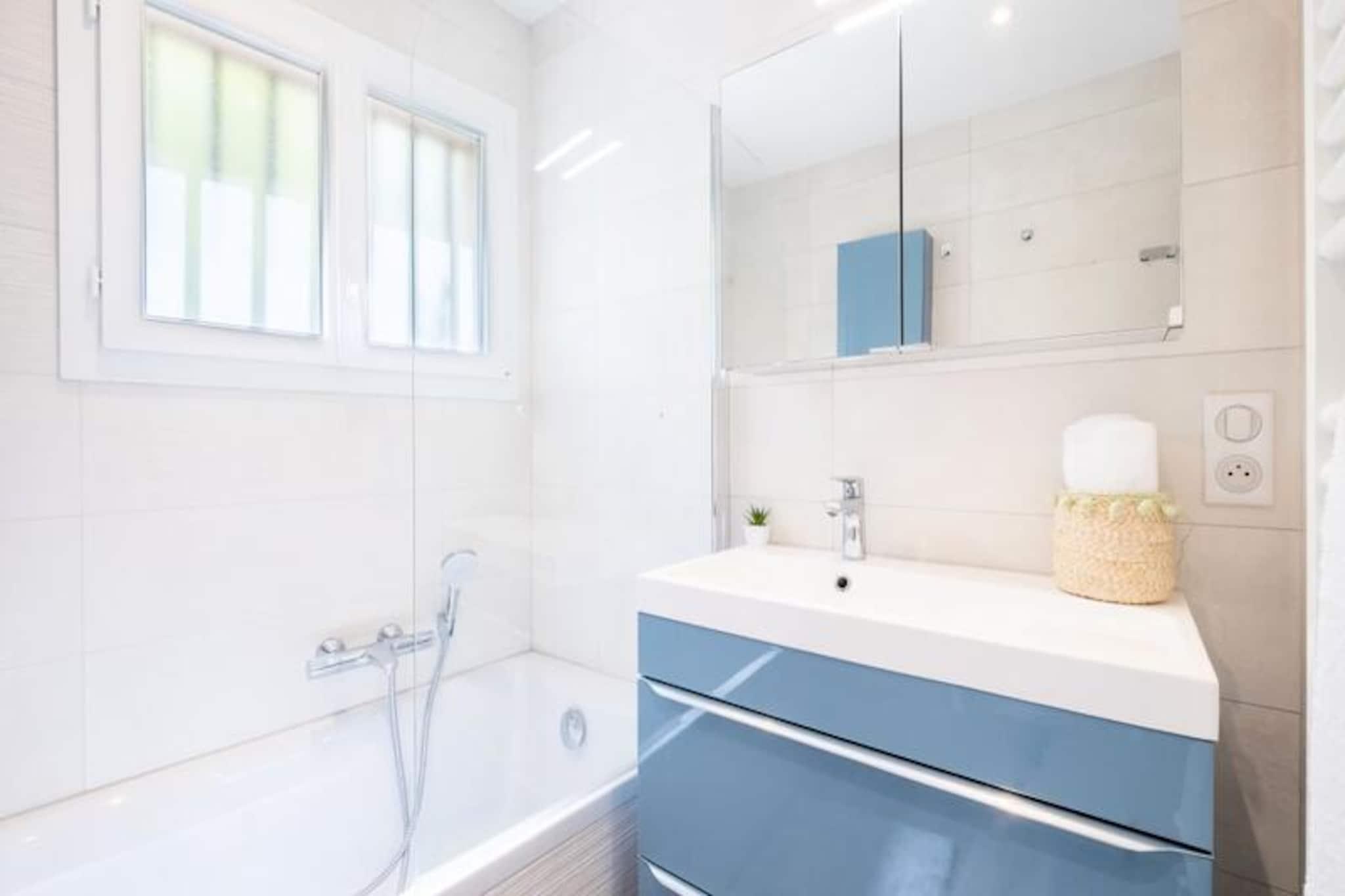 Badet i den franske rivieras gyldne lys tilbyder denne arkitektdesignede lejlighed en fredfyldt tilflugtssted kun få øjeblikke fra de ikoniske Croisette-strande i Cannes. Forestil dig at vågne op til palmernes blide raslen og træde ind i din private have, hvor middelhavsbrisen sætter den perfekte tone for din dag. Uanset om du nipper til kaffe på terrassen eller nyder en middag under stjernerne, lover dette rolige tilflugtssted et uforglemmeligt ophold. \n\nIndenfor kan lejligheden prale af 70 m² omhyggeligt udvalgt plads, der blander moderne elegance med varme, indbydende detaljer. Stuen åbner direkte ud til haven med en blød sofa og smart-tv til afslappede aftener. Det åbne køkken er fuldt udstyret, hvilket gør det nemt at tilberede måltider med friske lokale ingredienser. To smukt indrettede soveværelser tilbyder afslappende oaser: master-soveværelset med en queensize-seng og adgang til terrassen, og det andet med to enkeltsenge og udsigt over haven. Et elegant badeværelse med badekar og separat toilet fuldender planløsningen og sikrer komfort for alle gæster. Aircondition i soveværelserne og termoruder garanterer fredelige nætter. \n\nDenne lejlighed ligger i en sikker og eksklusiv bolig, kun 4 minutters gang fra Croisette-strandene og er omgivet af bekvemme faciliteter, herunder bagerier, delikatesseforretninger og supermarkeder. Besøg Cannes' glamourøse bymidte, charmen i Juan-les-Pins eller parfumerierne i Grasse. Med concierge-service til din rådighed er der sørget for alle detaljer under dit ophold. \n\nUanset om du søger afslapning, eventyr eller en smag af Riviera-luksus, er denne lejlighed din port til det bedste af Côte d'Azur.