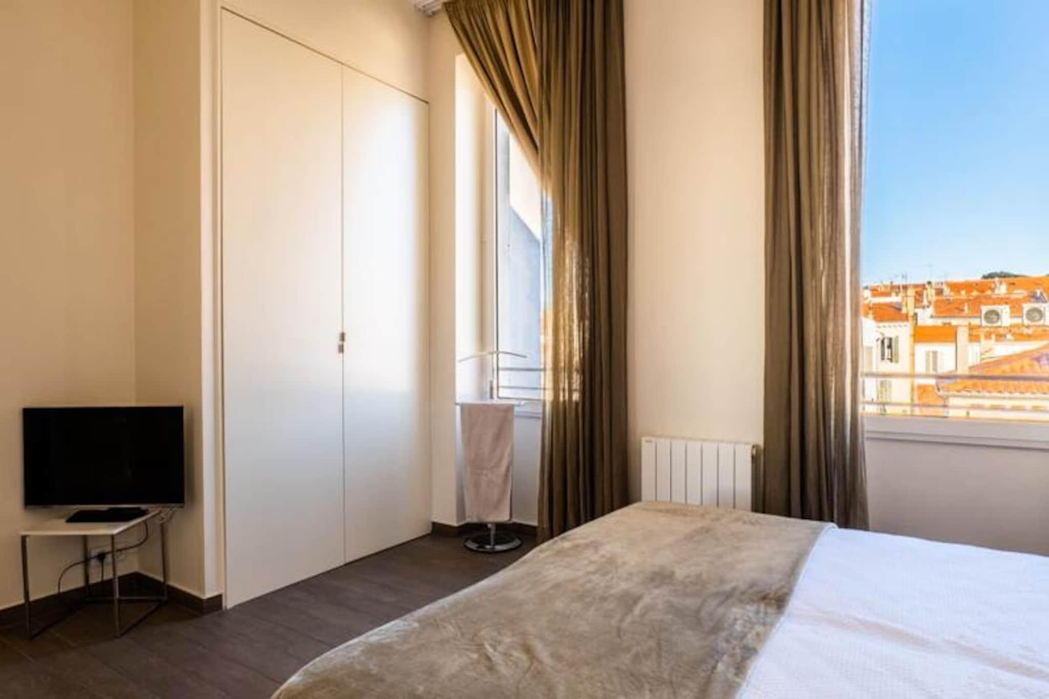 Fordyb dig i Cannes' pulserende energi med et ophold i denne elegante lejlighed på 80 m², perfekt beliggende på en af ??byens mest ikoniske gader. Kun få skridt fra den verdensberømte Croisetten, Palais des Festivals og et utal af smarte barer og restauranter tilbyder denne ejendom en uovertruffen beliggenhed for dem, der søger den ultimative Côte d'Azur-oplevelse. Uanset om du er her for filmfestivalens glamour eller en afslappende ferie ved havet, placerer denne lejlighed dig i hjertet af det hele. Indenfor finder du en rummelig og stilfuldt designet opholdsstue med en komfortabel sofa, lænestol og et spisebord til seks personer. Det åbne køkken er udstyret med alt det nødvendige til at tilberede måltider, men bemærk venligst, at der ikke er nogen ovn. To soveværelser med eget badeværelse tilbyder rolige tilflugtssteder, begge med kingsize-senge, rigelig garderobeplads og moderne brusebadeværelser. Vendbar aircondition sikrer din komfort året rundt, mens termoruder garanterer fredelige nætter på trods af de livlige omgivelser. To små altaner fra stuen inviterer dig til at nyde den travle atmosfære på Rue d'Antibes med en morgenkaffe eller en aftenaperitif. Gå udenfor, og du er kun få minutter fra Cannes' største attraktioner. Gå en tur langs Croisetten, udforsk det charmerende Suquet-distrikt, eller forkæl dig selv med luksusshopping på Rue d'Antibes. Cannes togstation ligger kun 5 minutters gang derfra og tilbyder nem adgang til regionens andre perler, fra Nice til Monaco. For dem, der ankommer i bil, tilbyder betalt gadeparkering og en nærliggende garage bekvemme muligheder. Med sin førsteklasses beliggenhed, moderne faciliteter og gennemtænkte detaljer som inkluderet sengelinned og concierge-service er denne lejlighed den perfekte base for at opdage Cannes' magi. Uanset om du er her på forretningsrejse eller ferie, lover denne ejendom et uforglemmeligt ophold på den franske riviera.