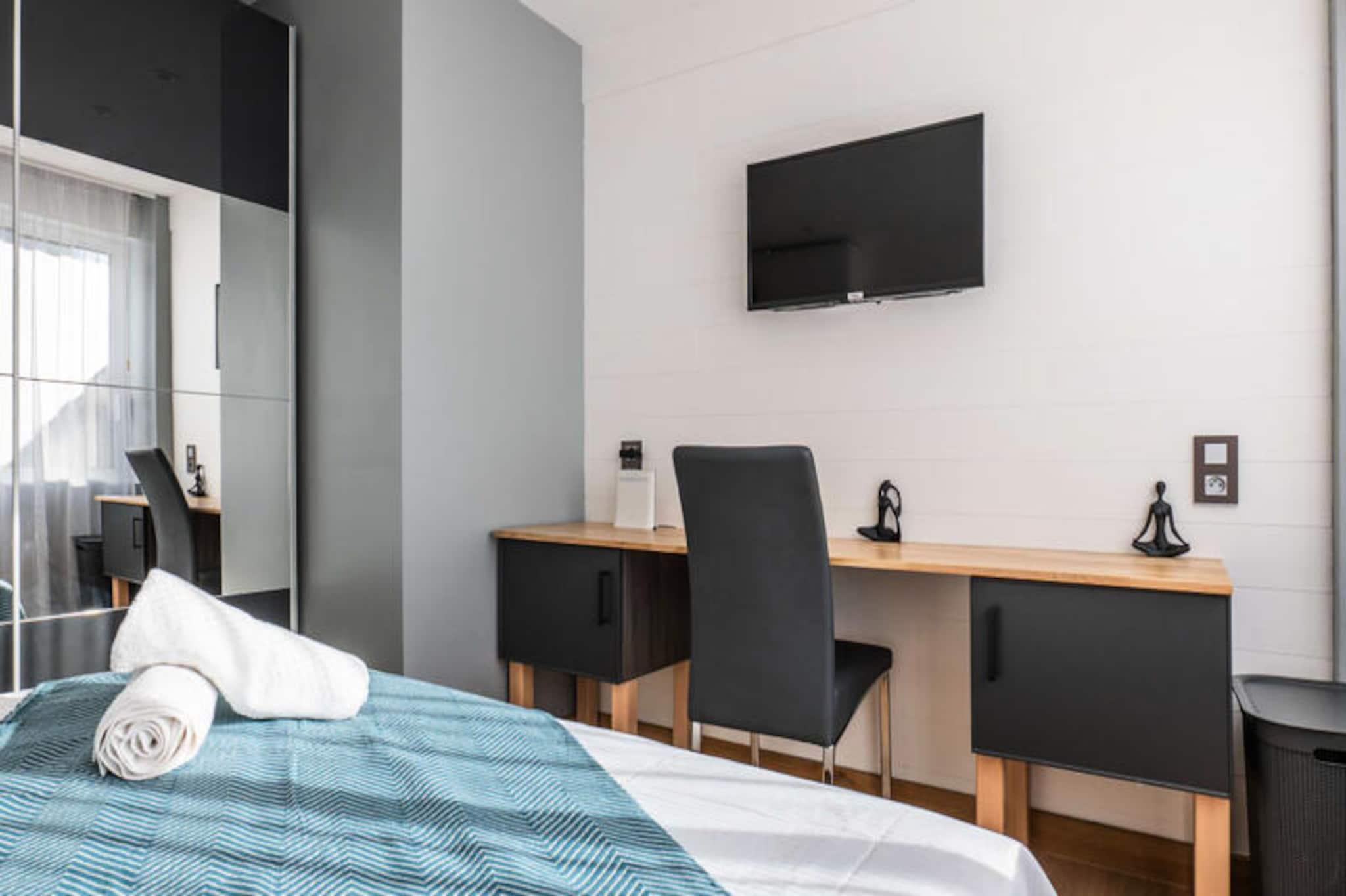 Denne lejlighed på 52 m² i Cannes, badet i sollys og tilbyder et roligt tilflugtssted, er det perfekte tilflugtssted for dem, der søger både komfort og bekvemmelighed. Gemt væk i en fredelig og sikker bolig, er dette charmerende sted designet til op til fire gæster og kan prale af en privat terrasse, hvor du kan slappe af og nyde middelhavsbrisen. Uanset om du nipper til din morgenkaffe eller spiser udendørs under den elektriske markise, er terrassen en dejlig forlængelse af dit opholdsrum. Indenfor er lejligheden en oase af moderne komfort. Den lyse og luftige opholdsstue har et fuldt udstyret åbent køkken med ovn og opvaskemaskine, spiseplads og en hyggelig stue med et Smart TV. To elegante soveværelser, hver med en queensize-seng, indbyggede skabe og fladskærms-tv, sikrer afslappende nætter. Det ene soveværelse har endda et skrivebordsområde, perfekt til fjernarbejde eller stille øjeblikke med refleksion. Et elegant brusebad med toilet fuldender planløsningen og tilbyder alt, hvad du behøver for et problemfrit ophold. Beliggenheden er lige så imponerende. Kun en kort gåtur væk finder du et supermarked til dine fornødenheder, sandstrandene i Midi og den historiske charme i Le Suquet, hvor brostensbelagte gader fører til en betagende udsigt over Cannes-bugten. For dem, der deltager i arrangementer, ligger Palais des Festivals kun 15 minutters gang væk. Med hurtig adgang til motorvejen har det aldrig været nemmere at udforske den franske riviera. Uanset om du er her for en romantisk ferie, en familieferie eller en arbejdsrejse, kombinerer denne lejlighed ro, moderne bekvemmeligheder og nærhed til Cannes' pulserende attraktioner, hvilket gør den til et ideelt valg til dit næste besøg.