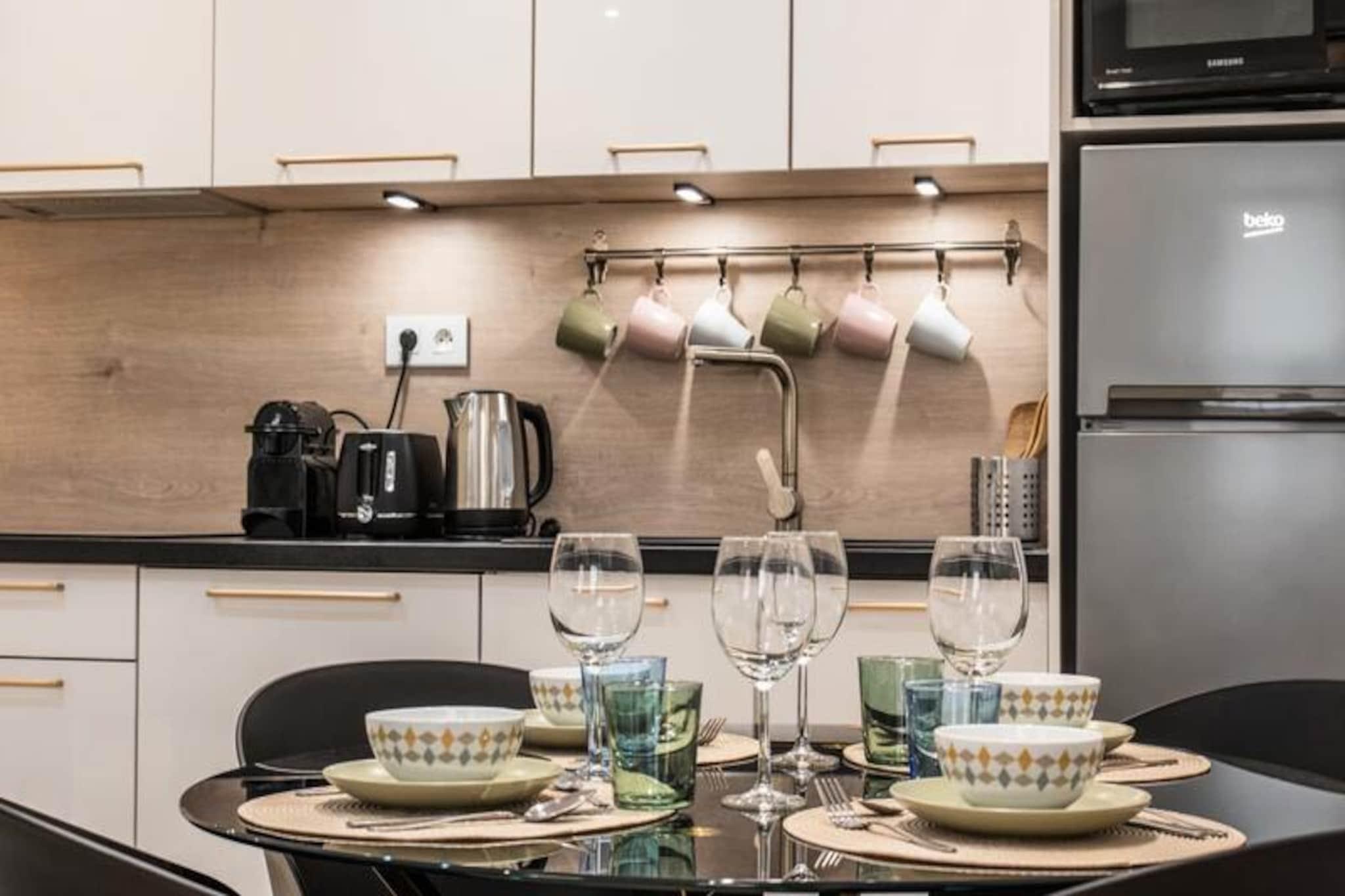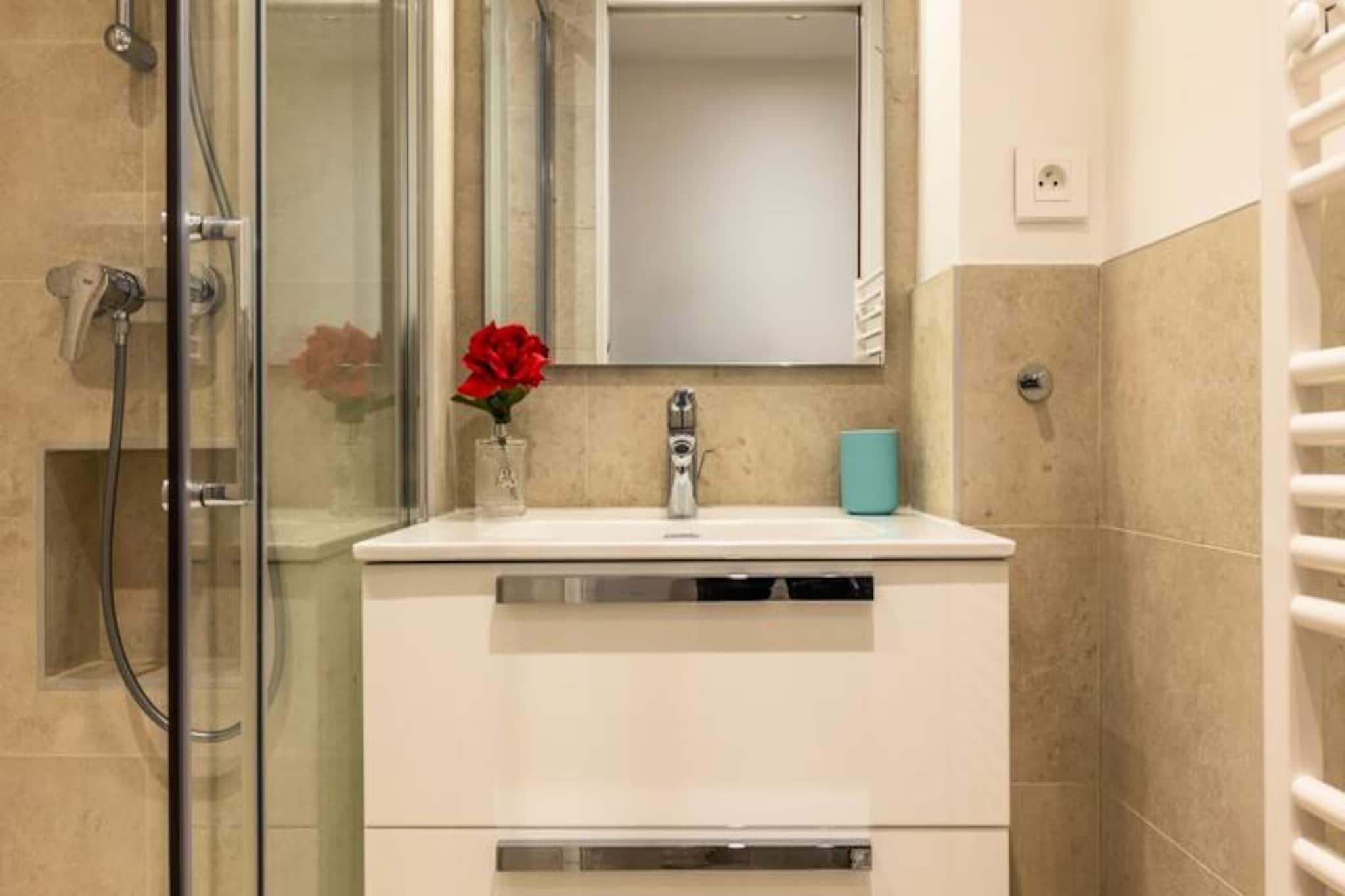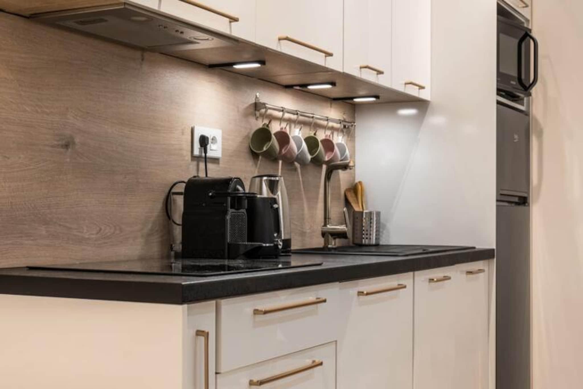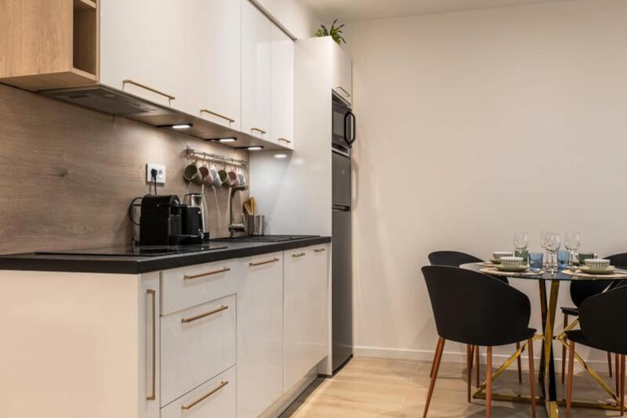 Træd ind i Cannes' pulserende hjerte og oplev denne smukt renoverede lejlighed med 2 soveværelser, kun få øjeblikke fra det ikoniske Palais des Festivals. Perfekt beliggende på en livlig gågade tilbyder dette stilfulde tilflugtssted den ultimative blanding af bekvemmelighed og moderne luksus, hvilket gør det ideelt for både forretningsrejsende og feriegæster, der søger en solrig ferie. Med Croisetten kun to minutters gang væk, er du fordybet i glamouren og charmen ved denne verdensberømte destination. \n\nIndenfor kan lejligheden prale af et elegant, moderne design med eksklusive materialer og gennemtænkte detaljer overalt. Den rummelige opholdsstue har et fuldt udstyret køkken med opvaskemaskine og vaskemaskine samt en hyggelig spiseplads til fire personer. Slap af i den komfortable lounge med et smart-tv, eller træk dig tilbage til soveværelsessuiten, som tilbyder en kingsize-seng, privat brusebad og toilet. Det andet soveværelse, lige så indbydende, har en Tempur queensize-seng og eget tilstødende brusebad. Tredobbelte ruder sikrer ro, mens Daikin reversibel aircondition giver personlig komfort i alle rum. \n\nTræd udenfor, og du er omgivet af Cannes' fineste tilbud. Palais des Festivals og Croisetten ligger kun 300 meter væk, mens Rue d'Antibes, et shoppingparadis, kun få skridt fra din dør. Forkæl dig selv med udsøgt mad på nærliggende restauranter som Zoa Bar og L'Epicurieux, eller udforsk de lokale butikker og det pulserende natteliv. Med Cannes togstation kun tre minutters gang og Nice Côte d'Azur Lufthavn kun en kort køretur væk, er tilgængeligheden ubesværet. \n\nUanset om du er her på forretningsrejse eller ferie, lover denne lejlighed et problemfrit og luksuriøst ophold i hjertet af Cannes. Lad byens charme fange dig, mens du nyder den perfekte blanding af stil, komfort og beliggenhed.