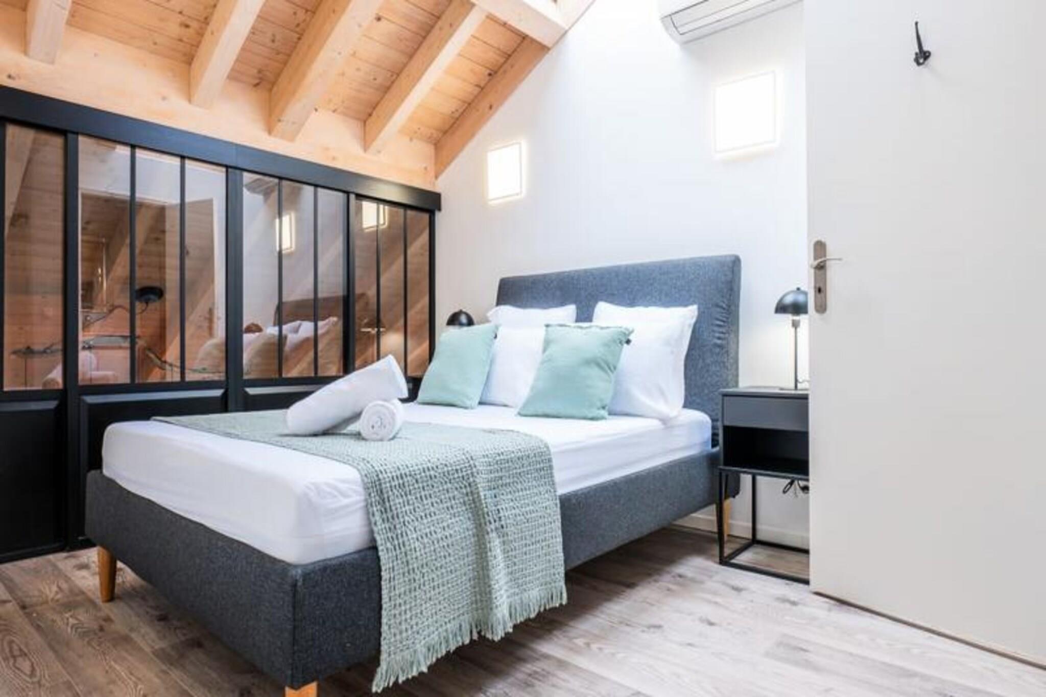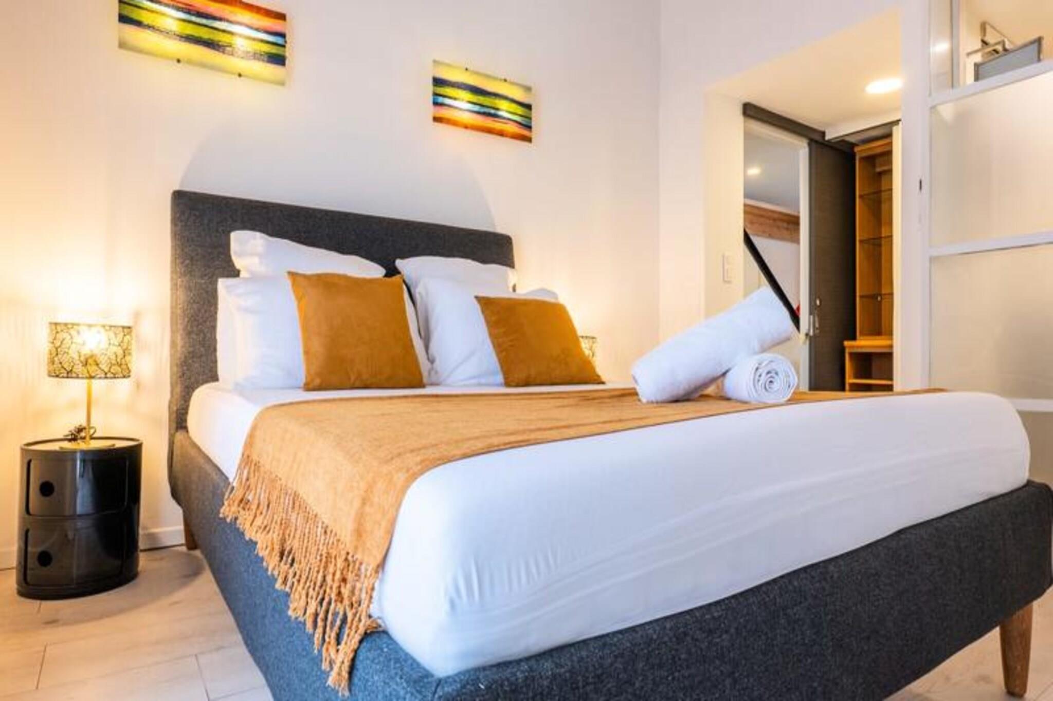I hjertet af det pulserende Cannes tilbyder denne smukt renoverede duplex på 105 m² en perfekt blanding af moderne elegance og urban bekvemmelighed. Kun få skridt fra det travle Gambetta-marked, den ikoniske Croisetten og en række charmerende restauranter, fordyber denne ejendom dig i den livlige atmosfære på den franske riviera. Det industrielle-chic design kombineret med gennemtænkte detaljer skaber et varmt og indbydende rum for op til otte gæster at slappe af og koble fra. Lejligheden strækker sig over to etager med fire stilfulde soveværelser og tre moderne badeværelser udstyret med håndklædetørrere for ekstra komfort. Den rummelige opholdsstue, badet i naturligt lys, inkluderer en hyggelig stue med et Smart TV og et åbent køkken, der er fuldt udstyret til kulinariske eventyr. To soveværelser med eget badeværelse og dobbeltsenge er placeret på hovedplan, mens øverste etage tilbyder to ekstra soveværelser, der deler et elegant brusebad. Aircondition i alle værelser sikrer et behageligt ophold året rundt. Gå udenfor, og du vil befinder dig kun 5 minutters gang fra togstationen, hvilket gør det nemt at udforske regionen. Croisetten med sine luksuriøse butikker og palmeomkransede promenade ligger kun få minutter væk, mens Palais des Festivals og havnen i Cannes ligger inden for kort gåafstand. Den nærliggende Rue d'Antibes inviterer dig til at nyde en dag med shopping hos populære og prestigefyldte mærker. Uanset om du er her for glamouren ved Cannes Film Festival eller en afslappende ferie ved Middelhavet, tilbyder denne duplex en uovertruffen beliggenhed og alle hjemmets bekvemmeligheder. Fra dens elegante interiør til dens nærhed til Cannes' mest ikoniske attraktioner lover denne ejendom et uforglemmeligt ophold på Côte d'Azur.