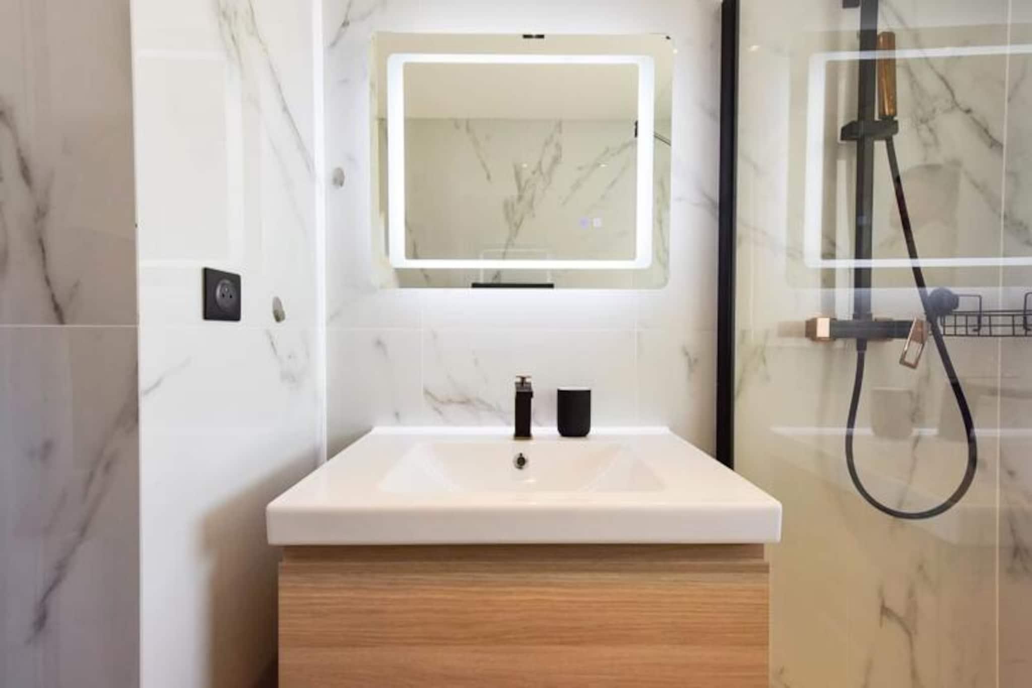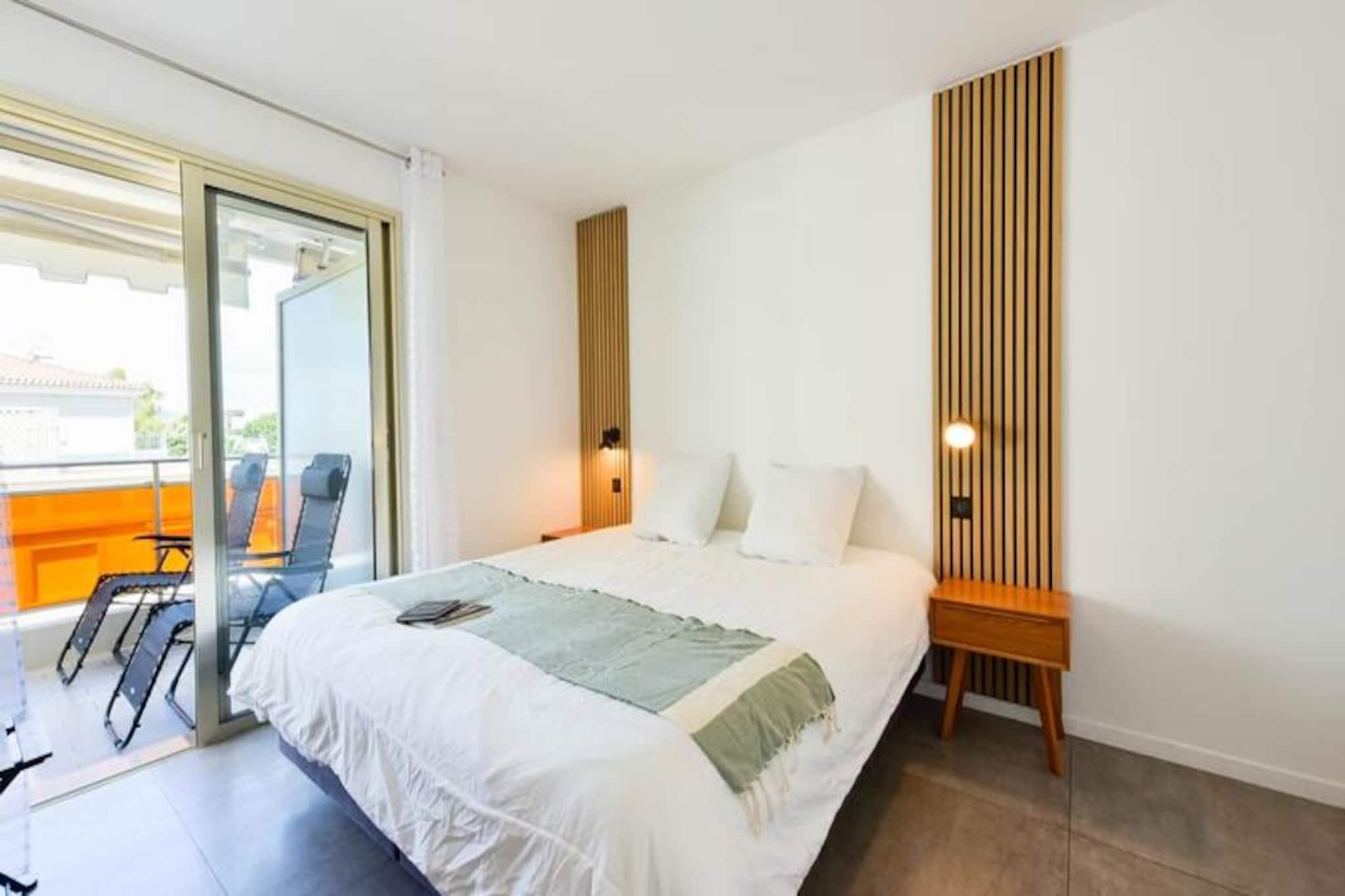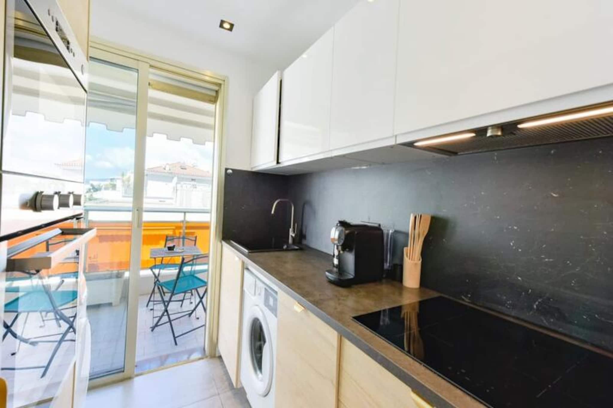 I hjertet af det prestigefyldte Basse Californie-kvarter tilbyder denne elegante lejlighed på 46 m² et roligt tilflugtssted kun få øjeblikke fra Cannes' ikoniske strande og pulserende byliv. Forestil dig at nippe til din morgenkaffe på den rummelige terrasse, omgivet af middelhavscharme, inden du slentrer til den berømte Croisetten eller nyder det gyldne sand på Mouré Rouge-stranden. Uanset om du søger afslapning eller eventyr, balancerer denne ejendom perfekt ro med tilgængelighed. \n\nTræd indenfor for at opdage et gennemtænkt design med en lys stue med to komfortable sofaer, et smart-tv og en spiseplads, der inviterer dig til at slappe af efter en dag med at udforske Cannes. Det separate køkken er fuldt udstyret med moderne bekvemmeligheder som vaskemaskine og tørretumbler, hvilket sikrer et problemfrit ophold. Det hyggelige soveværelse kan prale af en queensize-seng, et påklædningsværelse og direkte adgang til terrassen, hvilket skaber et privat fristed for afslappende nætter. Badeværelset har bruseniche og håndvask, suppleret med et separat toilet for ekstra bekvemmelighed. Termoruder og aircondition sikrer komfort året rundt. \n\nDenne lejlighed ligger kun 7 minutters gang fra Croisetten og Mouré Rouge-stranden, og du er i nærheden af ??Cannes' fineste attraktioner. Palais des Festivals, kendt for sin glamour, ligger kun en kort køretur eller afslappet gåtur væk. Nærliggende restauranter, butikker og faciliteter gør dagligdagen ubesværet, mens Cannes togstation og Nice Côte d'Azur Lufthavn tilbyder fremragende forbindelser til at udforske den franske riviera. \n\nUanset om du er her for filmfestivalen, en romantisk weekend eller en solrig ferie, lover denne ejendom en uforglemmelig oplevelse i en af ??Frankrigs mest berømte destinationer.