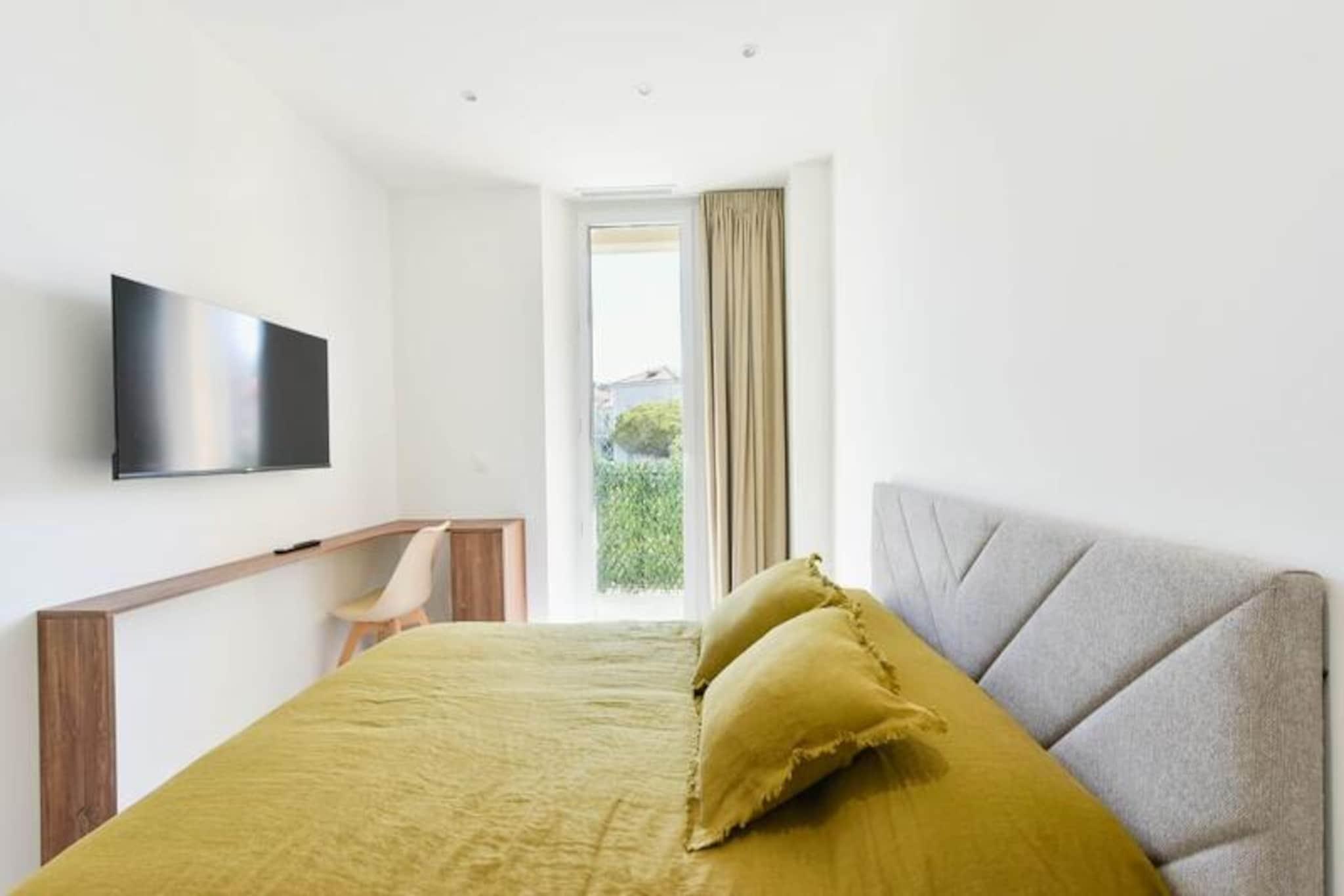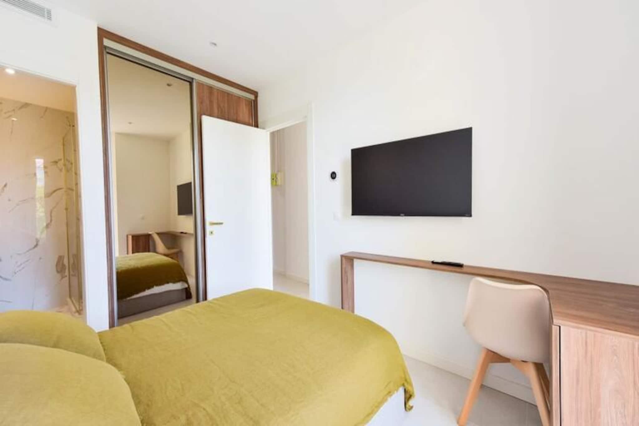 Træd ind i en verden af ??raffineret elegance og kystcharme med denne luksuriøse lejlighed på 128 m² i hjertet af Cannes. Kun 100 meter fra den ikoniske Croisette og dens gyldne strande tilbyder denne ejendom en rolig tilflugtssted, samtidig med at du holder dig tæt på byens pulserende puls. Forestil dig at vågne op til den blide middelhavsbrise, nippe til kaffe på din private balkon og slentre til det azurblå vand på få minutter. Uanset om du er her for fritid eller forretning, lover denne lejlighed et uforglemmeligt ophold i en af ??Frankrigs mest glamourøse destinationer. \n\nLejligheden er designet med både komfort og stil i tankerne og har tre soveværelser med eget badeværelse, hvert med eget brusebad, smart-tv og rigelig opbevaringsplads. Master-suiten kan prale af en kingsize-seng, et påklædningsværelse og et skrivebordsområde, perfekt til at slappe af eller indhente arbejdet. Den rummelige stue/spisestue er udsmykket med trægulve og loftslister, der problemfrit blander autentisk charme med moderne elegance. Et fuldt udstyret åbent køkken inviterer dig til at tilberede måltider med lethed, mens termoruder sikrer fredelige nætter. Med aircondition overalt og materialer af høj kvalitet, der er brugt i hver eneste detalje, er denne bolig en sand oase af luksus.\n\nLejligheden ligger for foden af ??Avenue de Madrid og tilbyder nem adgang til lokale faciliteter såsom bagerier, købmandsforretninger og caféer, alt sammen inden for gåafstand. Palais des Festivals ligger mindre end femten minutter væk, hvilket gør den ideel for dem, der deltager i arrangementer eller udforsker Cannes' kulturelle højdepunkter. Det historiske Suquet-distrikt med sine snoede gader og panoramaudsigt ligger kun en kort gåtur væk. For dem, der søger eventyr, ligger Nice Côte d'Azur Lufthavn kun 30 minutter i bil, og Cannes togstation er let tilgængelig.\n\nVælg denne lejlighed på grund af dens uovertrufne beliggenhed, udsøgte design og nærhed til alt, hvad Cannes har at byde på. Uanset om du er her for at nyde solen, nyde udsøgte restauranter eller deltage i begivenheder i verdensklasse, er denne ejendom din port til det bedste af den franske riviera.