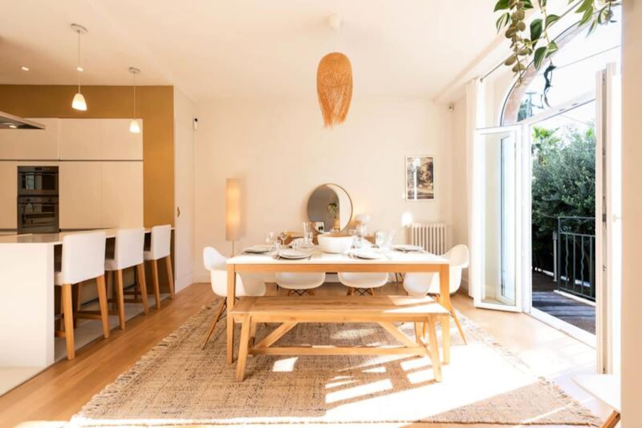I en rolig blind vej, kun få minutter fra Cannes' pulserende centrum, tilbyder denne fantastiske villa en oase af ro og elegance. Omgivet af frodig middelhavsgrønt, inviterer ejendommen dig til at slappe af i sin fredfyldte have, komplet med en glitrende swimmingpool og et rummeligt udendørs spiseområde udstyret med gasgrill. Villaens lyse balinesisk-inspirerede indretning skaber en harmonisk blanding af eksotisk charme og moderne komfort, hvilket gør den til det perfekte tilflugtssted for familier eller grupper, der søger en luksuriøs ferie på den franske riviera. \n\nDenne villa strækker sig over 180 m² og kan prale af fire smukt indrettede soveværelser, herunder en master suite med eget badeværelse med bruser. Det åbne køkken flyder problemfrit ind i spise- og opholdsstuen og skaber et indbydende rum til fælles måltider og afslapning. Yderligere faciliteter inkluderer et spille-/tv-rum, aircondition i alle soveværelser og en garage for ekstra bekvemmelighed. Den nederste etage tilbyder ekstra privatliv med et soveværelse med queensize-seng, et legerum og et vaskerum udstyret med vaskemaskine og tørretumbler. Wi-Fi er inkluderet, hvilket sikrer, at du forbliver forbundet under hele dit ophold.\n\nVillaen har en ideel beliggenhed, kun en kort gåtur fra Cannes' ikoniske attraktioner. Udforsk den historiske charme i Le Suquet, forkæl dig selv med luksusshopping langs Boulevard Carnot, eller slap af på sandstrandene ved La Croisette. For en smagsprøve på den lokale kultur er Forville-markedet og færgeture til Lérins-øerne inden for rækkevidde. Cannes togstation ligger blot 15 minutters gang derfra, mens Nice Lufthavn kun ligger 30 minutters kørsel derfra.\n\nUanset om du er her for filmfestivalen, en familieferie eller en romantisk ferie, tilbyder denne villa den perfekte blanding af privatliv, komfort og nærhed til Cannes' mest elskede vartegn. Lad concierge-servicen forbedre din oplevelse med skræddersyede anbefalinger og eksklusive bookinger, der sikrer, at hvert øjeblik af dit ophold bliver uforglemmeligt.