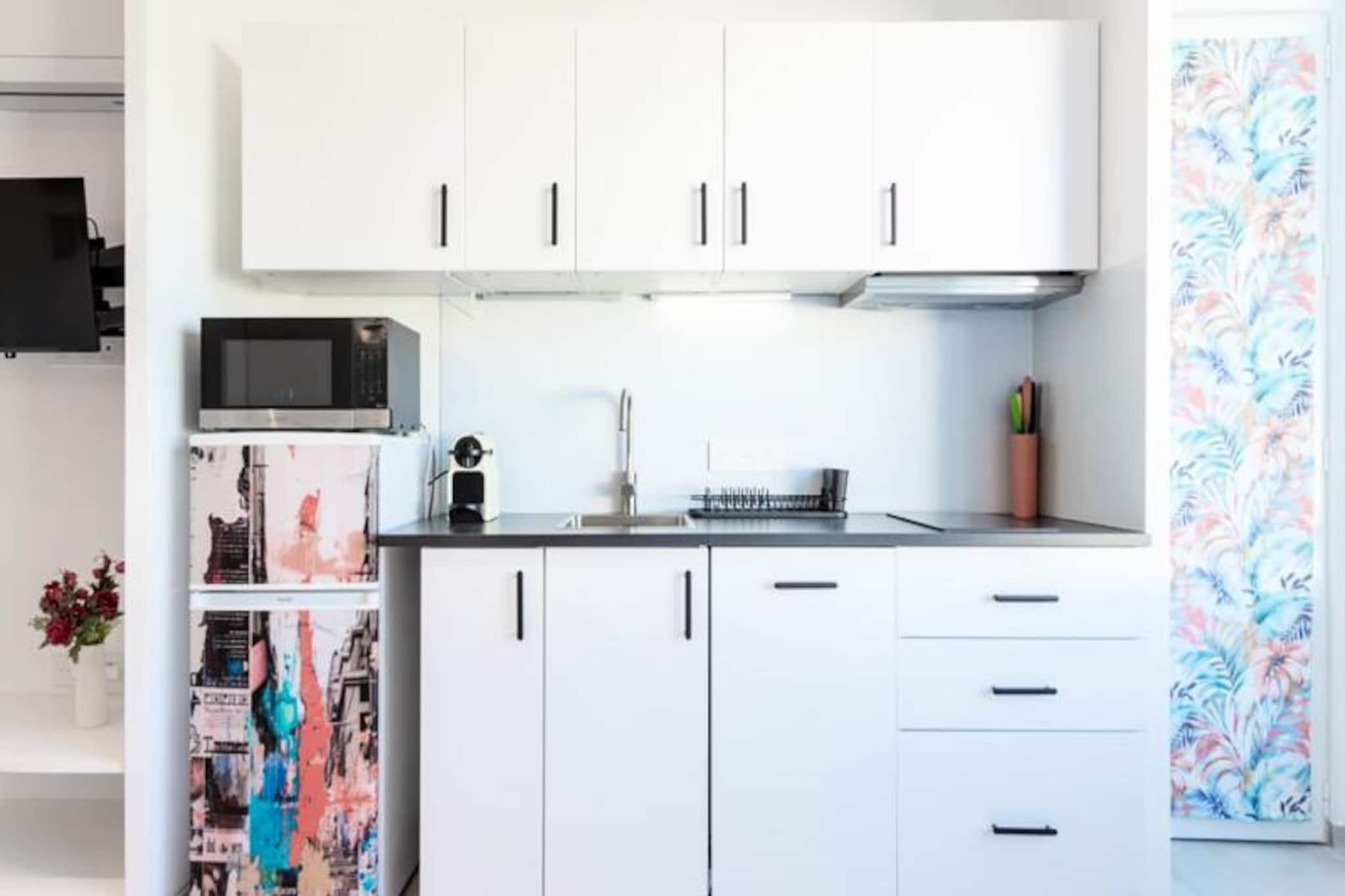 I hjertet af Cannes, hvor elegance møder middelhavscharme, tilbyder denne indbydende lejlighed et roligt tilflugtssted kun få minutter fra byens pulserende attraktioner. Forestil dig at starte din dag med en afslappet gåtur til Rue d'Antibes, forkæle dig selv med butikker eller nyde en kop kaffe på en elegant café, før du tager til de gyldne strande, der kun ligger en kort gåtur væk. Uanset om du er her for afslapning eller udforskning, sikrer denne centrale beliggenhed, at du er perfekt placeret til at opleve det bedste af Cannes. \n\nTræd indenfor og oplev et gennemtænkt designet rum, der blander komfort med moderne bekvemmeligheder. Den vestvendte lejlighed er badet i naturligt lys, hvilket skaber en varm og imødekommende atmosfære. Stuen har en hyggelig sovesofa, smart-tv og spiseplads, mens det åbne køkken er udstyret med fornødenheder som komfur, køleskab, mikrobølgeovn og opvaskemaskine. Soveværelset, komplet med en dobbeltseng og eget smart-tv, lover afslappende nætter, mens det elegante brusebad tilføjer et strejf af luksus. Reversibel aircondition overalt sikrer din komfort året rundt, og Wi-Fi holder dig forbundet under dit ophold. \n\nUd over lejligheden lokker Cannes med sine ikoniske attraktioner. Gå en tur langs La Croisette, omkranset af luksushoteller og uberørte strande, eller udforsk den historiske charme i Le Suquet med dens snoede gader og panoramaudsigt. Besøg Forville-markedet for at smage på Provence, eller tag en båd til Lérins-øerne for en rolig flugt. Fra den gamle havn til spisesteder i verdensklasse er alt inden for rækkevidde. \n\nUanset om du søger en romantisk ferie, et familieeventyr eller en kulturel udforskning, er denne lejlighed din port til Cannes' magi. Lad middelhavsbrisen og byens tidløse charme skabe uforglemmelige minder under dit ophold.