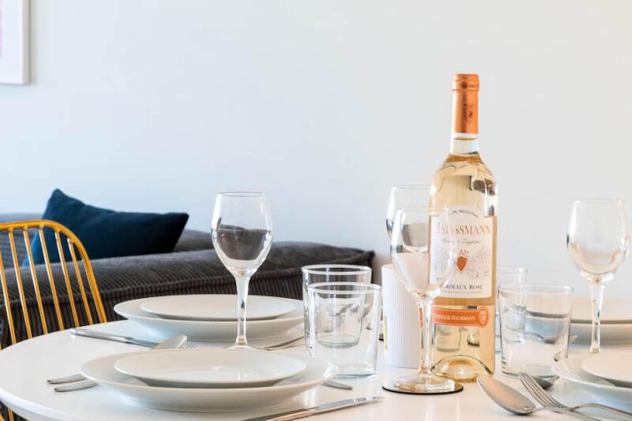 I det prestigefyldte Montrose-distrikt i Cannes tilbyder denne elegante lejlighed på 95 m² et roligt tilflugtssted midt i den franske rivieras glamour. Badet i naturligt lys kombinerer boligen moderne komfort med tidløs elegance, hvilket gør den til det perfekte valg til en afslappende ferie. Uanset om du nyder den fredelige atmosfære i haven eller tager en forfriskende dukkert i den fælles swimmingpool, føles hvert øjeblik her som en luksuriøs flugt. Den vestvendte terrasse tilbyder et roligt sted at slappe af med udsigt over det frodige grønt og glimt af poolen nedenfor. \n\nTræd indenfor for at opdage et gennemtænkt designet rum, der opfylder alle dine behov. Lejligheden har en rummelig opholds- og spisestue med en stor sofa og smart-tv, ideel til hyggelige aftener efter at have udforsket Cannes. Det fuldt udstyrede køkken kan prale af høj kvalitet, herunder en stenbordplade, perfekt til at tilberede måltider med friske lokale ingredienser. Soveværelset har en queensize-seng, et eget brusebad og et walk-in closet, mens det andet soveværelse har to enkeltsenge, hvilket gør det ideelt for familier eller venner, der rejser sammen. Yderligere faciliteter inkluderer reversibel aircondition, WiFi og et andet brusebad med dobbelt håndvask for ekstra bekvemmelighed.\n\nDenne lejlighed ligger kun få minutter fra Cannes' pulserende centrum og de ikoniske strande ved La Croisette og giver dig mulighed for at opleve det bedste af Rivieraen, mens du nyder et fredeligt boligområde. Gå en tur til Rue d'Antibes for at shoppe i butikker eller nyd provencalske smagsoplevelser på nærliggende bistroer. Udforsk den historiske charme i Le Suquet eller tag på en bådtur til Lérins-øerne fra den gamle havn. Tennisklubber, golfbaner og lokale markeder er alle inden for rækkevidde, hvilket sikrer et bredt udvalg af aktiviteter for enhver rejsende.\n\nMed sin blanding af luksus, komfort og førsteklasses beliggenhed lover denne Montrose-lejlighed et uforglemmeligt ophold i Cannes. Uanset om du er her for afslapning, eventyr eller forkælelse, er denne ejendom din port til Rivieraens fineste oplevelser.