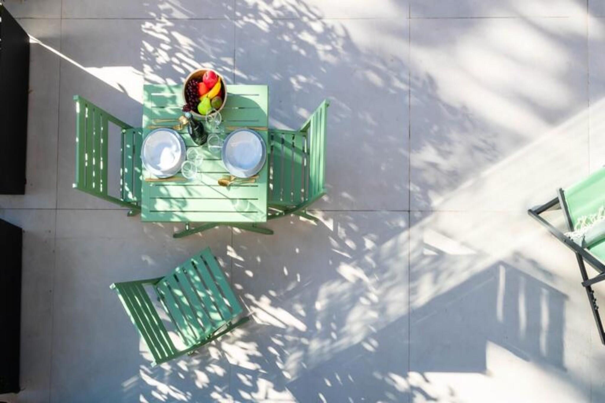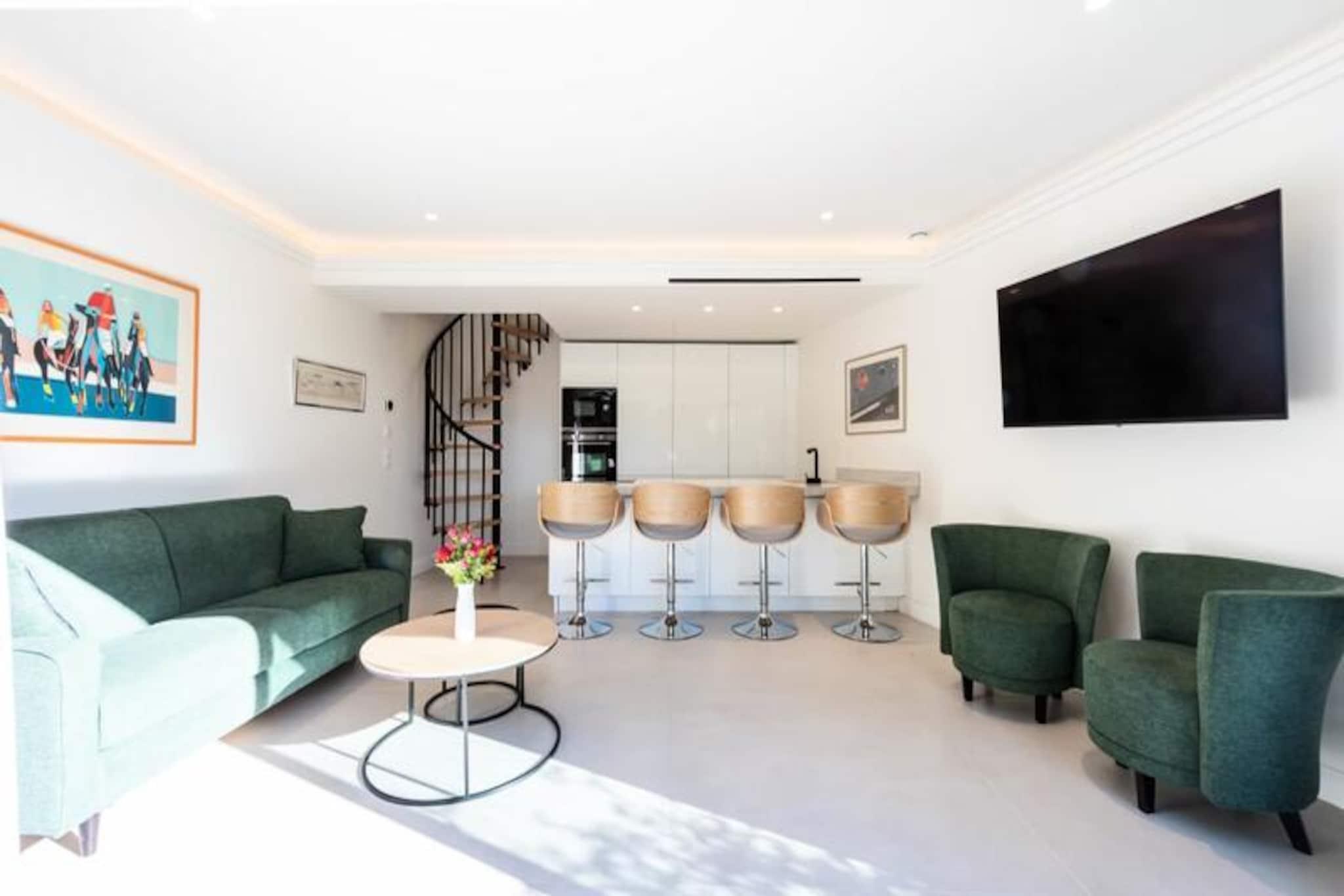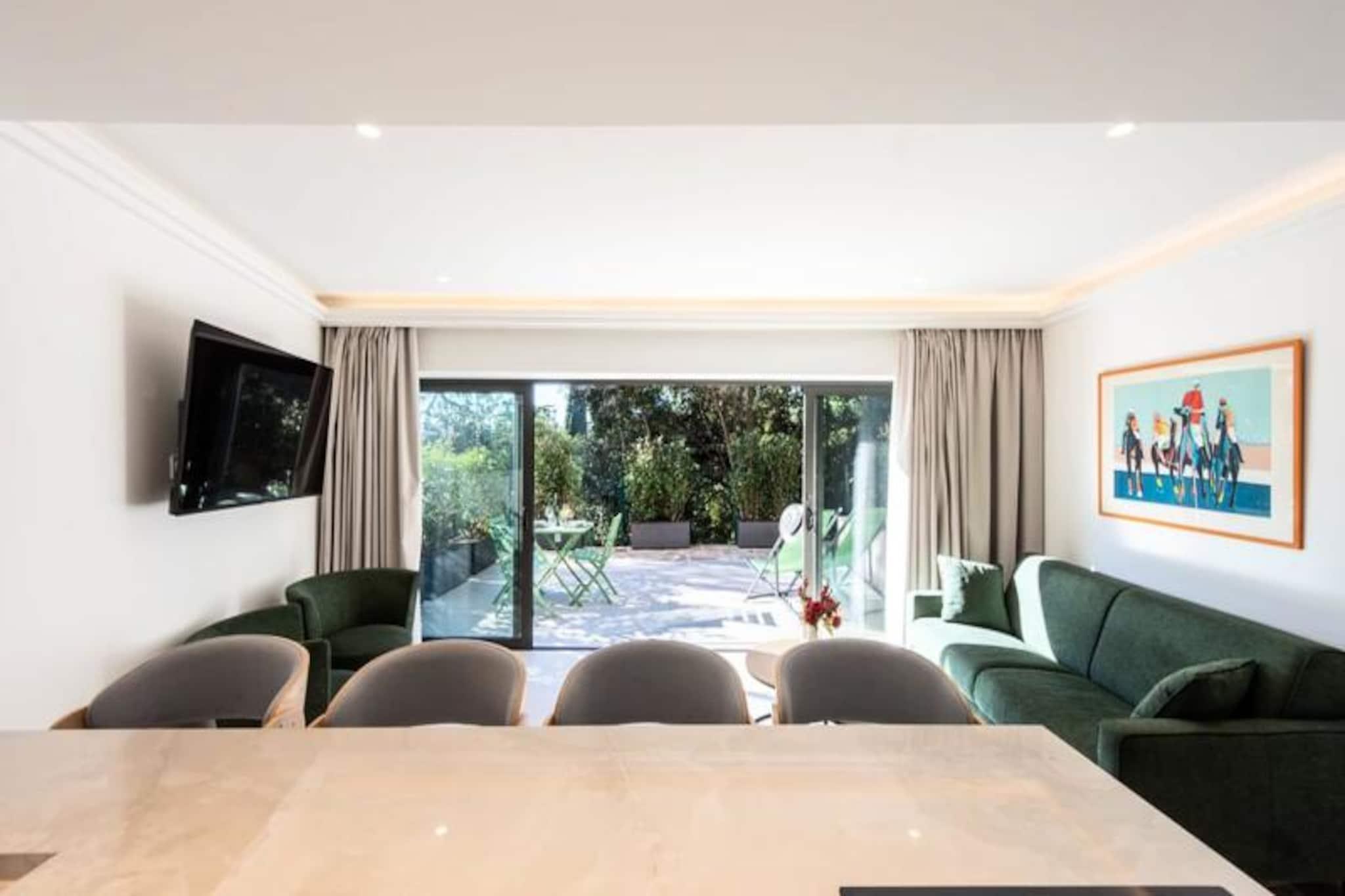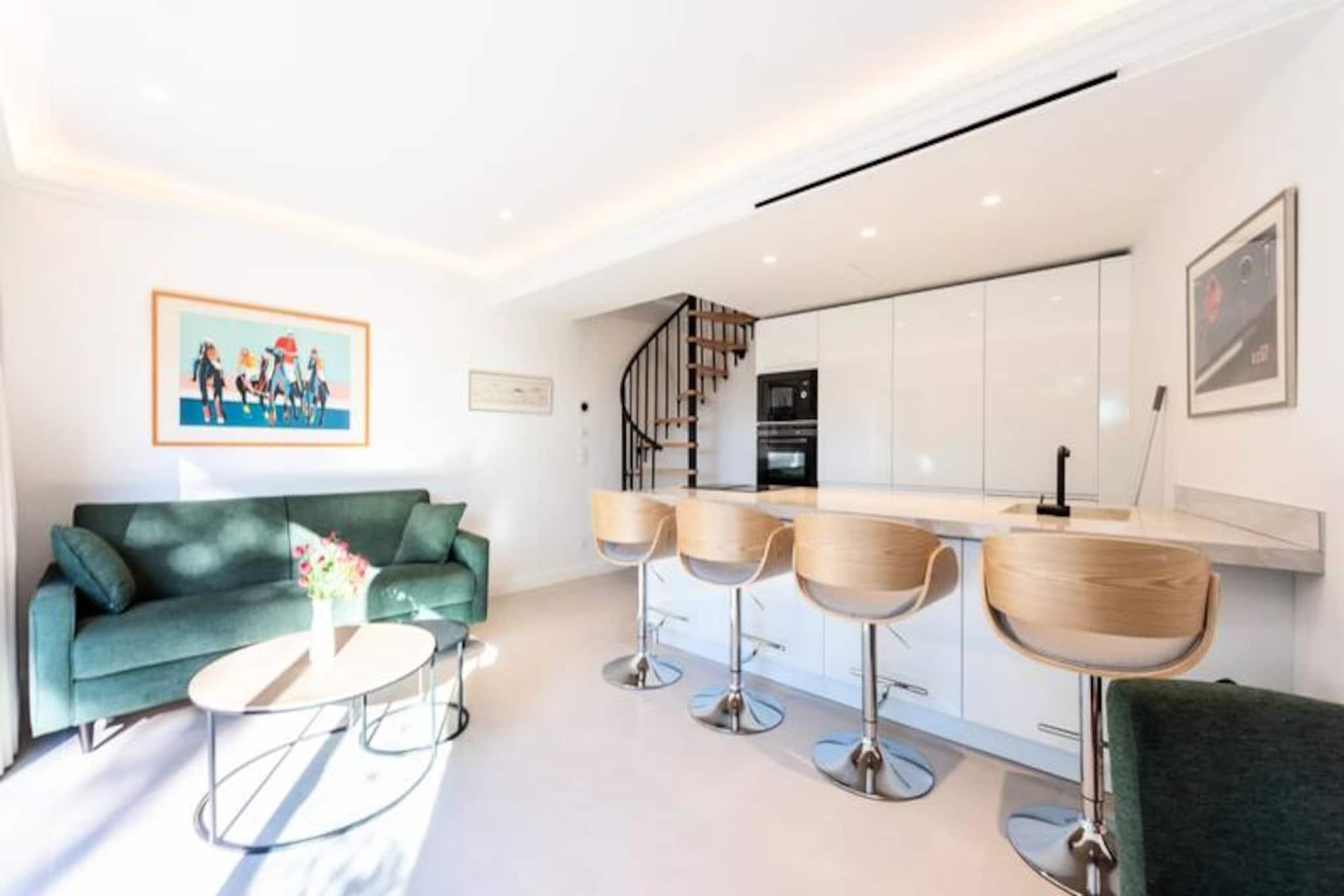 Midt i Cannes' pulserende charme tilbyder denne afsondrede duplexlejlighed et roligt tilflugtssted omgivet af frodigt grønt. Uden naboer ovenover inviterer denne bolig i haveplan dig til at slappe af i ro og ro, hvor moderne elegance blandes med naturlige materialer. Forestil dig selv sole dig i Riviera-solen på din private terrasse og nyde freden efter en dag med at udforske Cannes' ikoniske kystlinje og glamourøse gader.\n\nTræd indenfor for at opdage et lyst og luftigt opholdsrum, omhyggeligt designet til komfort og stil. Stuen har en enkelt sovesofa, Smart TV og spiseplads, mens det åbne køkken er fuldt udstyret med kogeplader, ovn, køleskab og opvaskemaskine - perfekt til at tilberede måltider ligesom derhjemme. Ovenpå har soveværelset en queensize-seng, Smart TV, skrivebordsområde og garderobe, suppleret af et elegant brusebad og separat toilet. Reversibel aircondition sikrer komfort året rundt, mens møbler af høj kvalitet forbedrer den overordnede atmosfære.\n\nBeliggende kun få minutter fra Cannes' mest ikoniske attraktioner, er denne lejlighed ideelt placeret til at udforske den franske riviera. La Croisette-stranden ligger en afslappet 20-minutters gåtur væk, mens Palais des Festivals et des Congrès kun ligger 10 minutters kørsel derfra. Forkæl dig selv med luksusshopping og gourmetmad langs Croisetten, eller tag på en naturferie til Lérins-øerne, kun 12 minutter med færge.\n\nUanset om du er her for Cannes' glamour eller Rivieraens naturlige skønhed, tilbyder denne lejlighed den perfekte blanding af bekvemmelighed, komfort og charme. Lad denne fredelige oase være dit hjem væk fra hjemmet, hvor uforglemmelige minder venter.