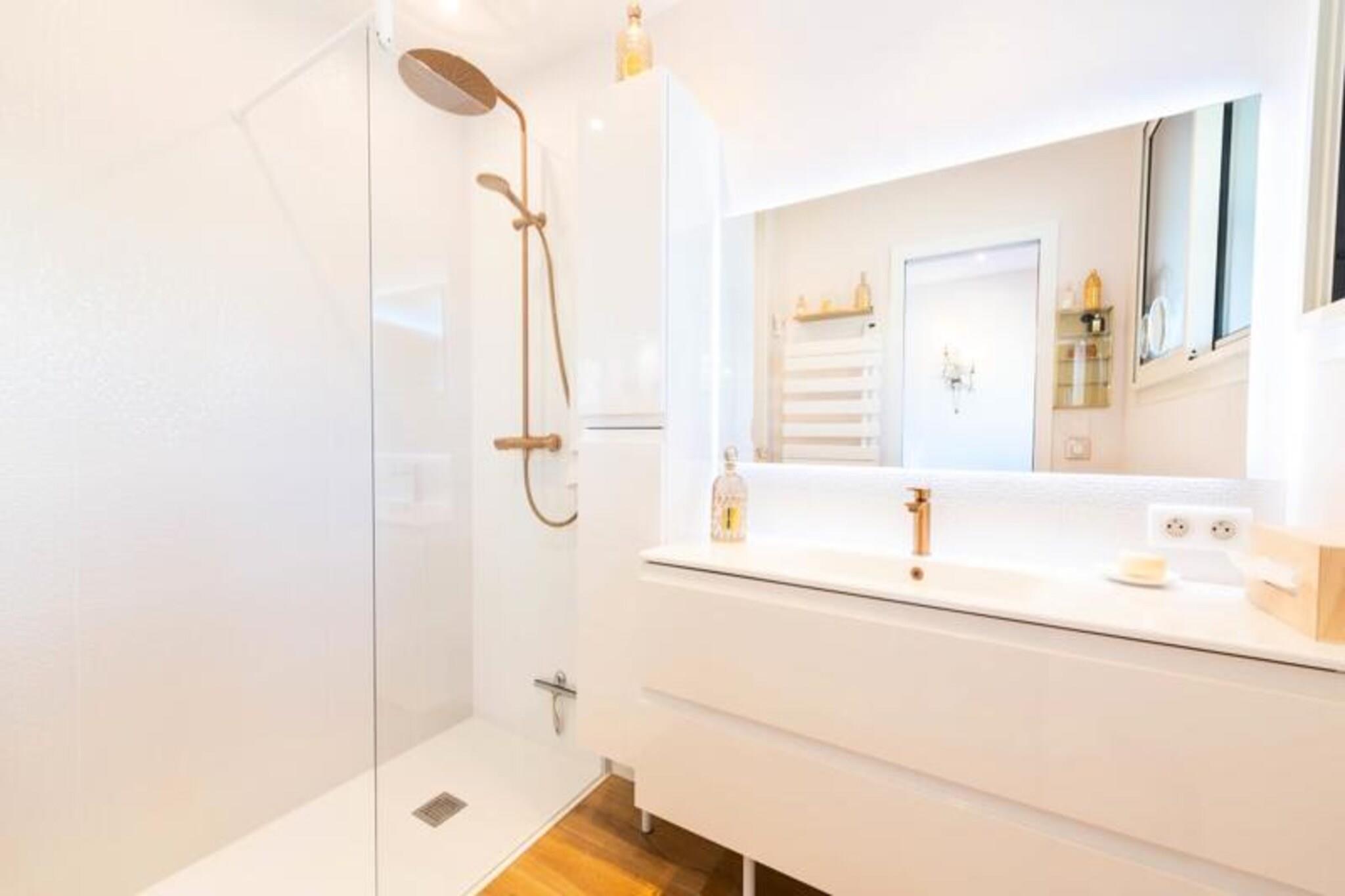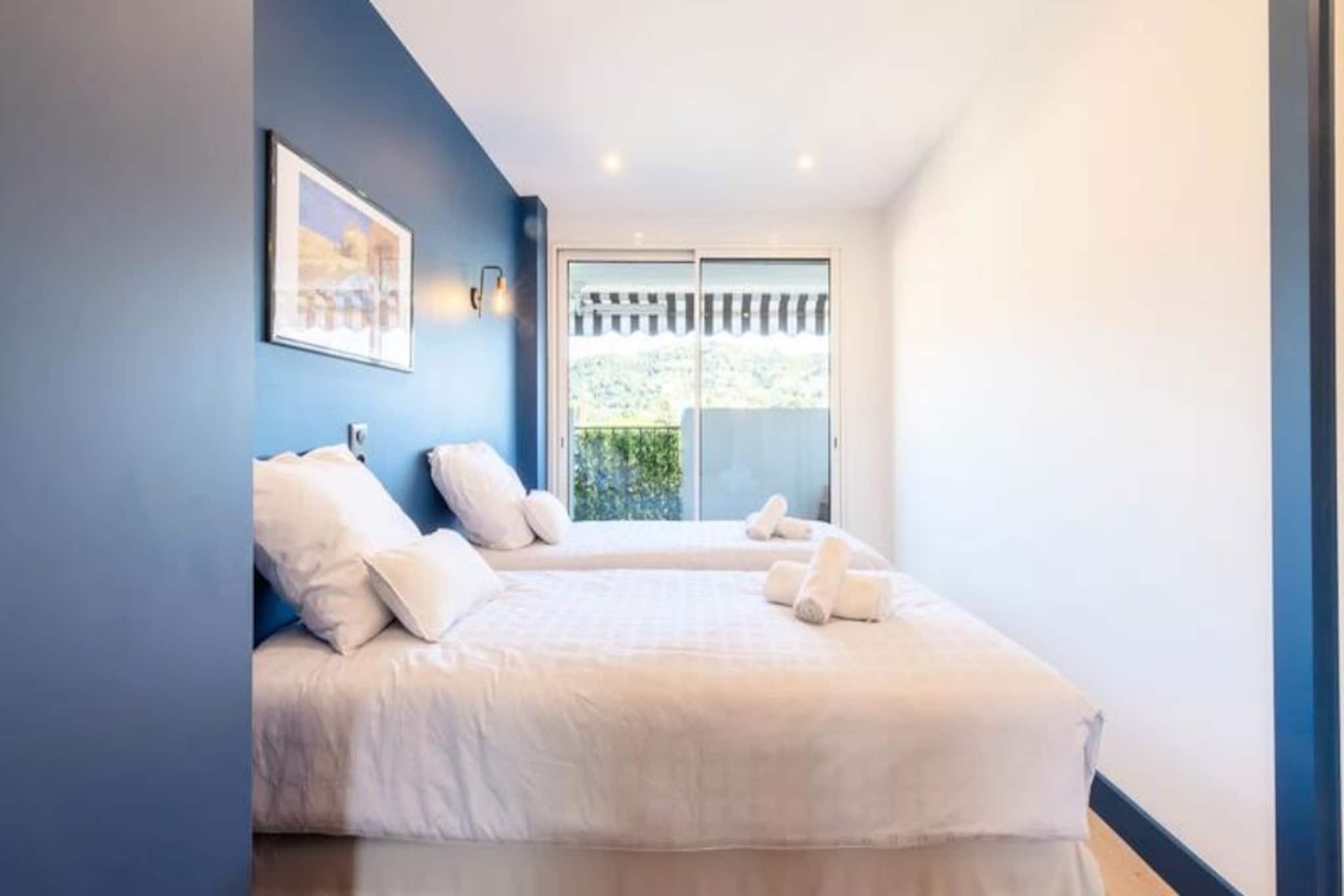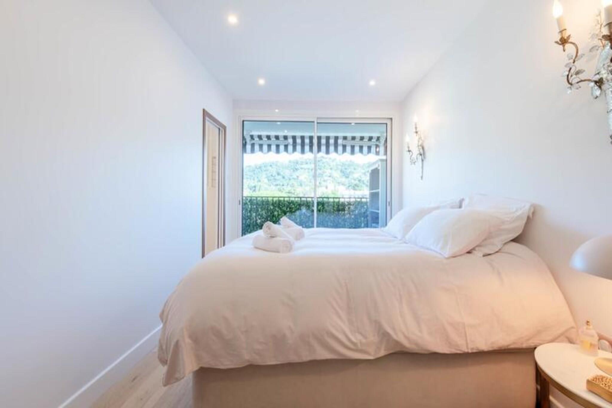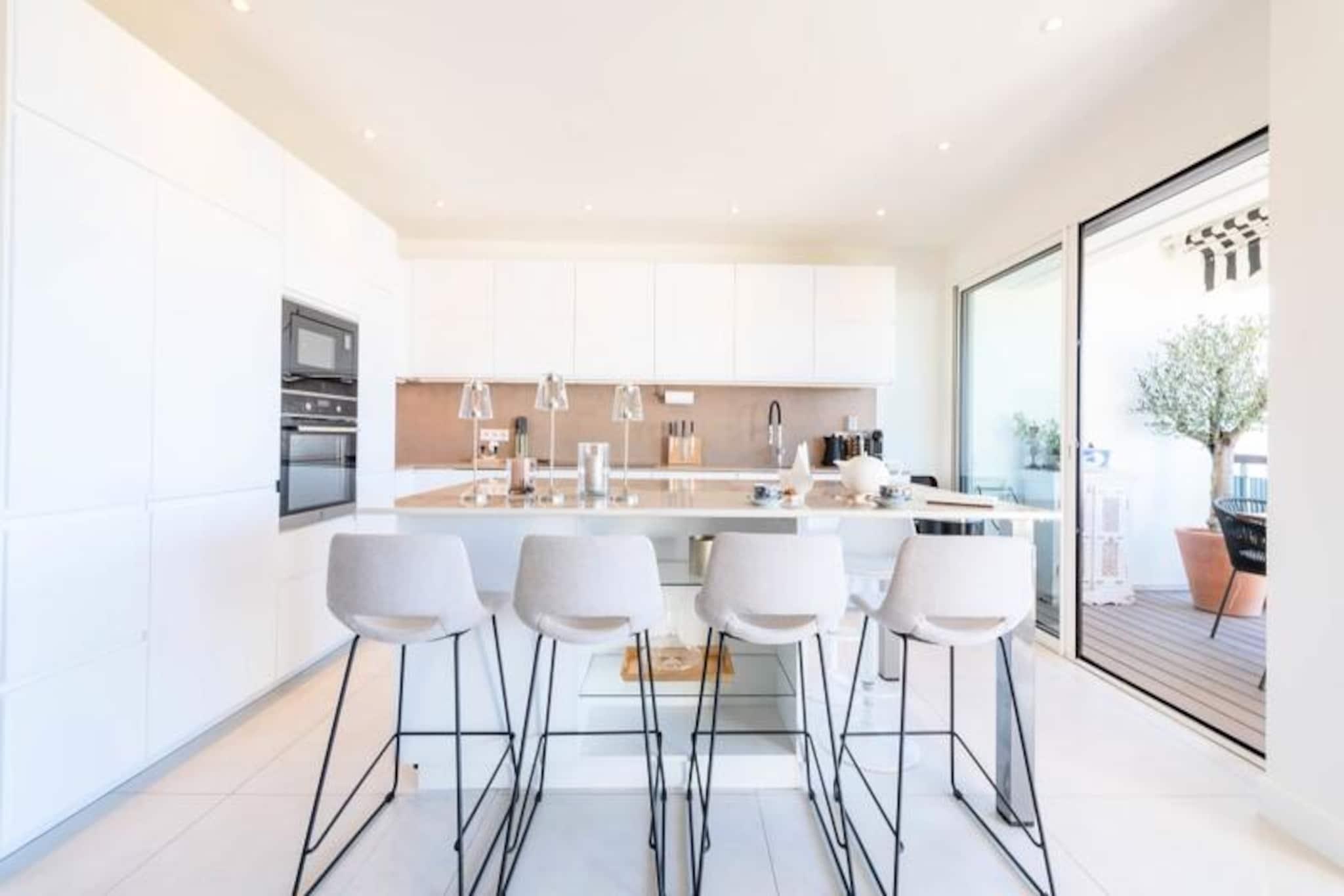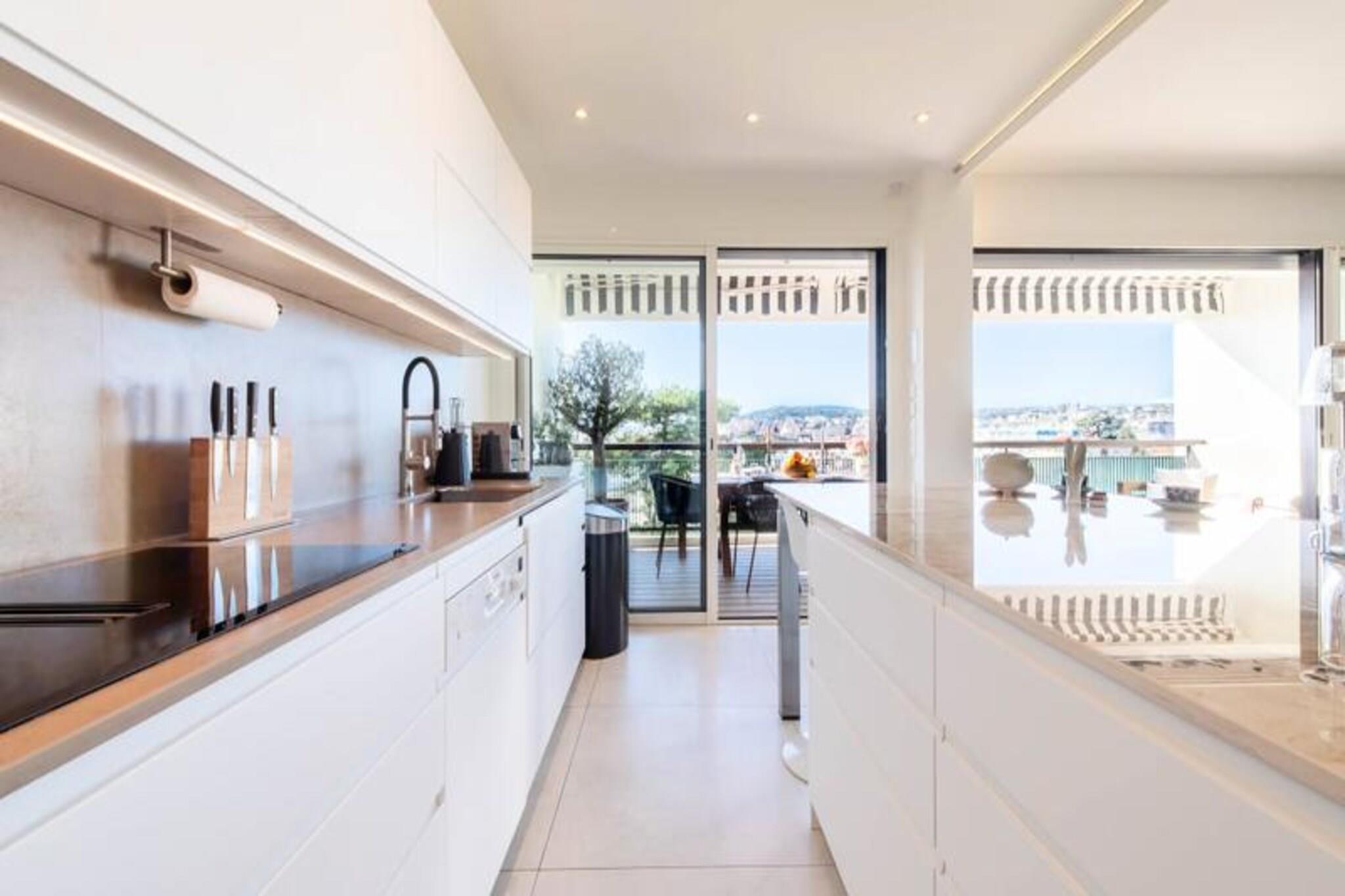 Højt over Cannes' glitrende kystlinje tilbyder denne elegante lejlighed på 95 m² i den prestigefyldte Gallia-residens et raffineret tilflugtssted for både feriegæster og forretningsrejsende. Forestil dig at træde ud på den store terrasse, hvor den betagende havudsigt strækker sig uendeligt og inviterer dig til at nyde middelhavscharmen. Med sit moderne design og rolige atmosfære lover denne ejendom et uforglemmeligt ophold i en af ??Frankrigs mest glamourøse destinationer. \n\nIndvendigt er lejligheden et mesterværk af komfort og stil. Den rummelige stue, badet i naturligt lys, har bløde sofaer, et smart-tv og en indbydende spiseplads, alt sammen problemfrit forbundet med terrassen. Det åbne køkken er fuldt udstyret med førsteklasses apparater, hvilket gør det perfekt til at tilberede måltider, mens du nyder den hyggelige atmosfære. Soveværelserne omfatter et luksuriøst soveværelse med en queensize-seng, eget badeværelse med bruser og privat terrasseadgang, samt et andet soveværelse med to enkeltsenge og eget badeværelse. Reversibel aircondition og Wi-Fi sikrer komfort og bekvemmelighed året rundt. \n\nDenne lejlighed ligger i et roligt boligkvarter, kun en kort gåtur fra Cannes' ikoniske attraktioner. Gå en tur til strandene og den berømte Croisette-promenade, udforsk den pulserende Rue d'Antibes for at shoppe, eller fordyb dig i Le Suquets historiske charme. Den gamle havn og Forville-markedet er inden for rækkevidde og tilbyder en smag af autentisk provencalsk liv. For et unikt eventyr kan du tage en bådtur til Lérinsøerne og oplev deres fredfyldte skønhed. \n\nUanset om du er her for afslapning eller forretning, kombinerer denne lejlighed luksus, beliggenhed og bekvemmelighed, hvilket gør den til det perfekte valg til din Cannes-ferie.