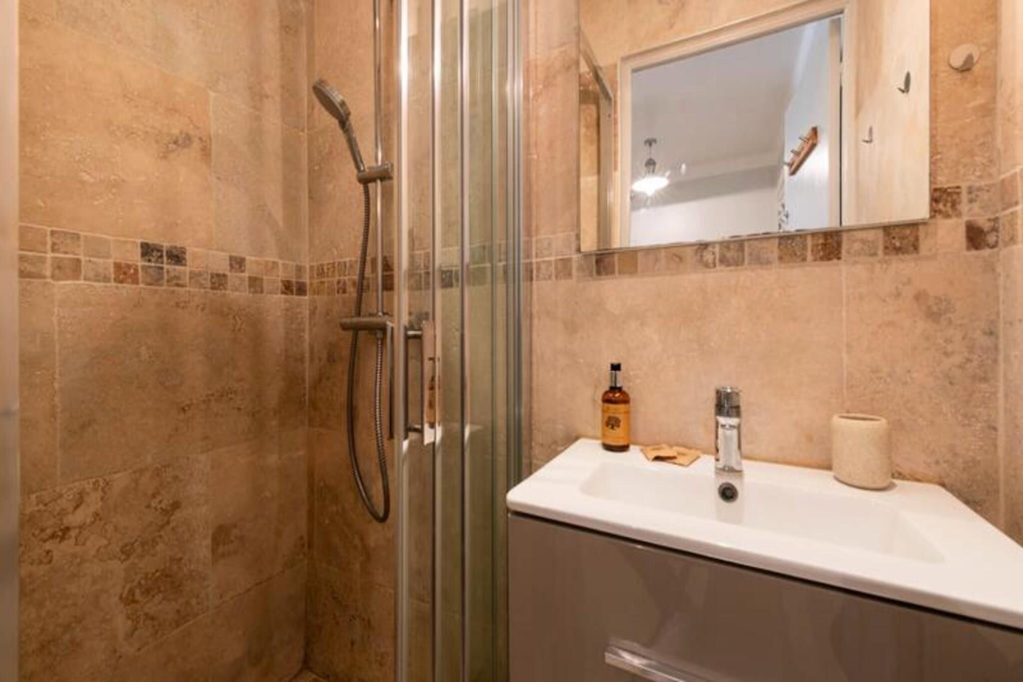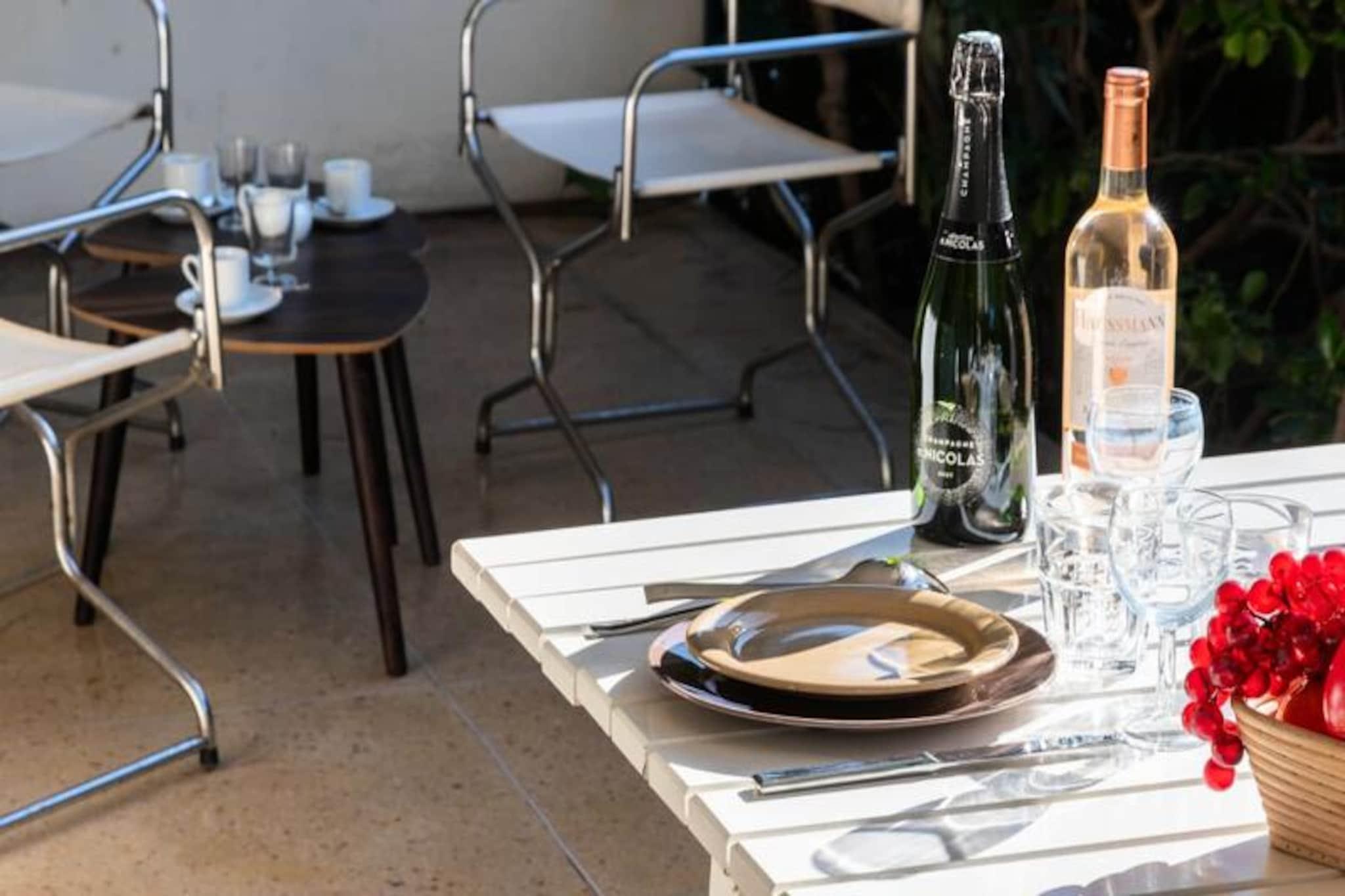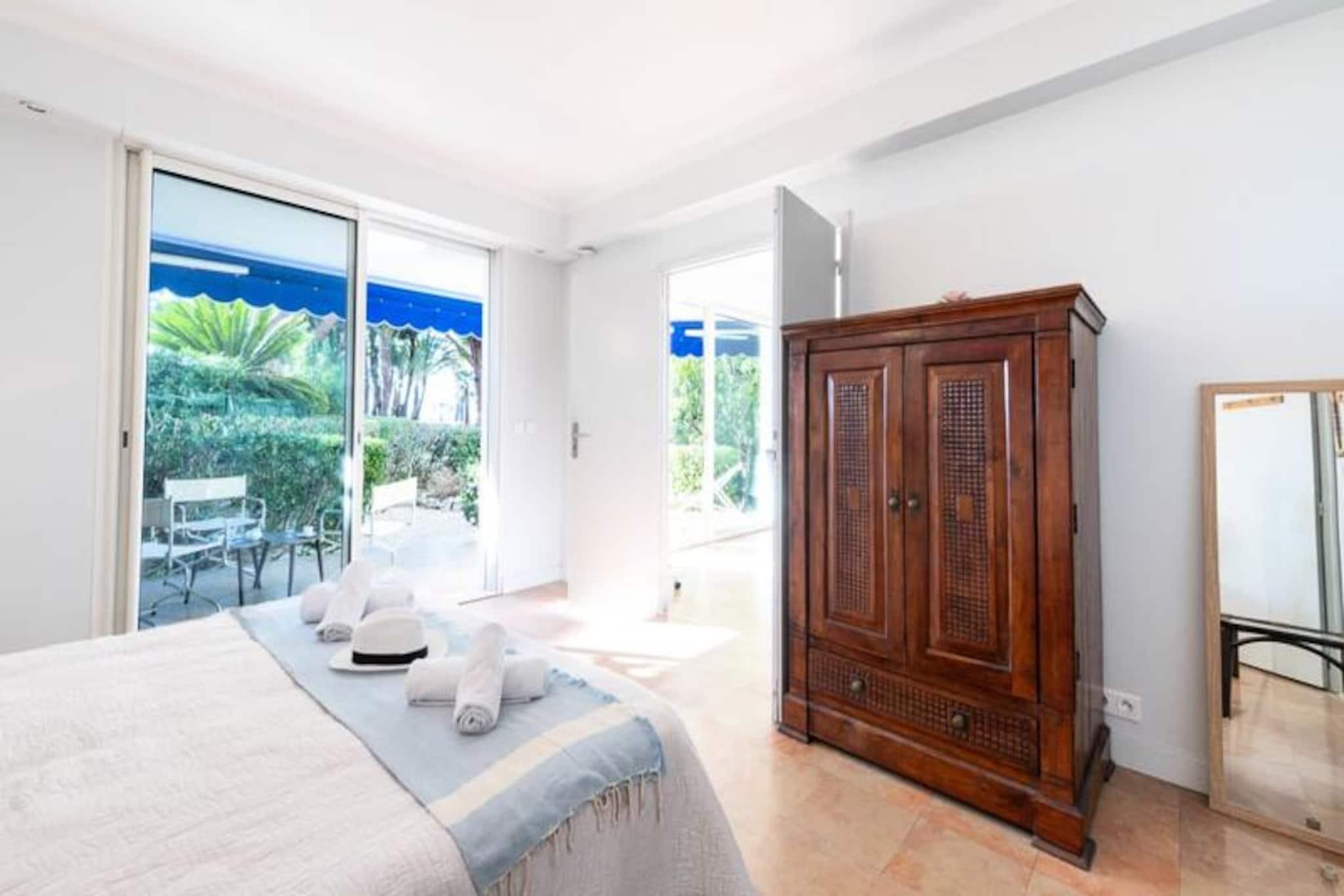 Træd ind i en verden af ??elegance og kystcharme med denne lejlighed i stueetagen i Cannes' prestigefyldte Palm Beach-distrikt. Denne ejendom er perfekt placeret på den ikoniske Croisette og tilbyder direkte adgang til strandene og havnen, så du kan fordybe dig i den franske rivieras pulserende charme. Den private anlagte have, en rolig oase midt i de livlige omgivelser, inviterer dig til at slappe af med stil, uanset om du soler dig eller nyder en middag under middelhavshimmelen. \n\nIndenfor er lejligheden omhyggeligt designet til at kombinere komfort og sofistikering. Den airconditionerede stue, udsmykket med store karnappvinduer, åbner ud til den frodige have og skaber en problemfri inde-udendørs oplevelse. Det fuldt udstyrede køkken gør madlavning til en fornøjelse, mens master-suiten med en kingsize-seng og eget badeværelse lover afslappende nætter. Et andet soveværelse og yderligere faciliteter, såsom Wi-Fi og reversibel aircondition, sikrer et afslappende ophold for alle. \n\nKun få skridt væk lokker Croisette-strandene med gyldent sand og mousserende vand. Udforsk den nærliggende gamle havn, eller slentre gennem de historiske gader i Le Suquet for at nyde panoramaudsigten over Cannes. Luksusbutikker, Palais des Festivals og det travle Forville-marked er alle inden for rækkevidde, mens vandsport og bådture giver uendelige muligheder for eventyr. \n\nUanset om du søger en romantisk ferie eller en familieferie, er denne lejlighed din port til Cannes' glamour og ro. Med sin førsteklasses beliggenhed, private have og moderne komfort er den den perfekte base for at skabe uforglemmelige minder på den franske riviera.