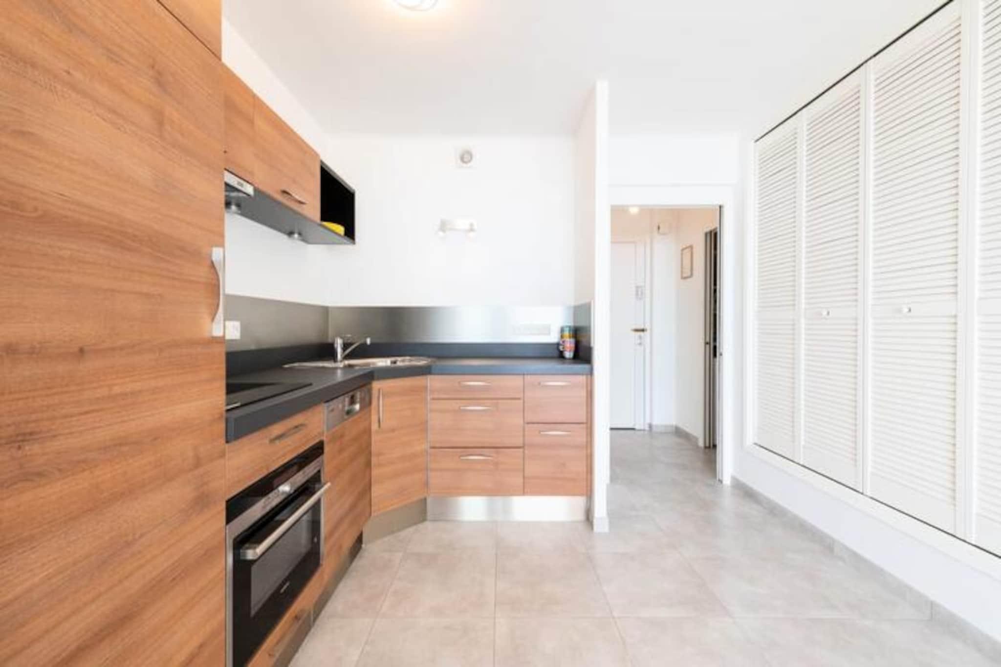 Vågn op til den beroligende lyd af bølger og Middelhavets glitrende skønhed i denne exceptionelle lejlighed ved stranden i Cannes. Med uforstyrret udsigt over Lérinsøerne og gyldne solnedgange, der maler horisonten, tilbyder denne ejendom en rolig tilflugtssted, hvor hvert øjeblik føles som en drøm. Uanset om du planlægger en romantisk ferie eller en familieferie, er atmosfæren her præget af ren afslapning og forkælelse. Beliggende kun få skridt fra sandstrandene og de pulserende restauranter, er det den perfekte base for at udforske charmen og luksusen ved den franske riviera. \n\nIndenfor byder lejligheden dig velkommen med en rummelig og solrig opholdsstue, der problemfrit forbinder sig med en terrasse med betagende havudsigt. Stuen er omhyggeligt møbleret med en stor sofa, smart-tv og et spisebord til seks personer, hvilket skaber et hyggeligt, men elegant sted at slappe af. Det åbne køkken, fuldt udstyret bortset fra en mikrobølgeovn, sikrer, at du kan tilberede måltider, mens du nyder det fantastiske kystlandskab. Sovepladserne omfatter et soveværelse med en queensize-seng, garderobe og vægmonteret tv, samt et andet soveværelse med køjesenge, ideelt til børn. Et moderne brusebadeværelse med toilet fuldender indretningen og tilbyder komfort og bekvemmelighed for alle gæster.\n\nTræd udenfor og oplev det bedste af Cannes lige ved hånden. Offentlige strande ligger lige under lejligheden, mens den private Palm Beach ligger en kort gåtur væk med fint sand og krystalklart vand. Gå en tur til Port Pierre Canto for at beundre luksusyachter eller udforsk det ikoniske Palm Beach-område med dets restauranter ved havet og yachtklub. La Croisette, med sin legendariske promenade omgivet af butikker og luksushoteller, ligger kun en kort gåtur væk. For en smag af lokal kultur kan du tage til Le Suquets historiske gader eller det travle Forville-marked. Eventyrlystne kan forkæle sig selv med vandsport som paddleboarding og jetski, mens naturelskere kan tage en færge til Lérins-øerne for en rolig flugt.\n\nDenne lejlighed er mere end bare et sted at bo - det er en port til uforglemmelige oplevelser i en af ??verdens mest glamourøse destinationer. Uanset om du nyder provencalske specialiteter eller nyder middelhavssolen, er hvert øjeblik her en fejring af livets fineste glæder.