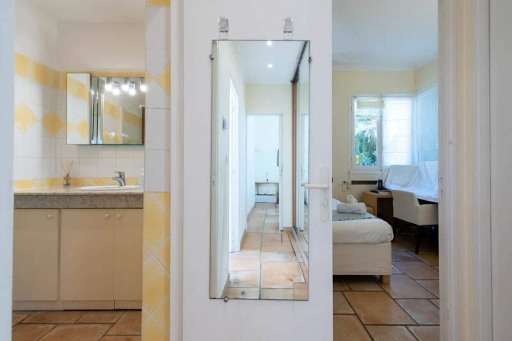Højt over Cannes' glamourøse gader tilbyder denne udsøgte lejlighed på øverste etage i en historisk villa et uovertruffent tilflugtssted for dem, der søger både ro og elegance. Forestil dig at vågne op til den blide middelhavsbrise med panoramaudsigt, der strækker sig fra det azurblå hav til de ikoniske Lérinsøer, alt sammen fra din private tagterrasse. Denne fredfyldte tilflugtssted ligger kun få minutter fra Cannes' pulserende hjerte, men føles alligevel som en verden væk i sine fredelige boligomgivelser. Træd indenfor og bliv mødt af en lys stue, hvor en sydvendt udsigt bader rummet i solskin. Den elegante lædersofa og spiseplads skaber en indbydende atmosfære, mens det fuldt udstyrede køkken åbner ud til en charmerende vinterhave, perfekt til morgenkaffe eller stille refleksion. Udenfor lokker den private have med sin intime swimmingpool, liggestole og skyggefulde spiseplads under svajende palmer. For den ultimative forkælelse kan du gå op til tagterrassen, hvor en udendørs lounge og dagseng inviterer dig til at nyde den betagende udsigt. Lejligheden har komfortabel plads til op til fire gæster med to smukt indrettede soveværelser. Master-suiten har et ensuite badeværelse, mens et andet dobbeltværelse og et ekstra brusebad sikrer bekvemmelighed og privatliv. Moderne bekvemmeligheder som højhastigheds-Wi-Fi, reversibel aircondition og en privat elevator forbedrer dit ophold. Denne ejendom har en perfekt beliggenhed tæt på Cannes' mest ikoniske attraktioner. Gå en tur langs Boulevard de la Croisette, udforsk de brostensbelagte gader i Le Suquet, eller slap af på sandstranden ved Gazagnaire-stranden. Uanset om du er her for filmfestivalen, luksusshopping eller blot for at slappe af, tilbyder denne lejlighed en raffineret base for at opleve det bedste af den franske riviera.